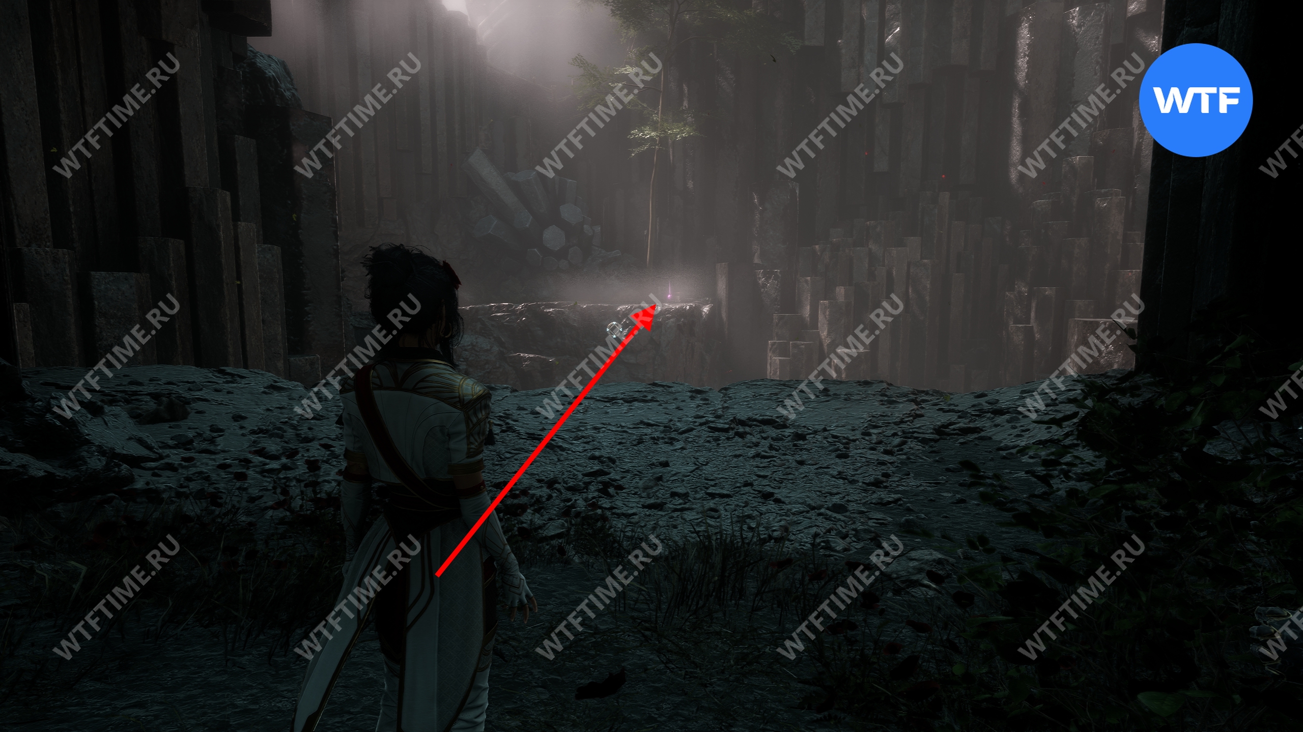 Выйдя из здания, пройдите немного вперед, а затем поднимитесь на уступ справа, чтобы подобрать цвет люмины.