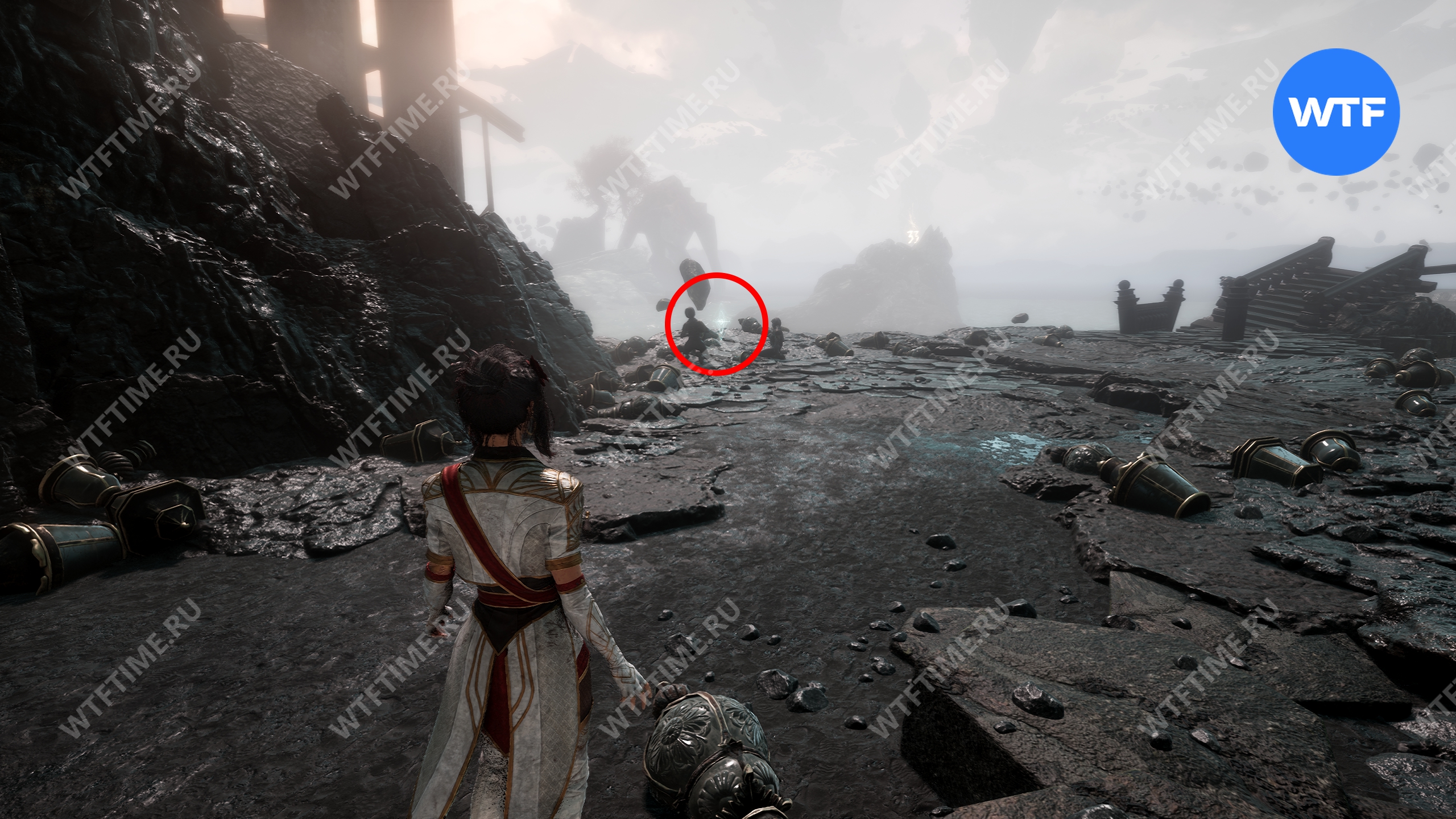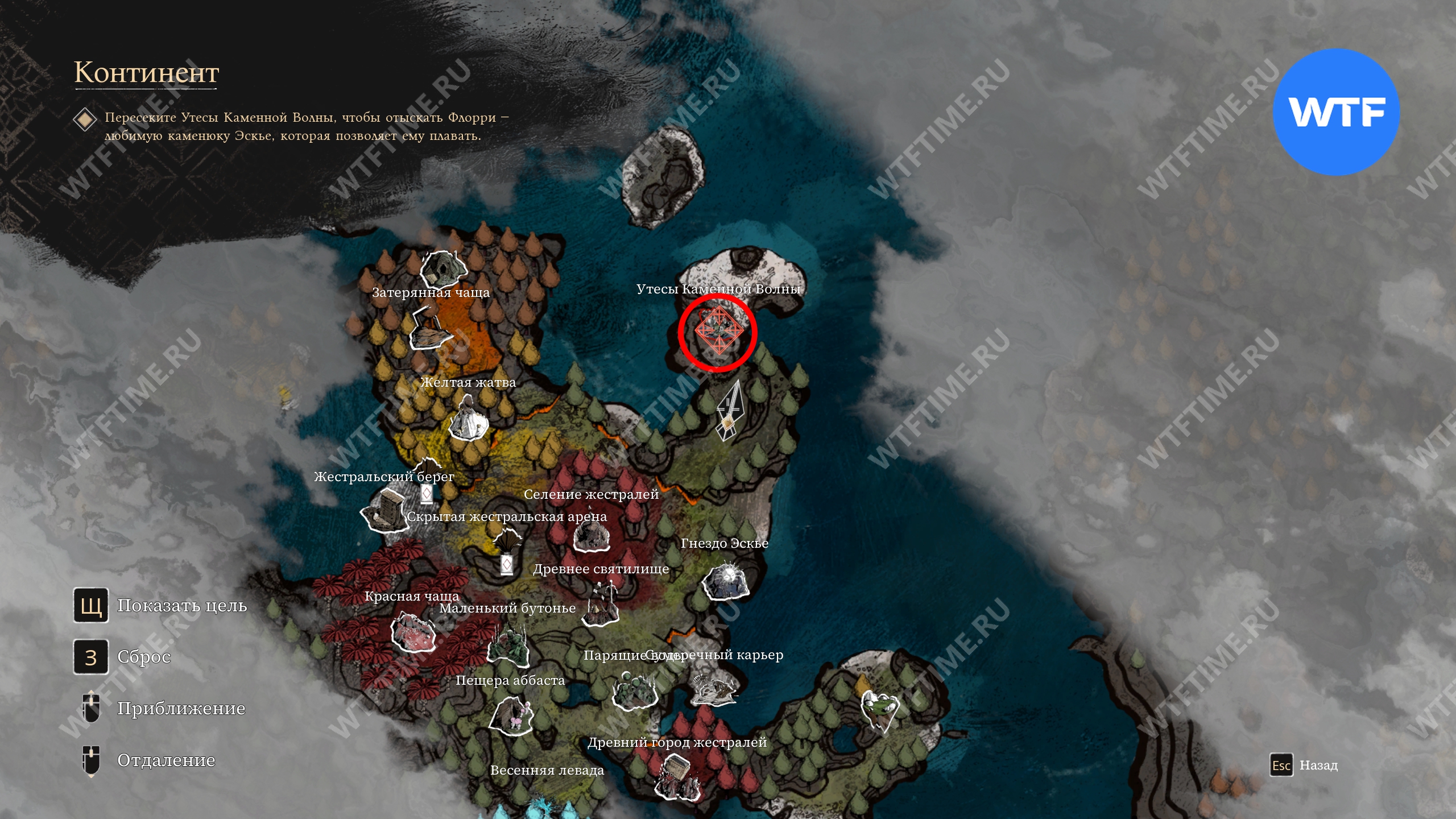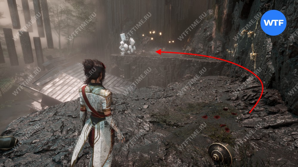 Прежде чем отправляться в другие локации, вернитесь обратно в Утесы Каменной Волны через портал, чтобы дособрать еще парочку предметов.