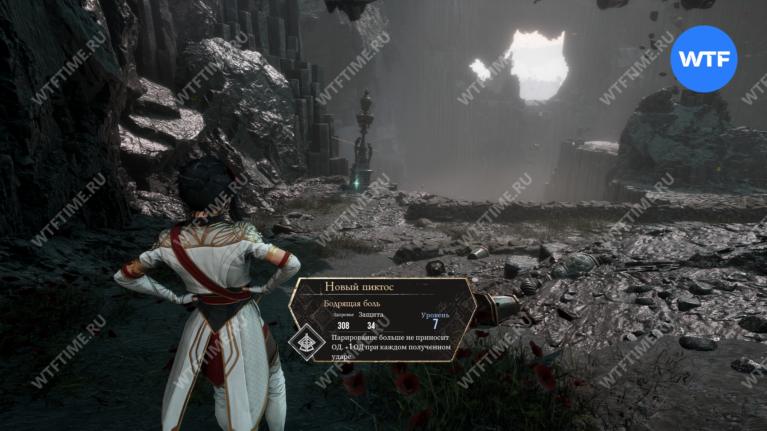 Это приведет вас к площадке, с которой можно пропрыгать по колоннам к новому пиктосу «Ломающие выстрелы», увеличивающему урон слома прицельных выстрелов на 50%.