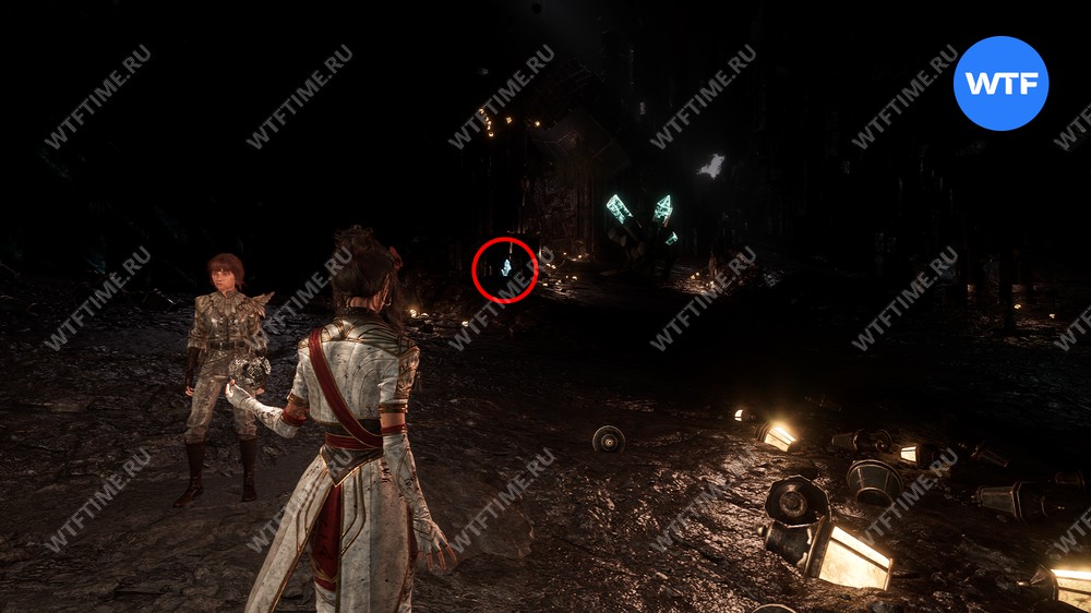 Слева от веревке, по которой вы спустились к Золотой шевальерке, можно подобрать ретушь, а слева от двери, которую она охраняла — 3160 хромы.