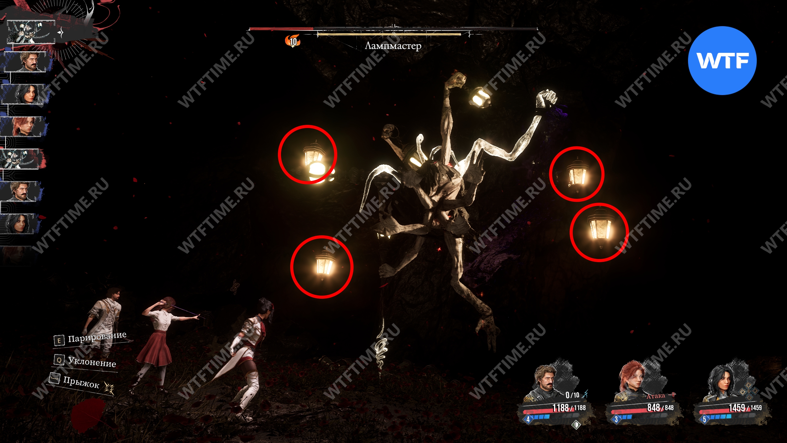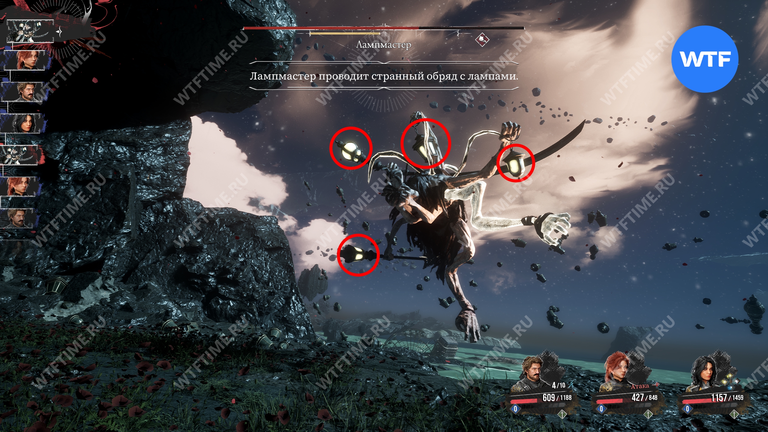 Во второй фазе босс начнет проводить странный обряд с лампами. В этот момент вы должны следить за тем, в каком порядке эти самые лампы загораются, а затем разбивать их Прицельным выстрелом в таком же порядке. Это лишит Лампмастера сильнейшей атаки с мечом.