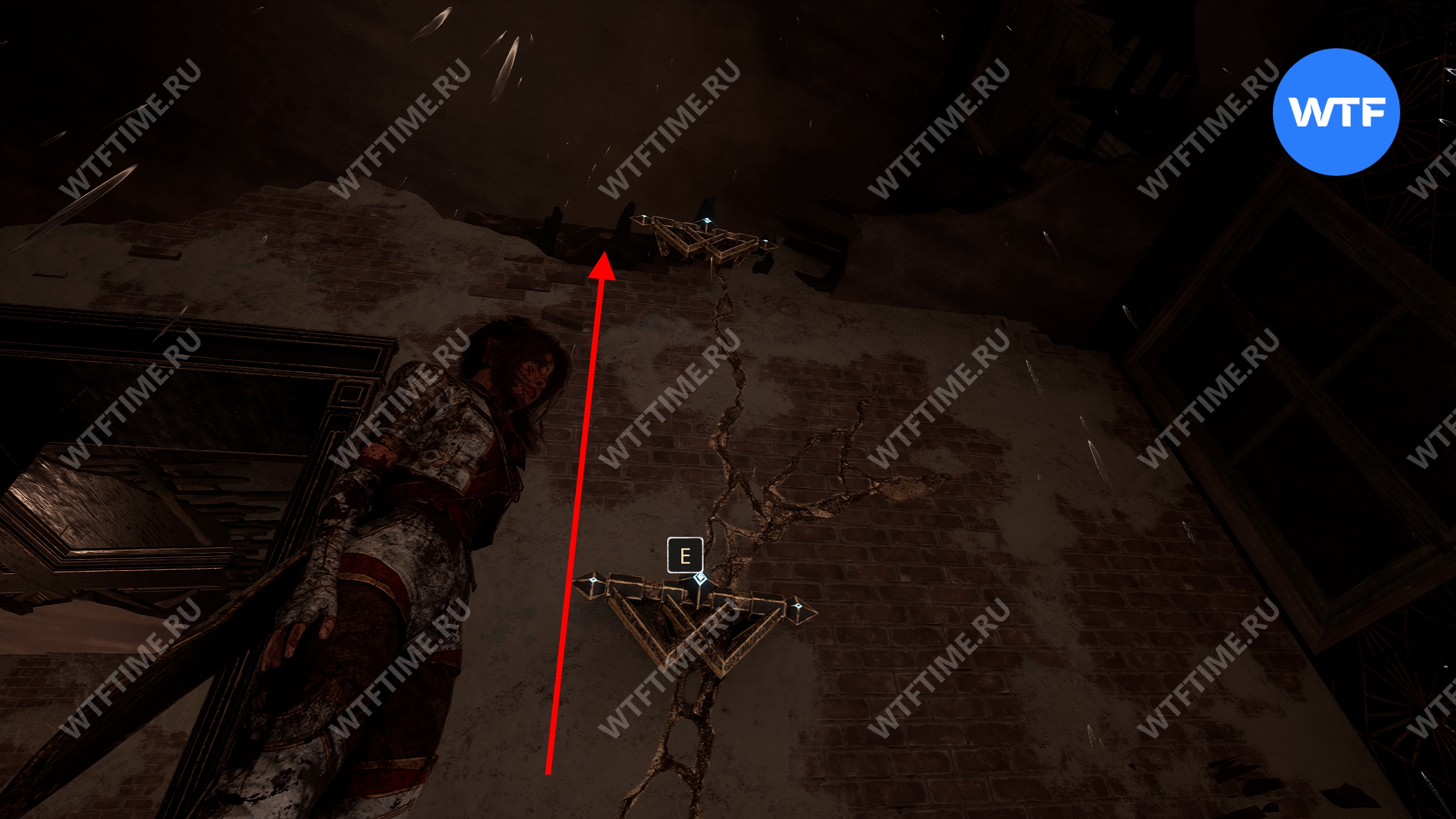 В конце этого пути вы увидите веревку, по которой можно подняться наверх. Сделайте это, а затем пройдите через дверной проем, вместо того чтобы спускаться по лестнице вниз.