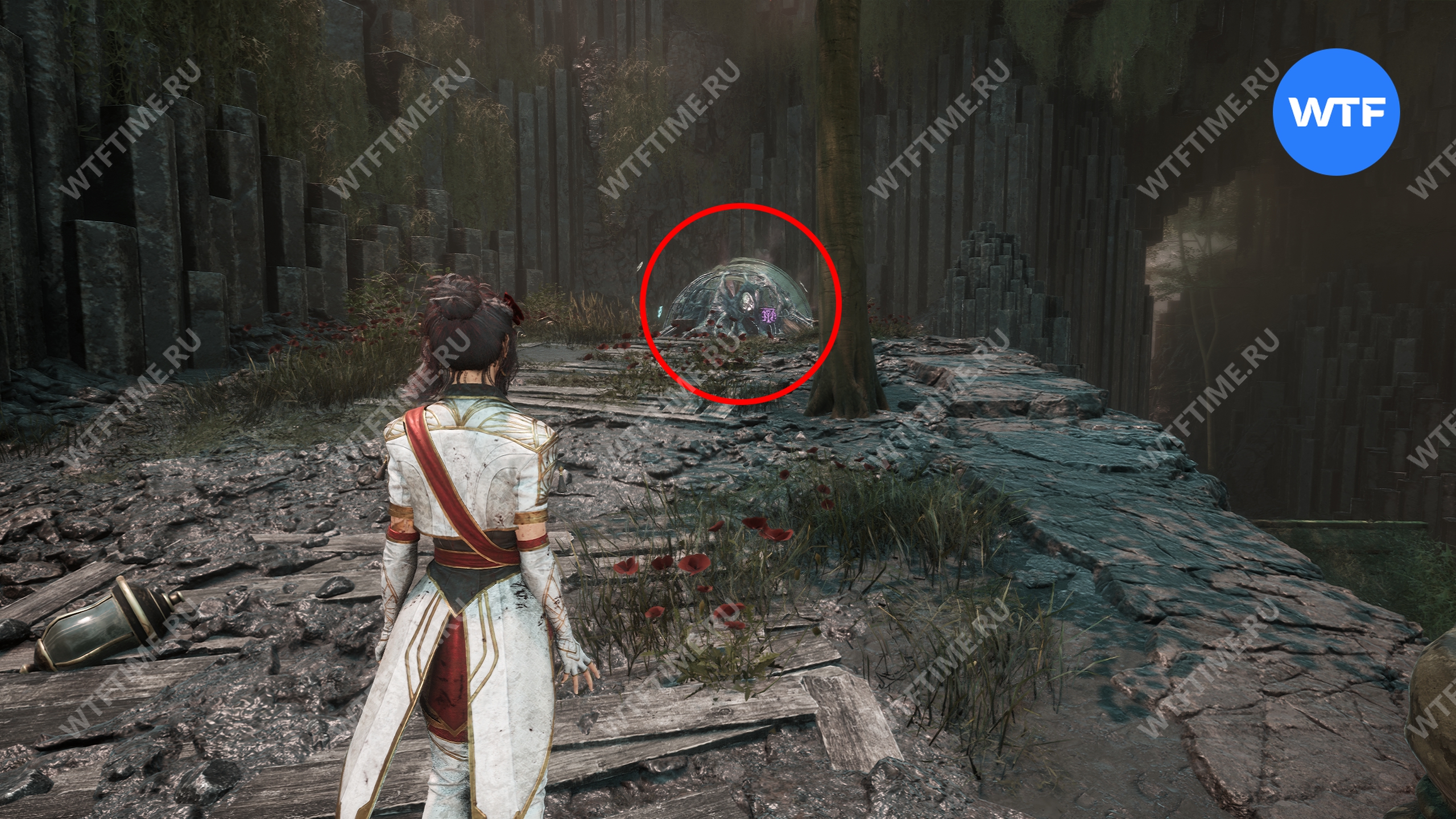 Затем поднимитесь по небольшому склону в левой части этой открытой области и найдете там еще одну красочницу.