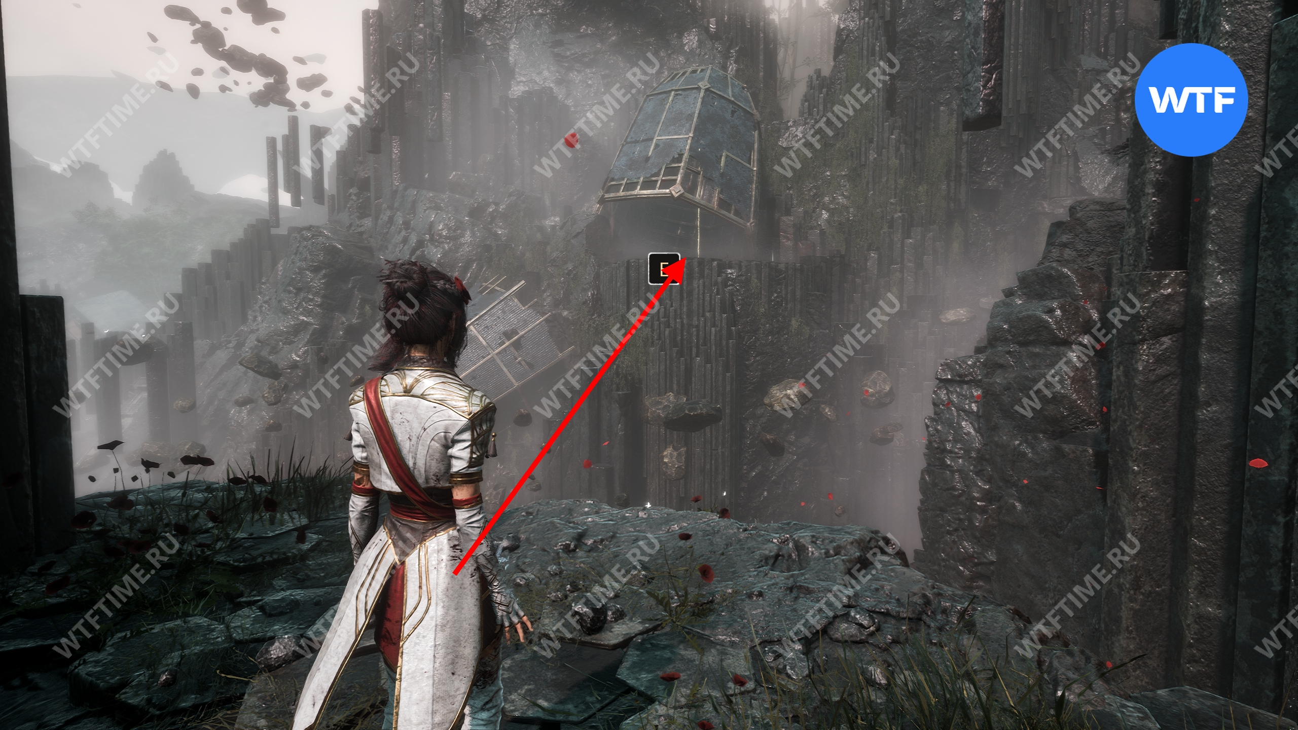 Поднимитесь по лестнице до самого верха и выйдите на открытую площадку, а затем спускайтесь вниз, используя опоры на стене справа от вас. Это приведет вас к осколку тоника возрождения.