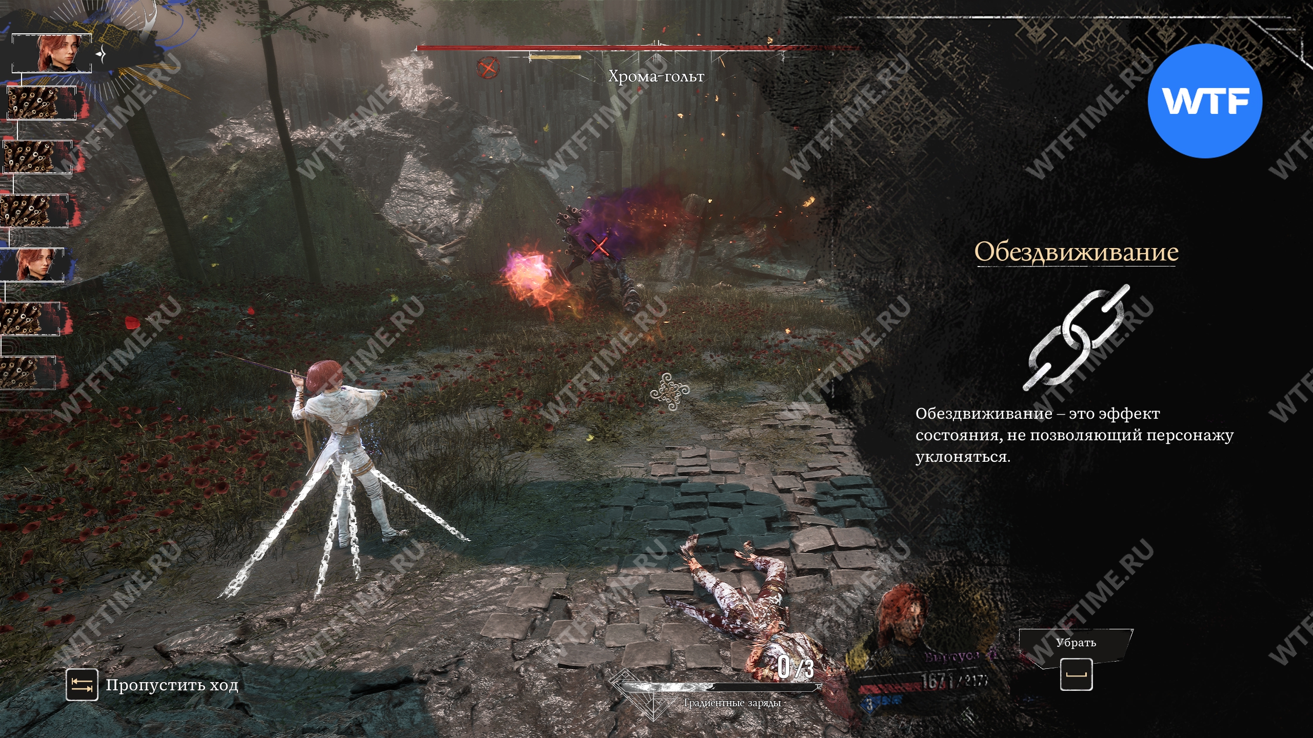 Хрома-гольт — это достаточно сложный босс, под атаки которого может быть сложно подстроиться. Помимо этого он будет накладывать эффект Обездвиживания, не позволяющий одному из ваших персонажей уклоняться (при этом можно парировать).