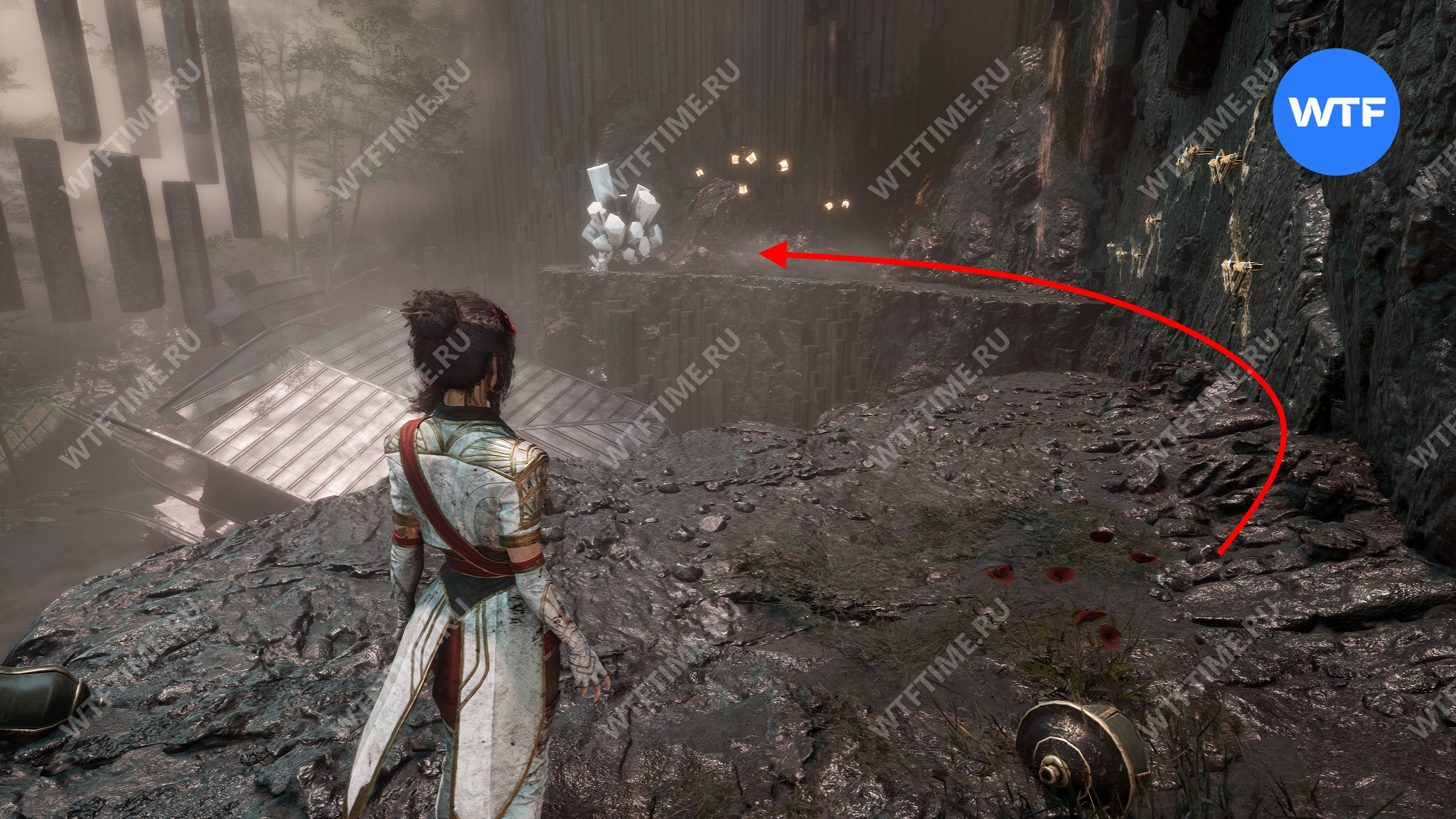 После выхода из тоннеля поверните направо у старой телеги, а затем переберитесь на другую сторону по опорам на стене. Это приведет вас прямиком к огромному белому Шестиграну, которого трудно не заметить.