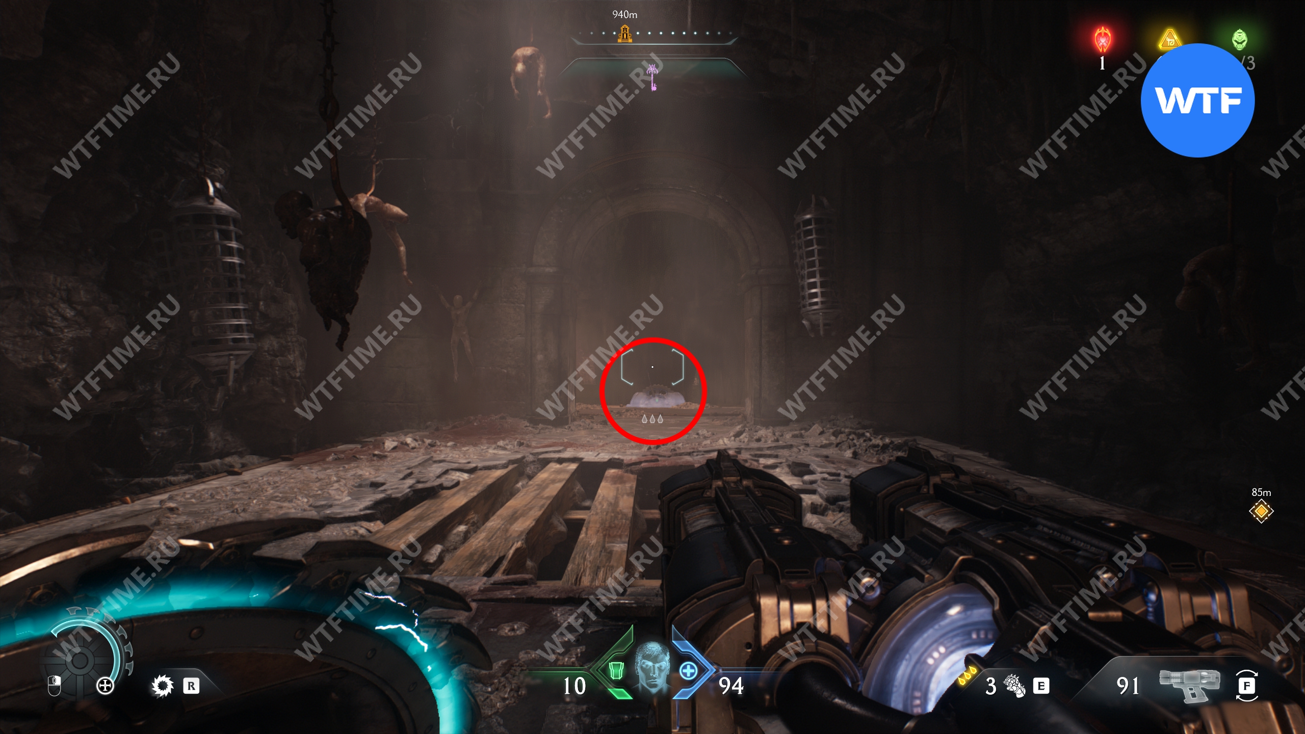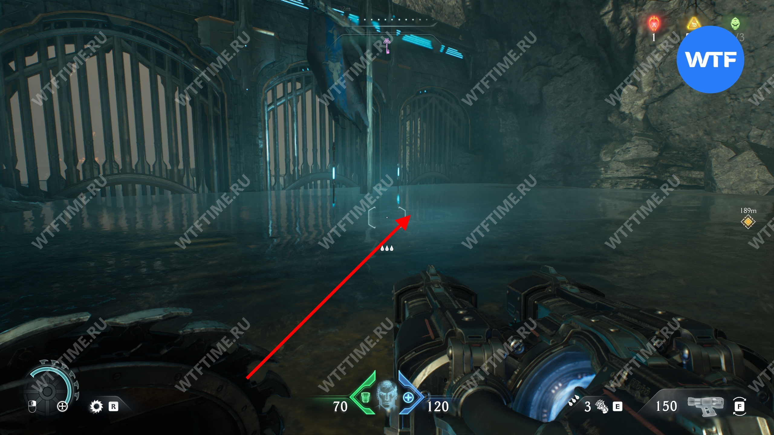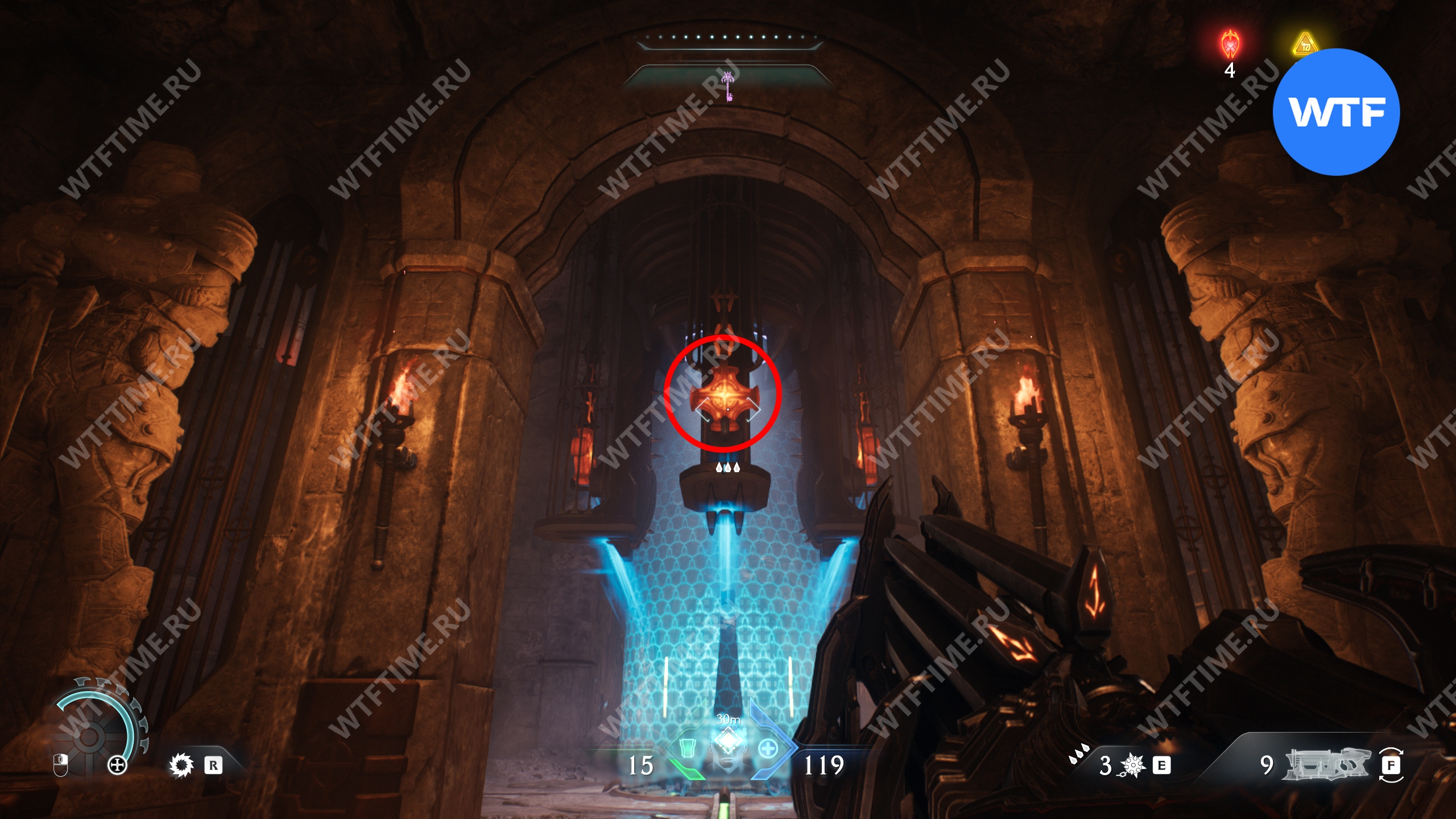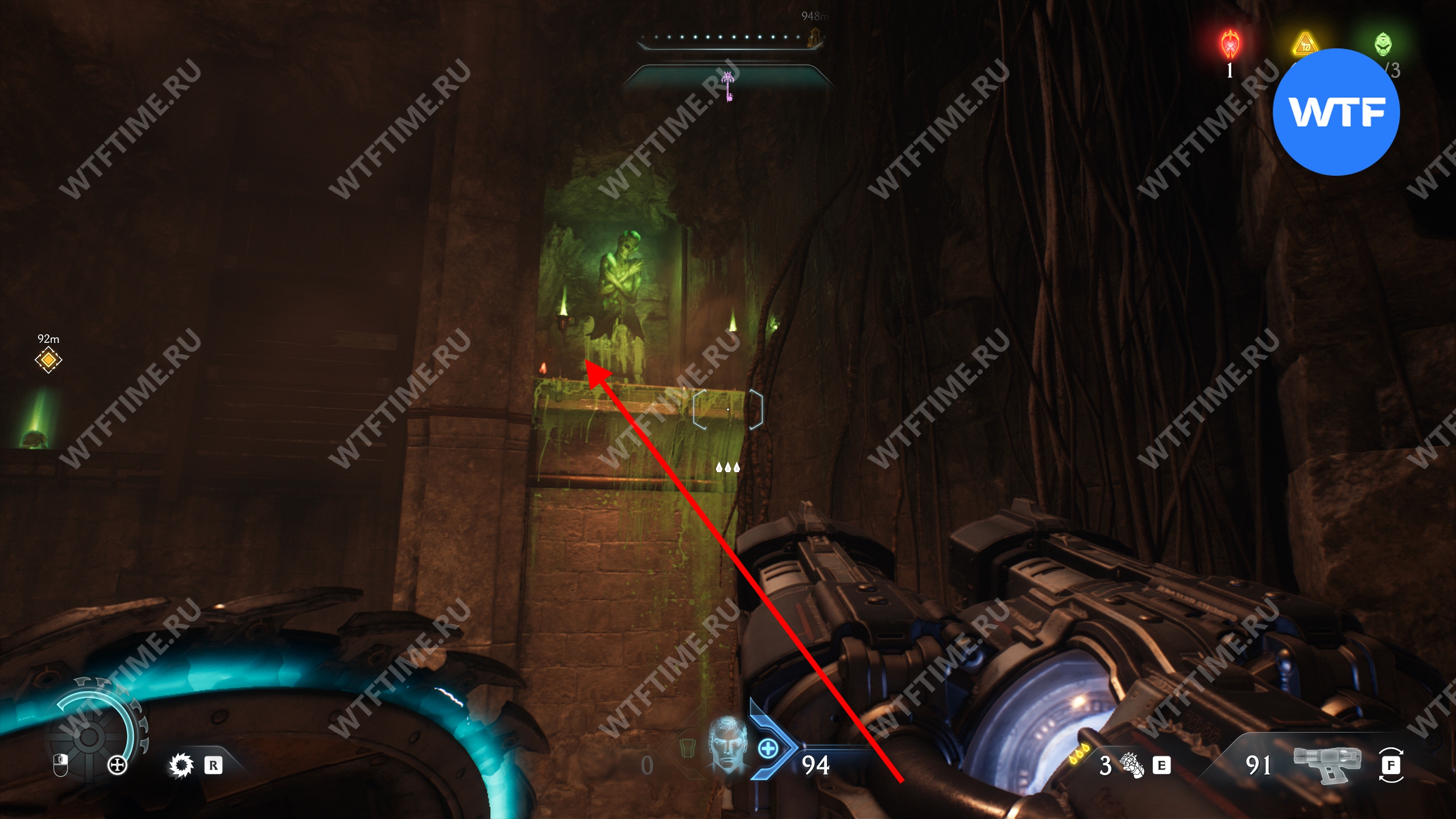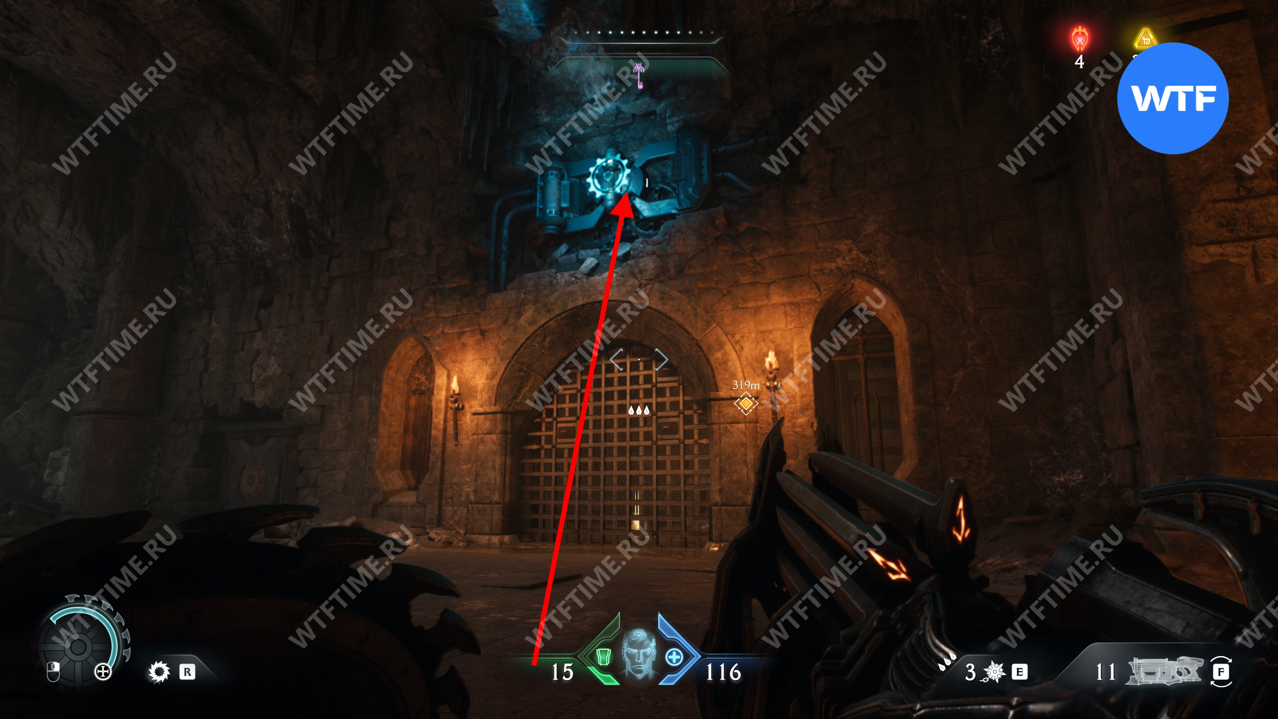 Чтобы покинуть эту локацию, идите в левую часть и ныряйте. Затем пройдите через тоннель с огненными пушками и подтяните себя к зеленому сгустку в конце. В итоге вы доберетесь до еще одного рычага, который откроет проход к кругу культистов. Убейте их и сможете закрыть портал и выйти.