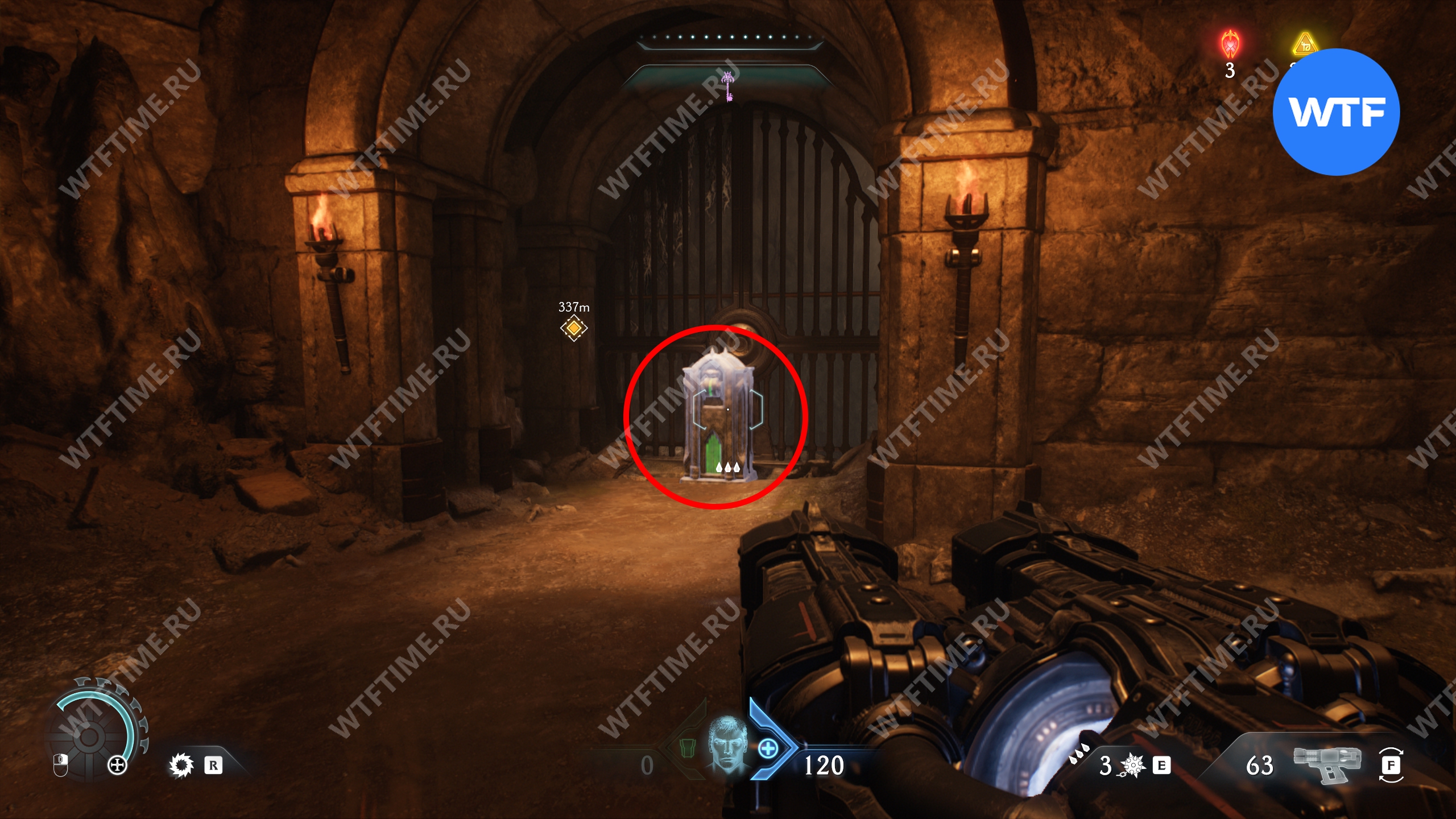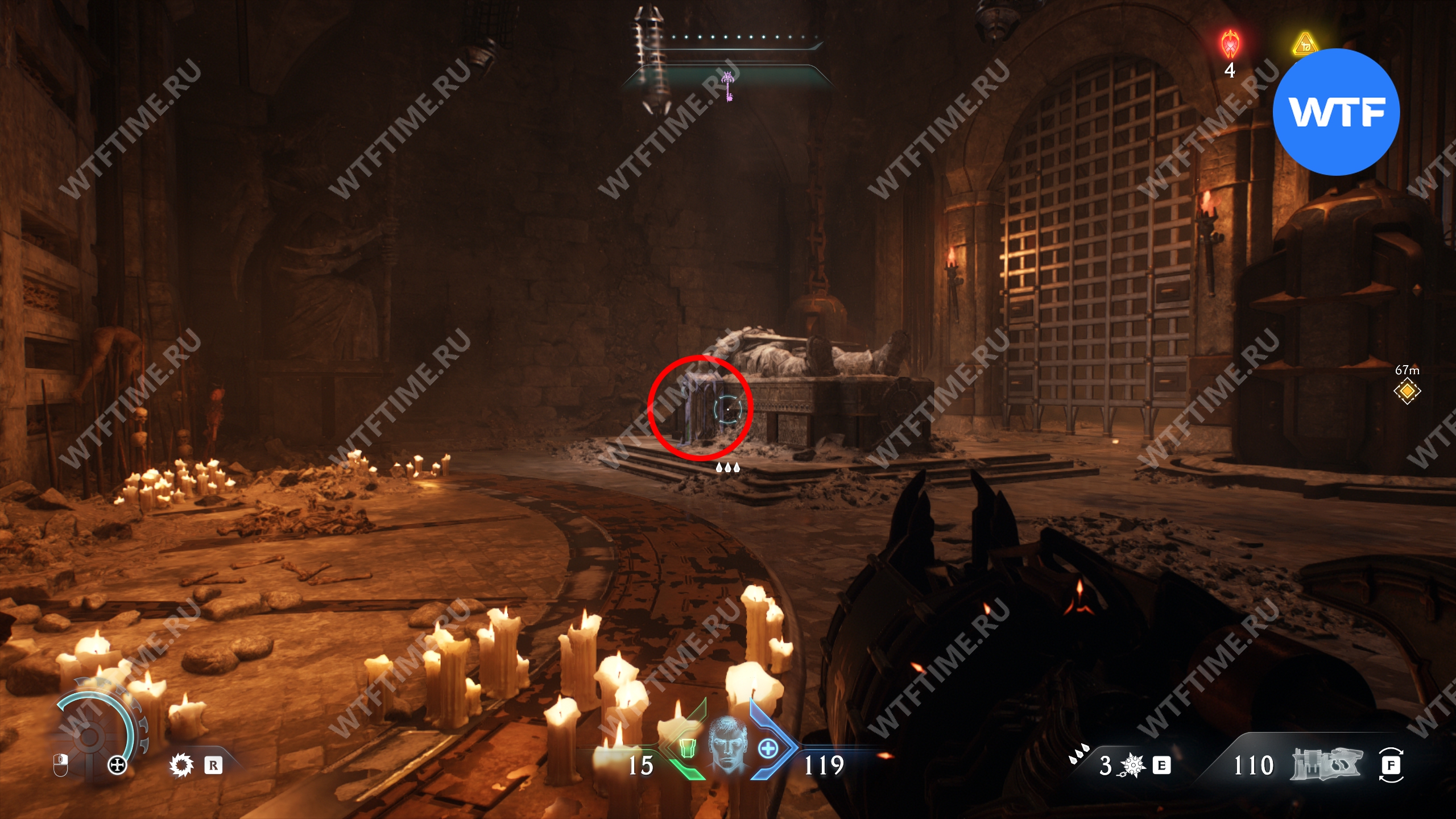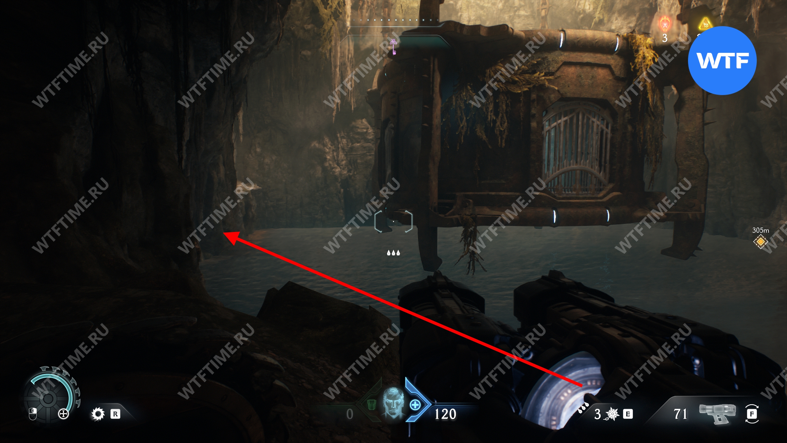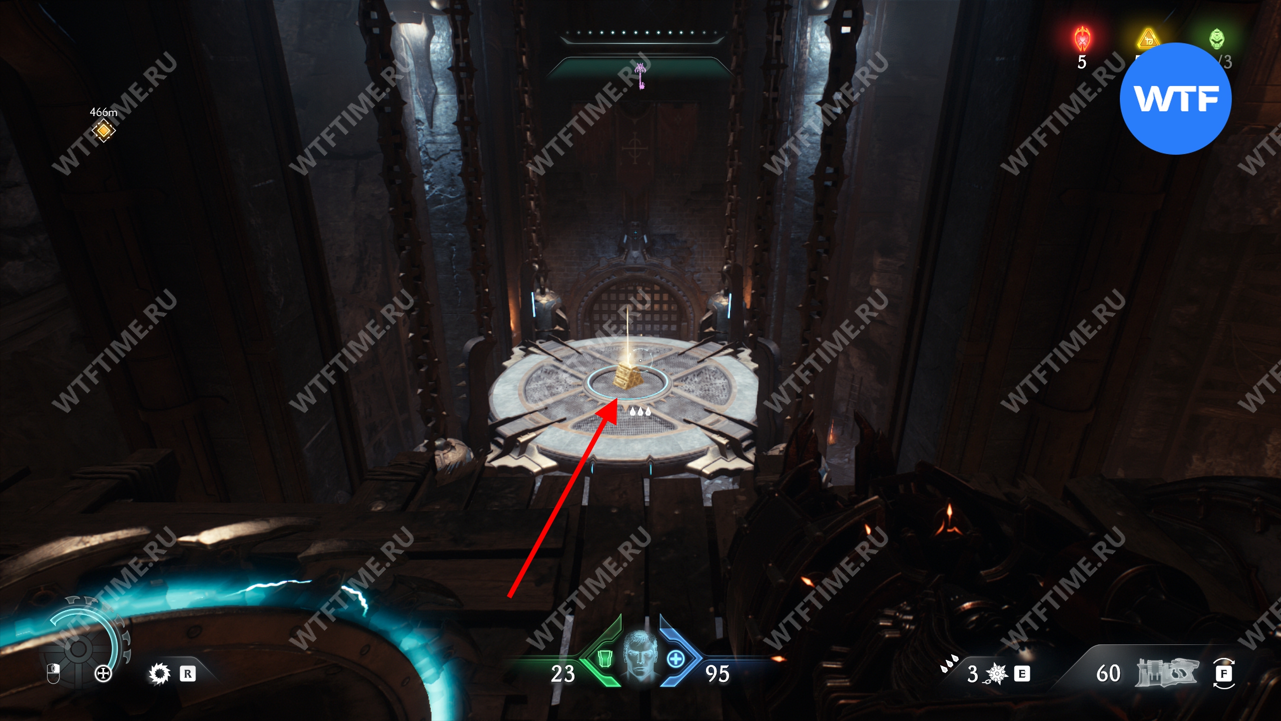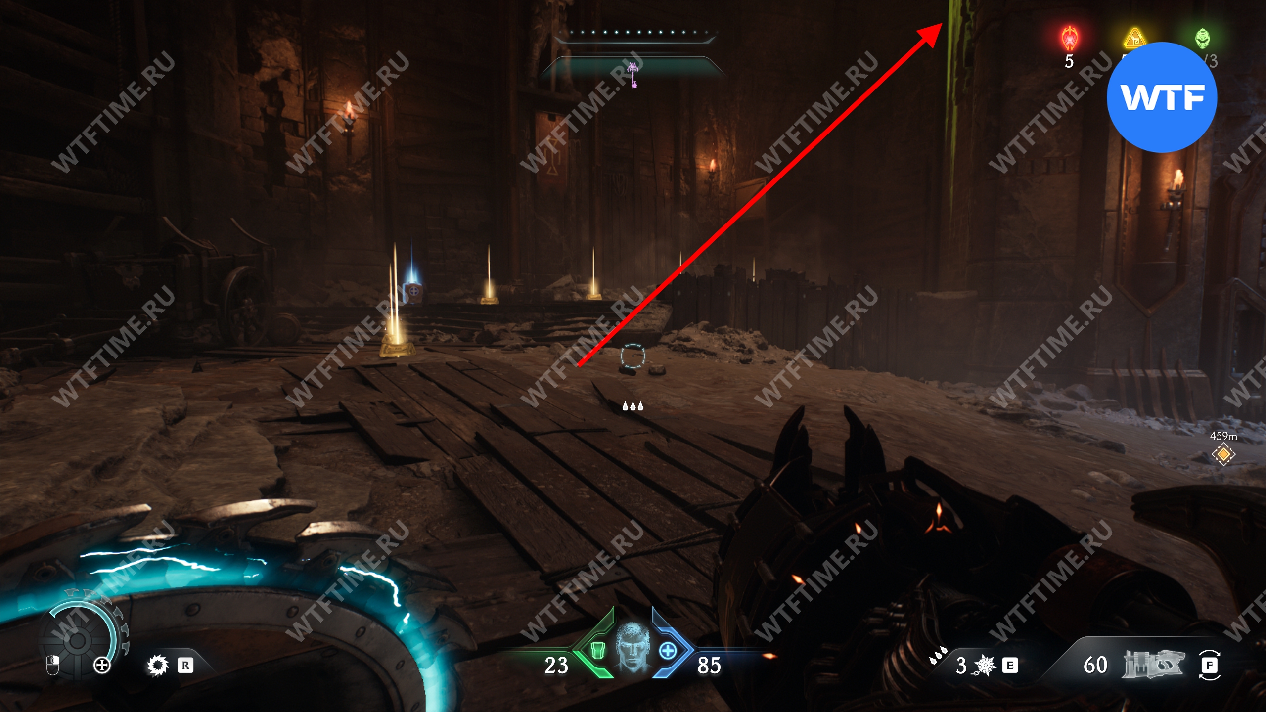 Чтобы покинуть эту локацию, идите в левую часть и ныряйте. Затем пройдите через тоннель с огненными пушками и подтяните себя к зеленому сгустку в конце. В итоге вы доберетесь до еще одного рычага, который откроет проход к кругу культистов. Убейте их и сможете закрыть портал и выйти.