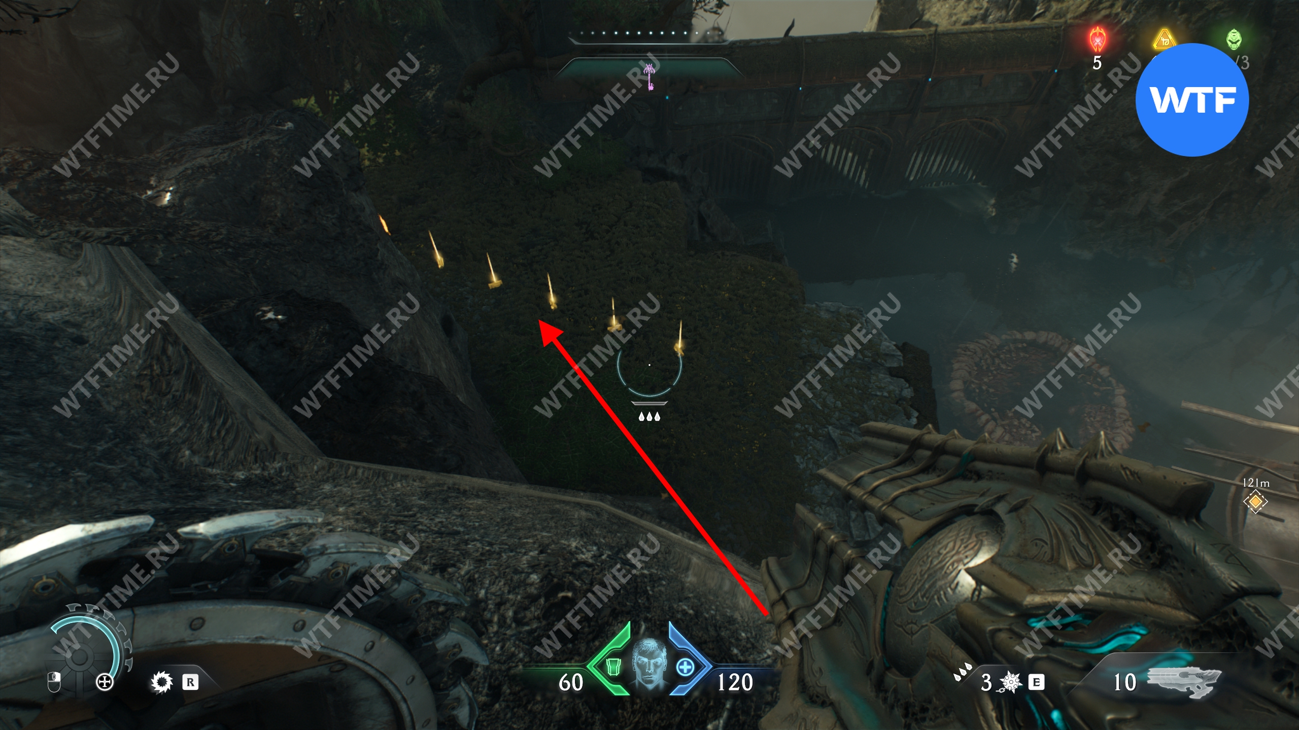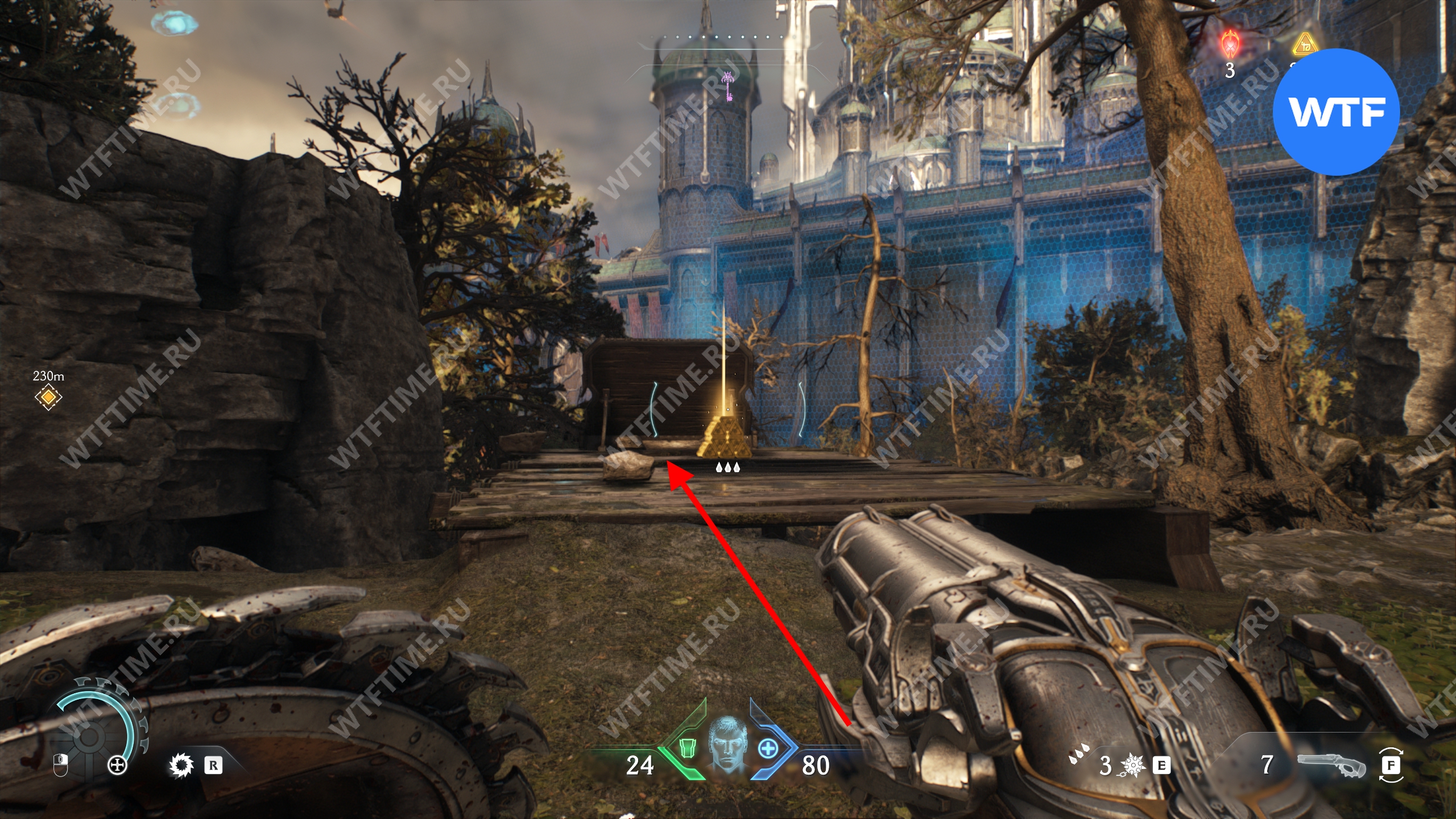 К северо-востоку от площадки со вторым сюжетным порталом можно найти еще одну артиллерийскую пушку. Уничтожив её, вы получите 8 золота.