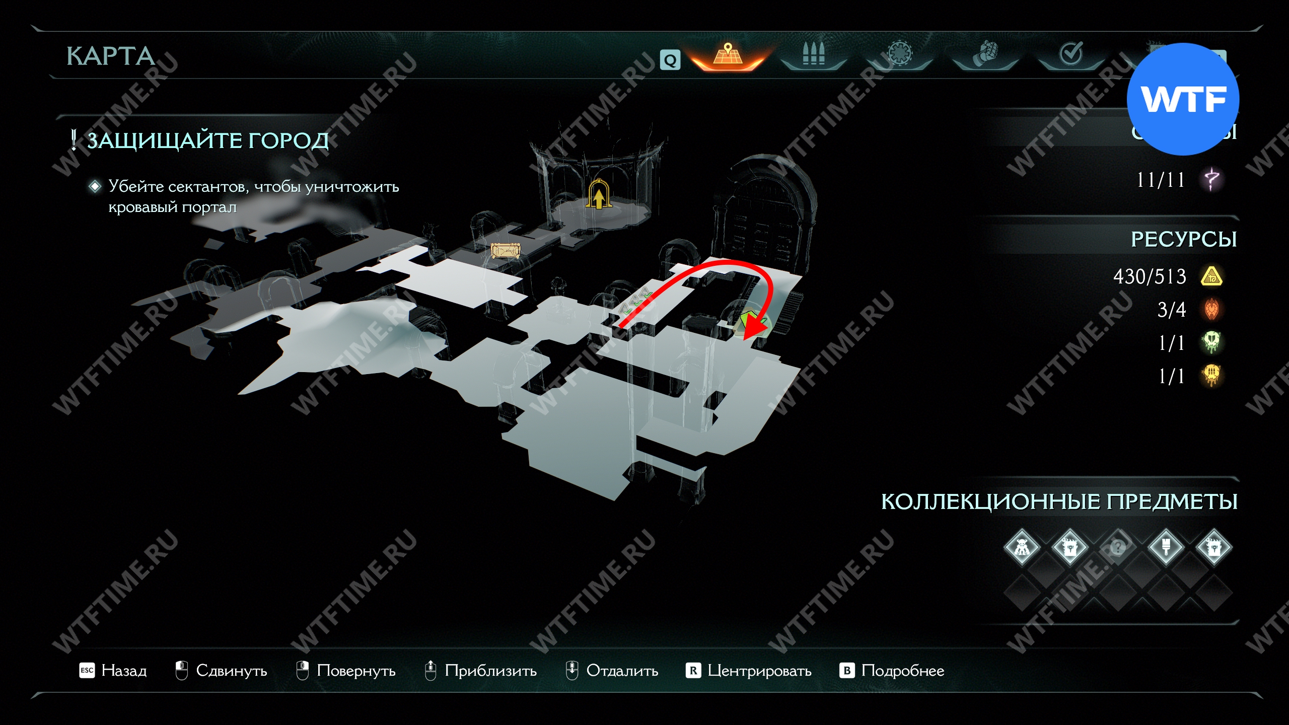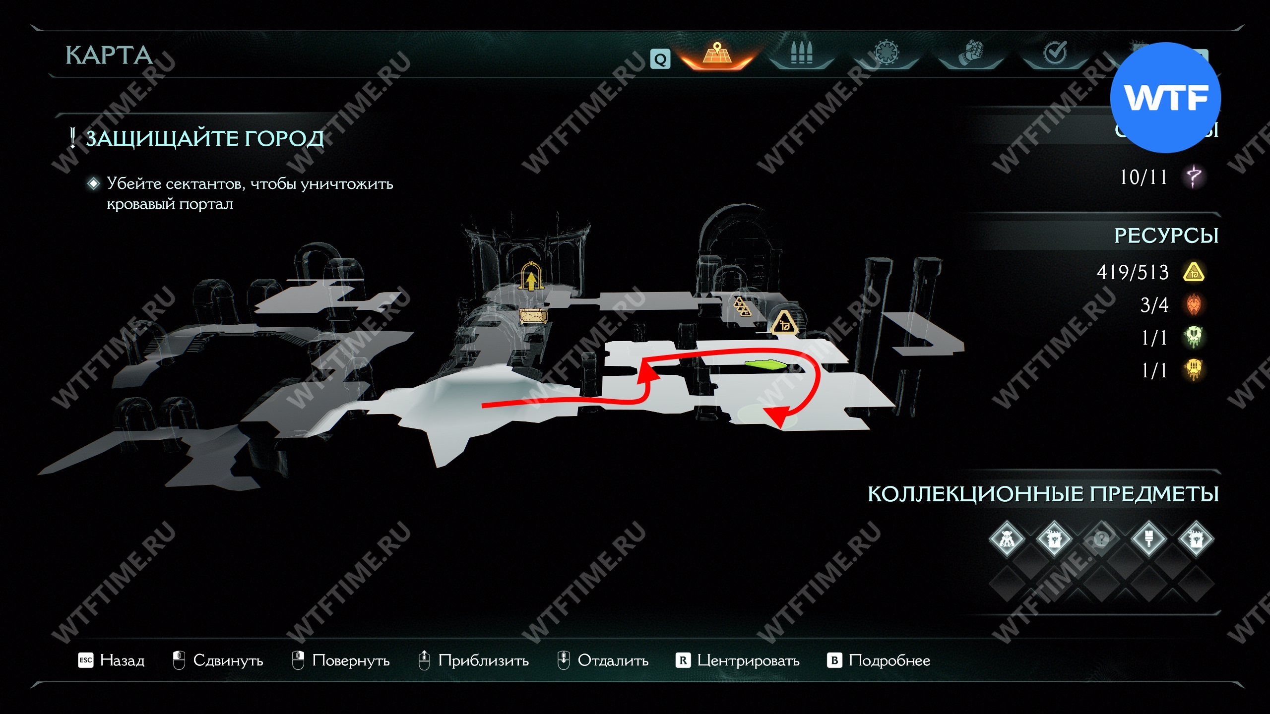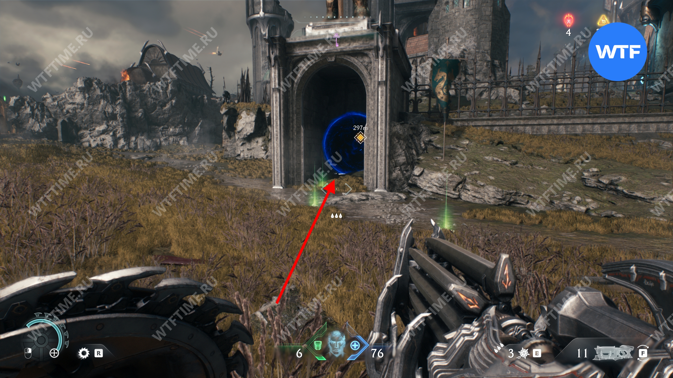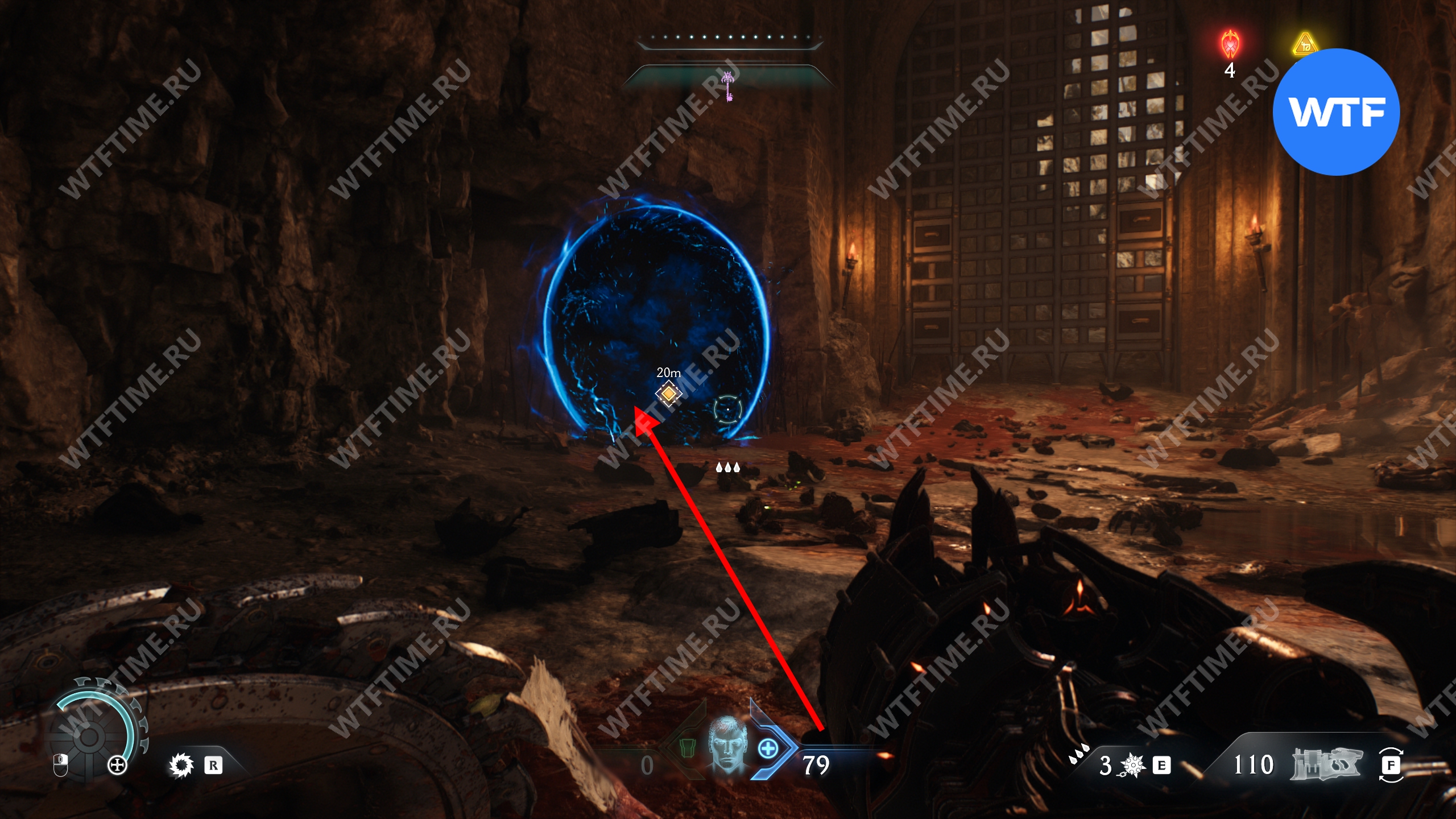 Следующий секрет находится в области с последним кровавым порталом. Следуйте за сюжетной меткой, затем зачистите область от врагов и пройдите через синий портал в локацию с отдельной картой.