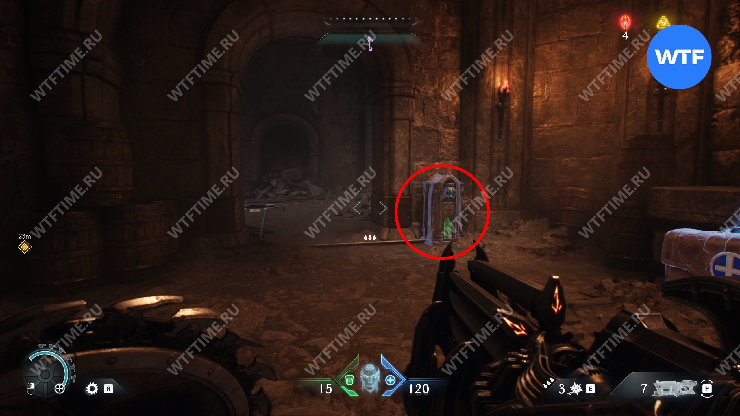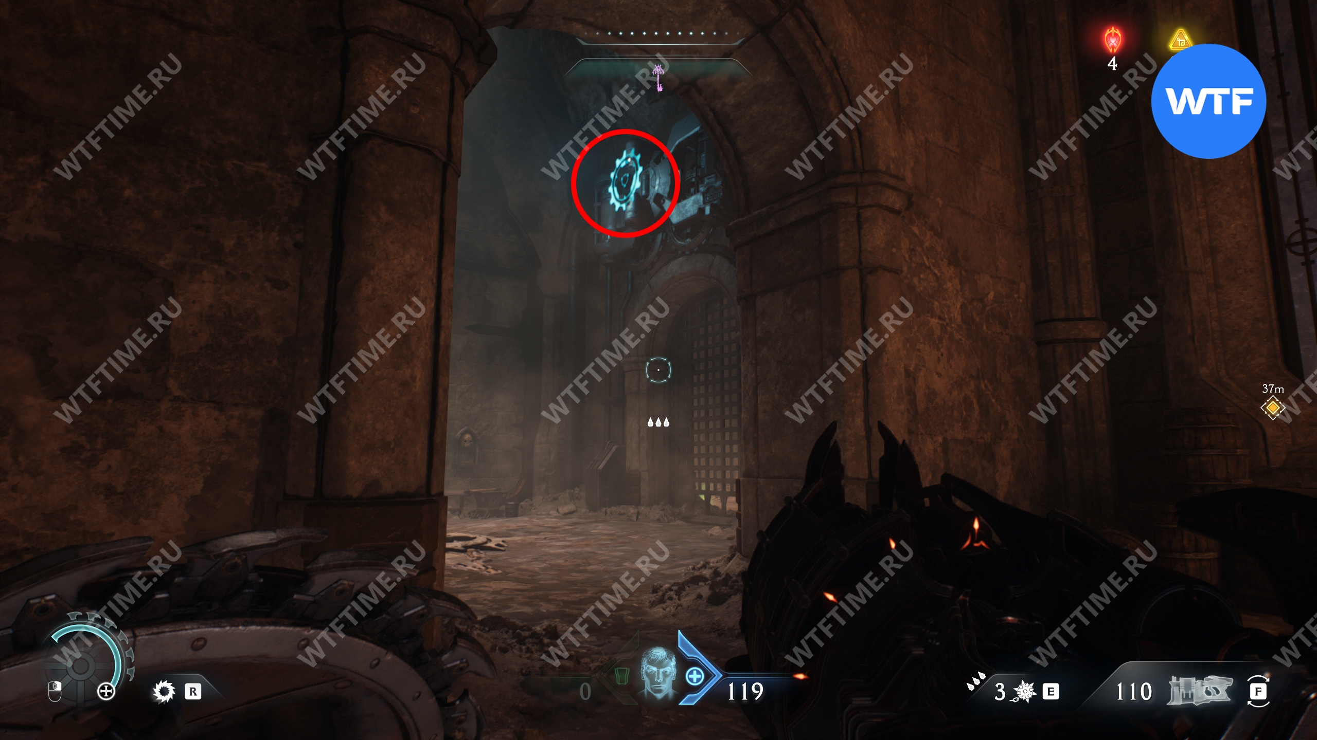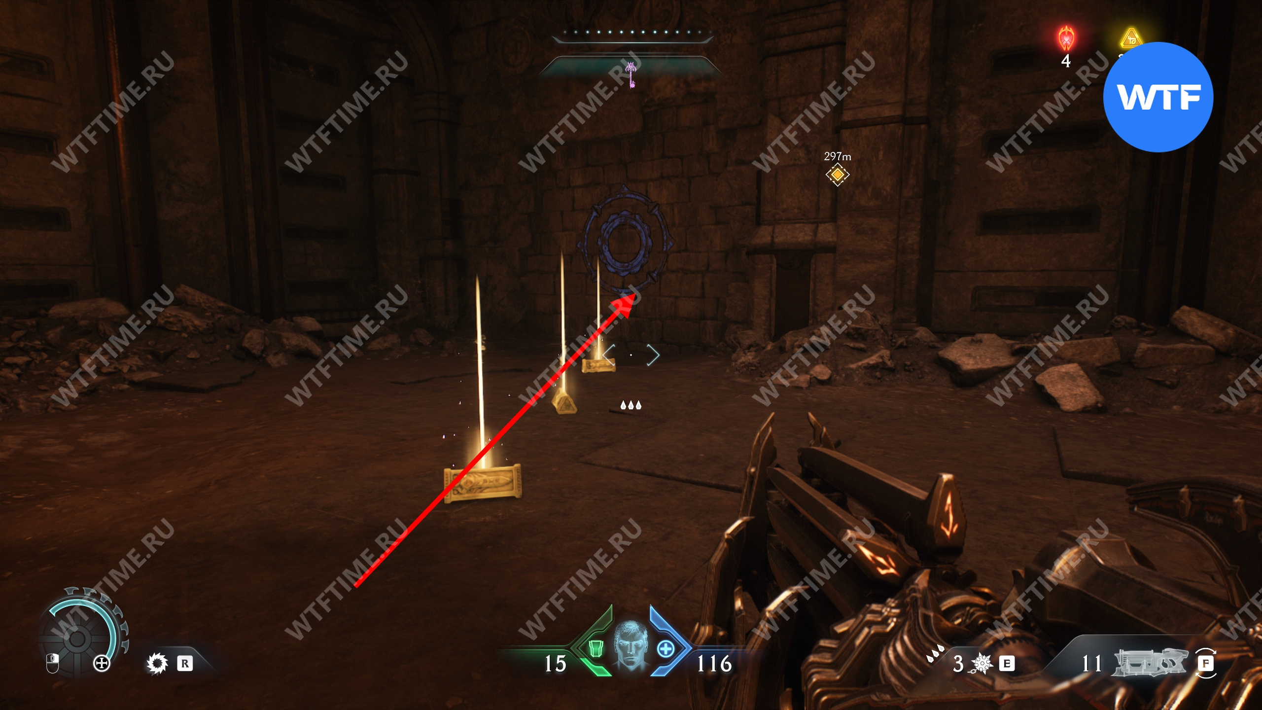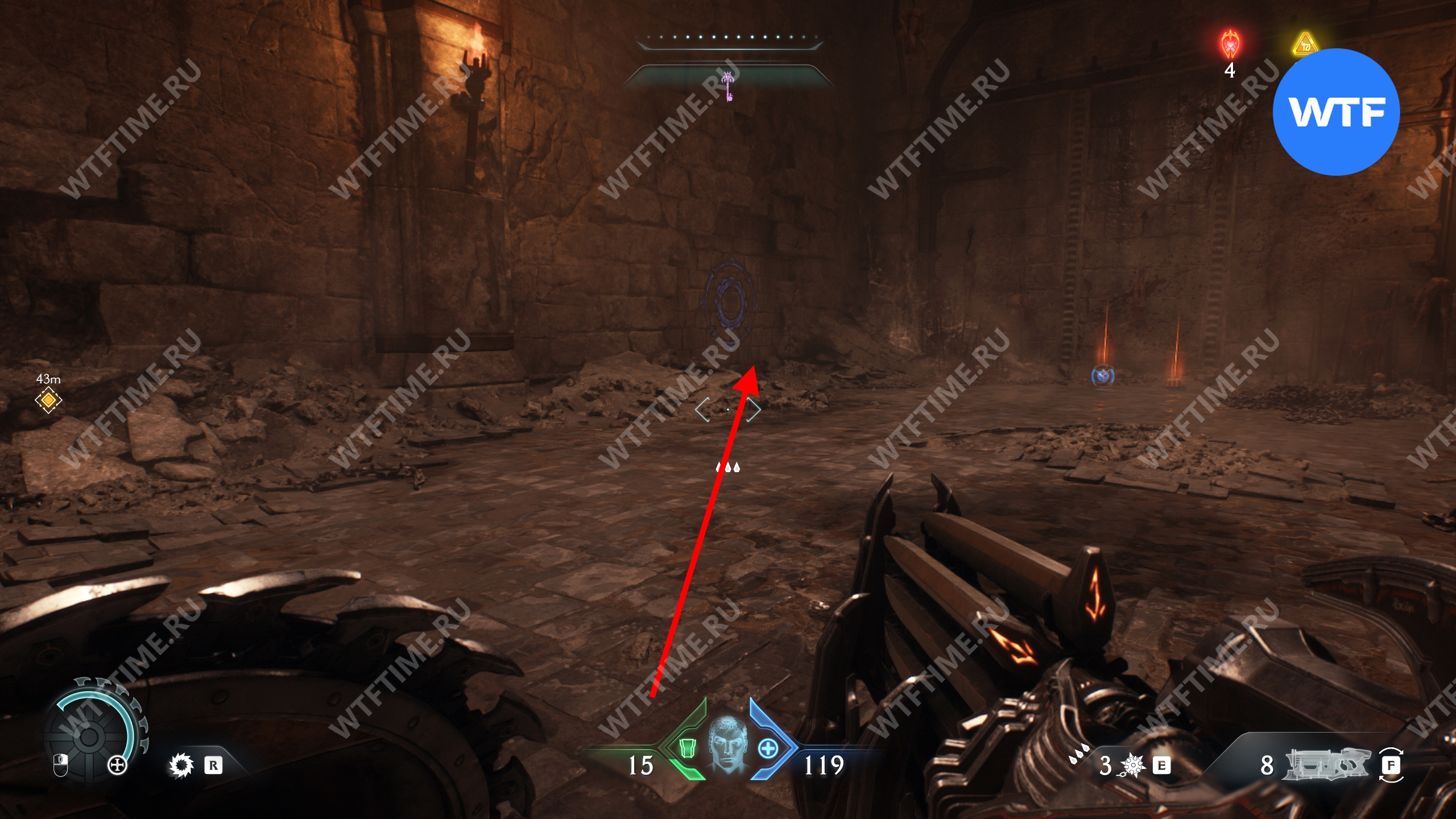 Следующий секрет находится в области с последним кровавым порталом. Следуйте за сюжетной меткой, затем зачистите область от врагов и пройдите через синий портал в локацию с отдельной картой.