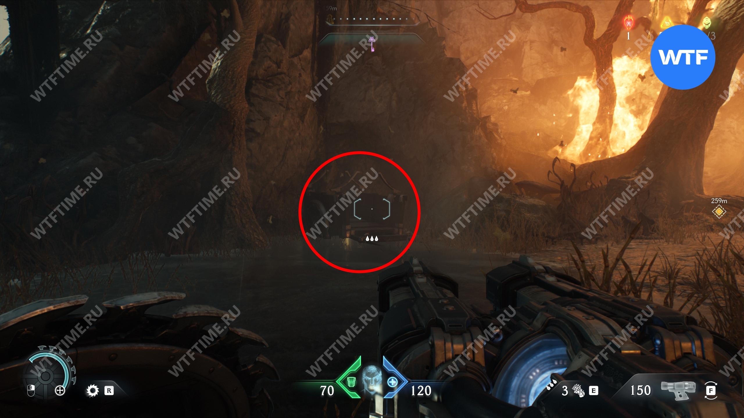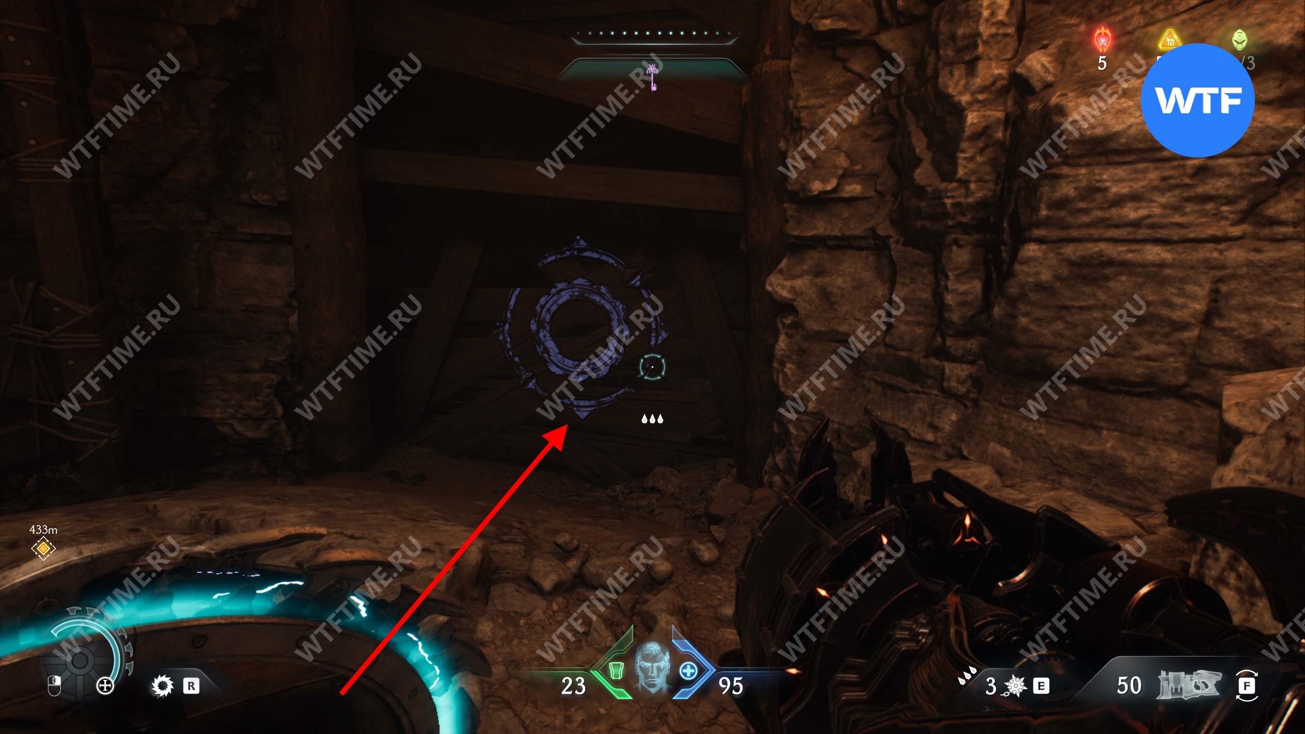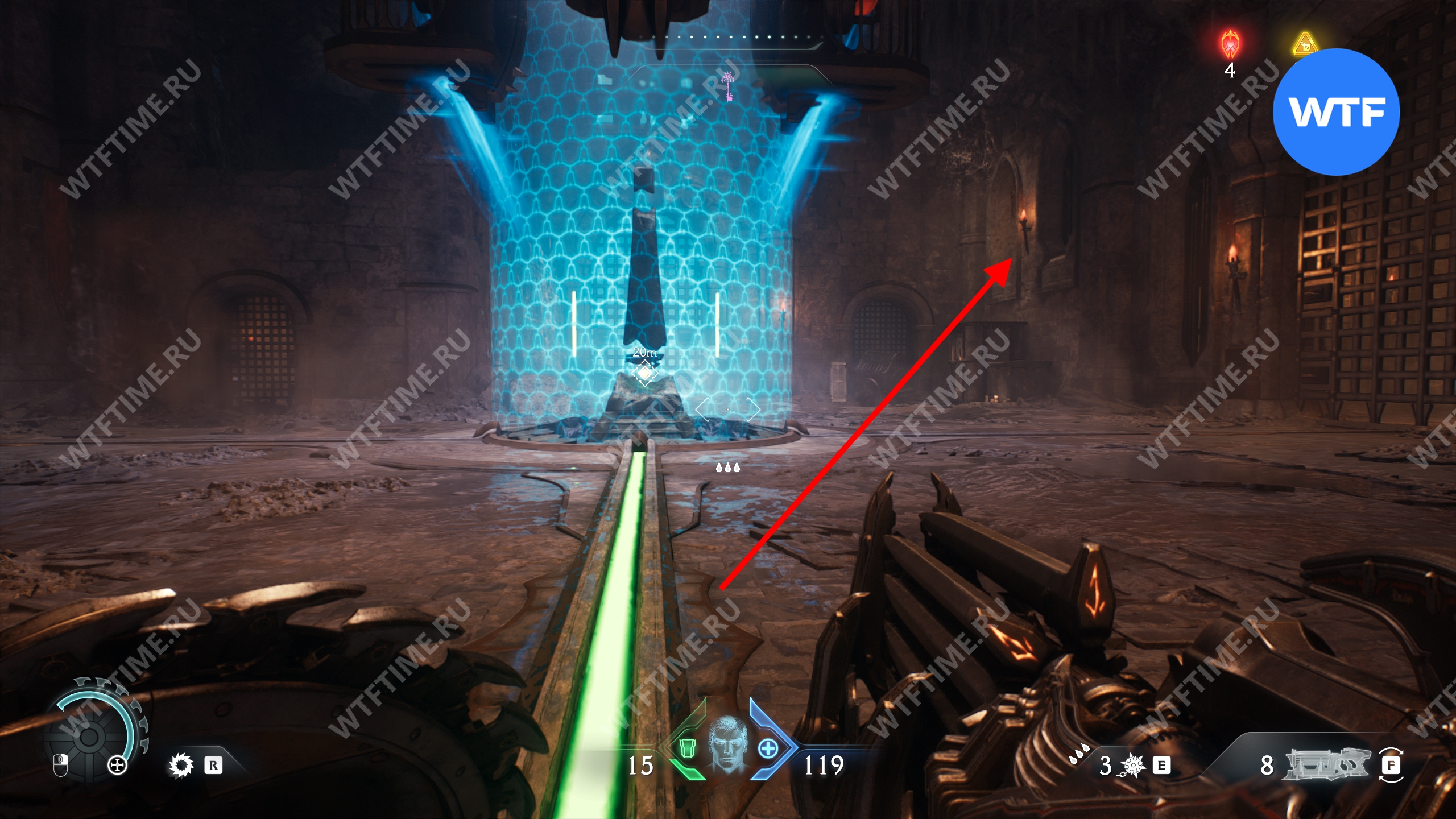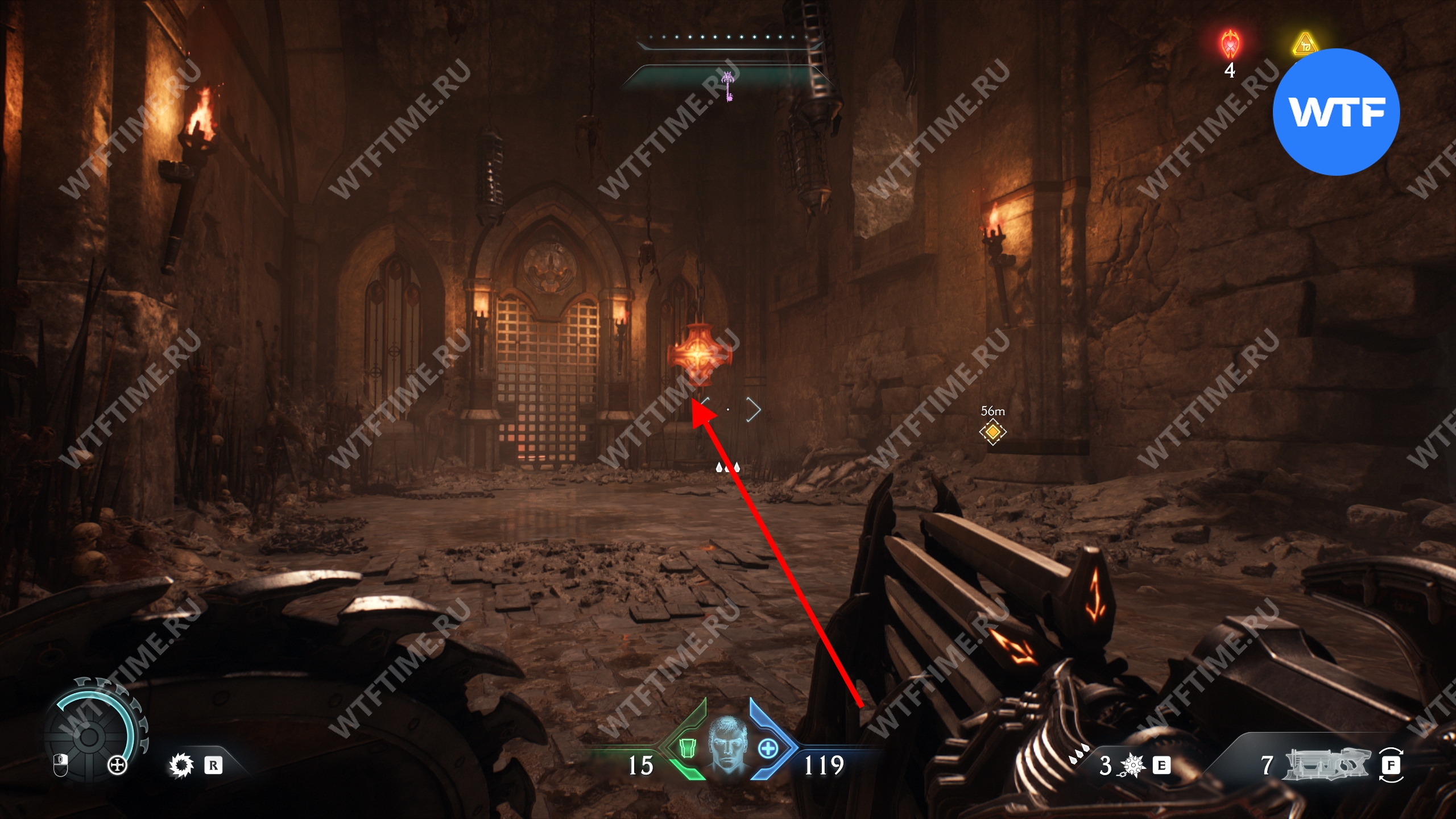 Следующий секрет находится в области с последним кровавым порталом. Следуйте за сюжетной меткой, затем зачистите область от врагов и пройдите через синий портал в локацию с отдельной картой.