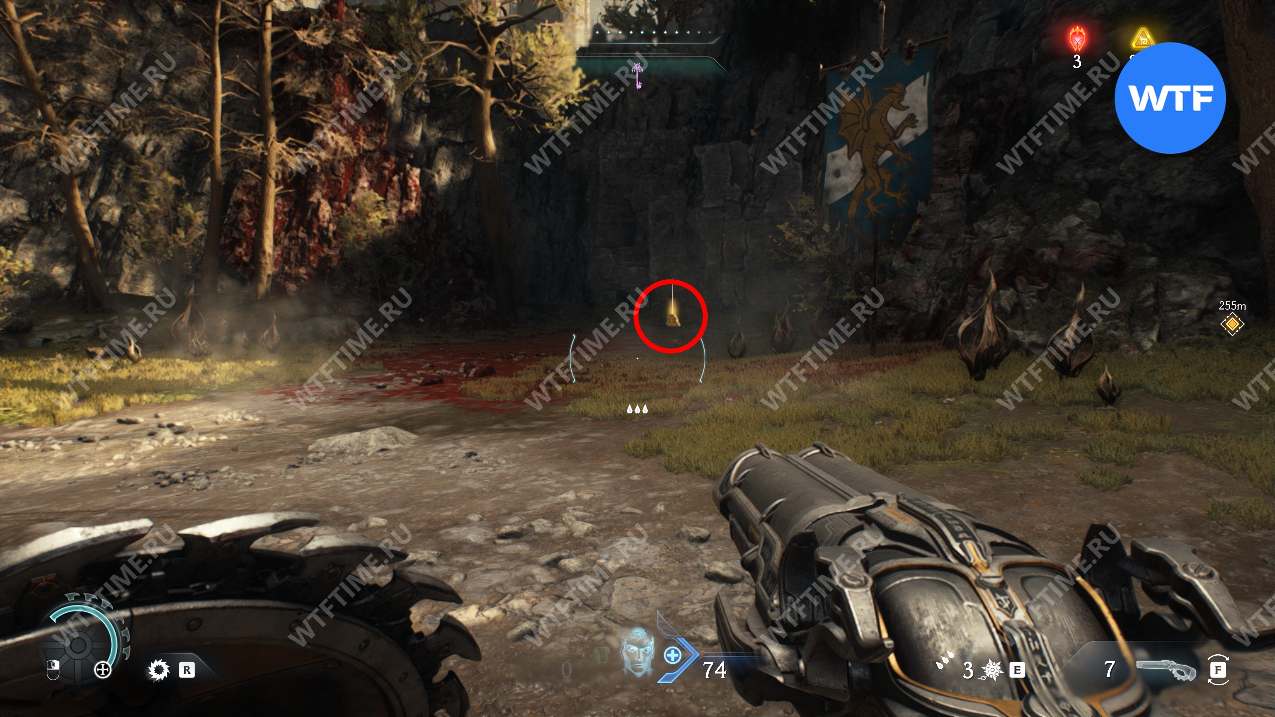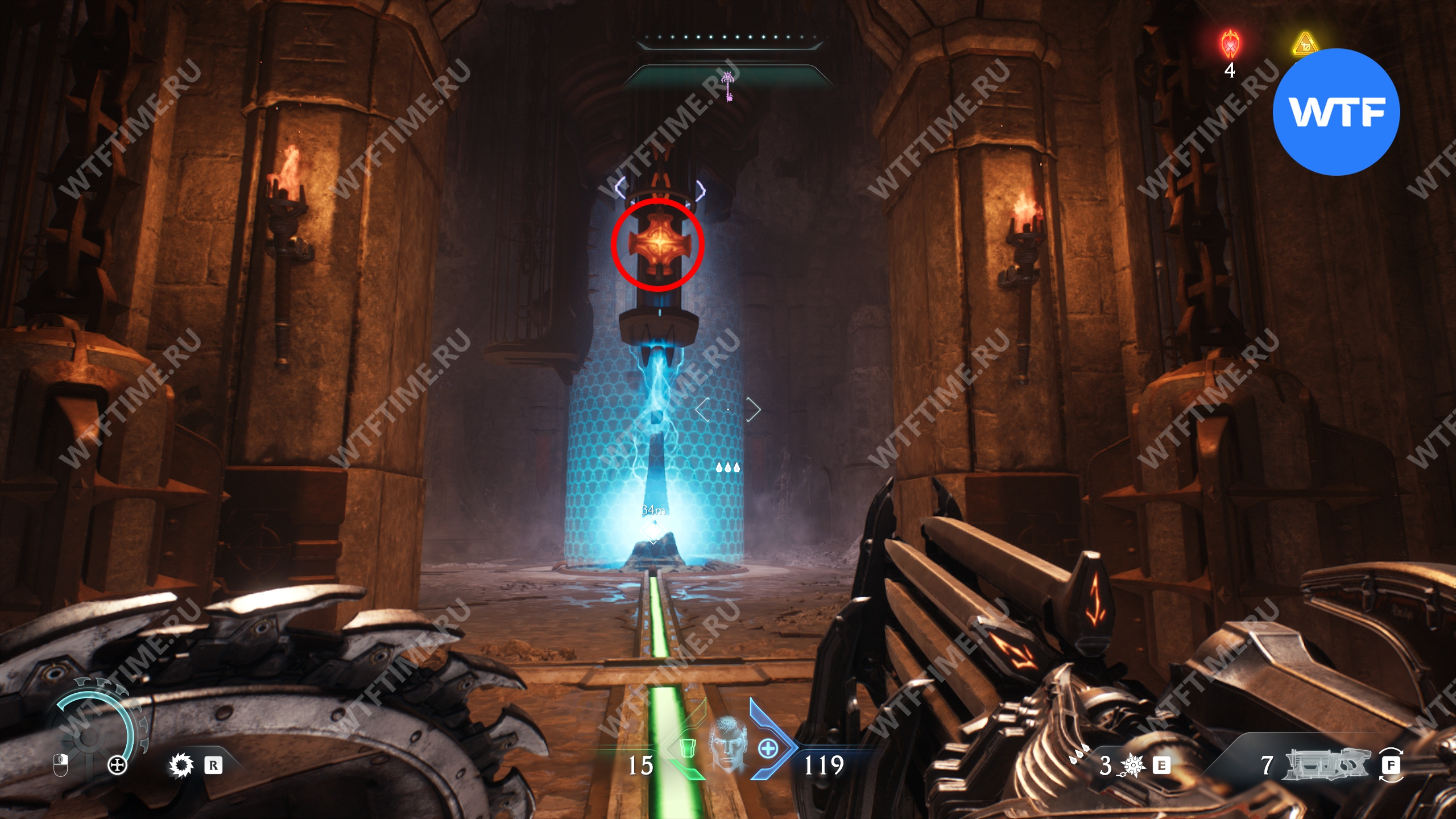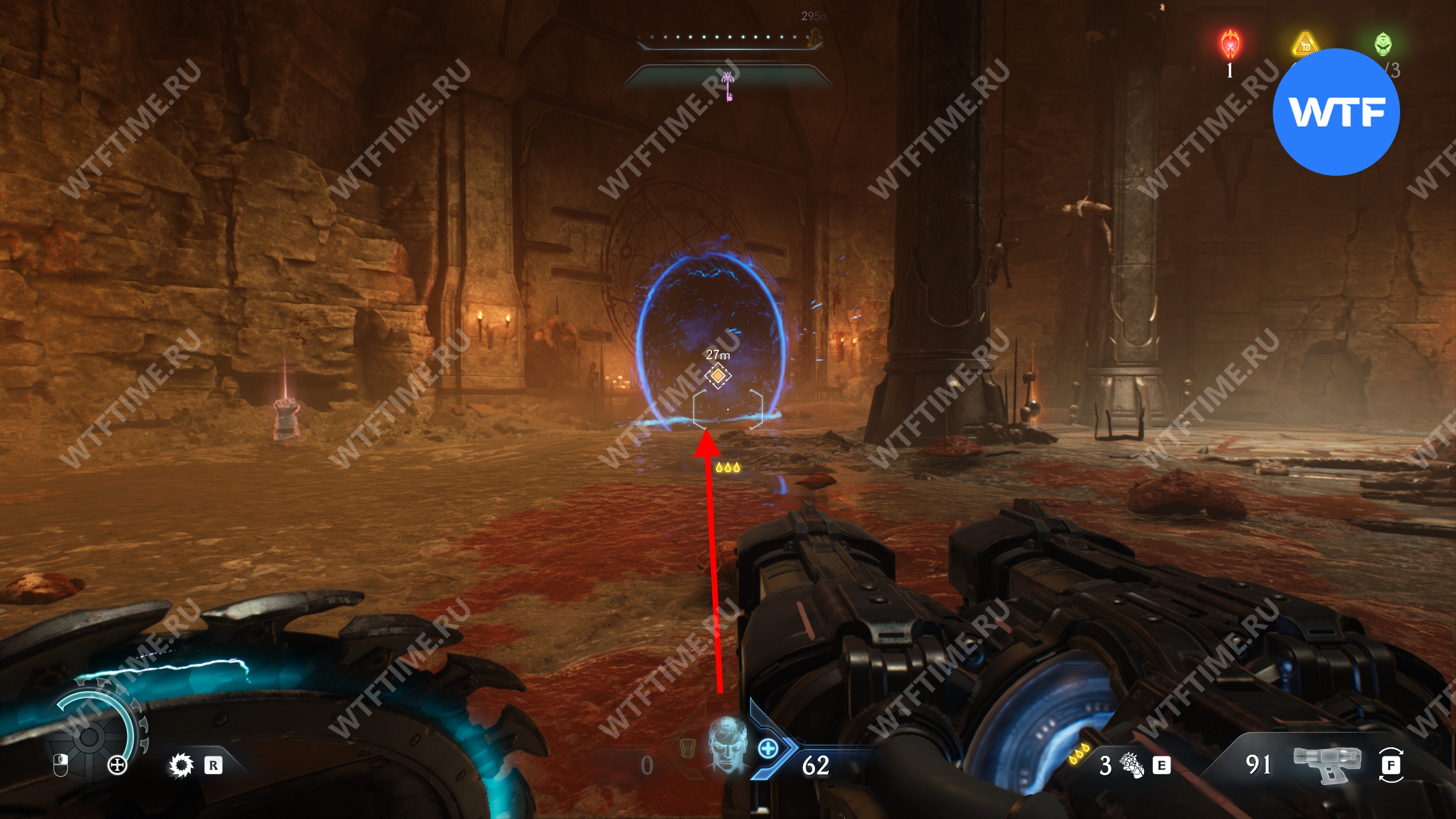 Следующий секрет находится в той же области, что и третий кровавый портал. Следуйте за сюжетной меткой, зачистите область от врагов, а затем пройдите через синий портал, чтобы переместиться в локацию с отдельной картой.
