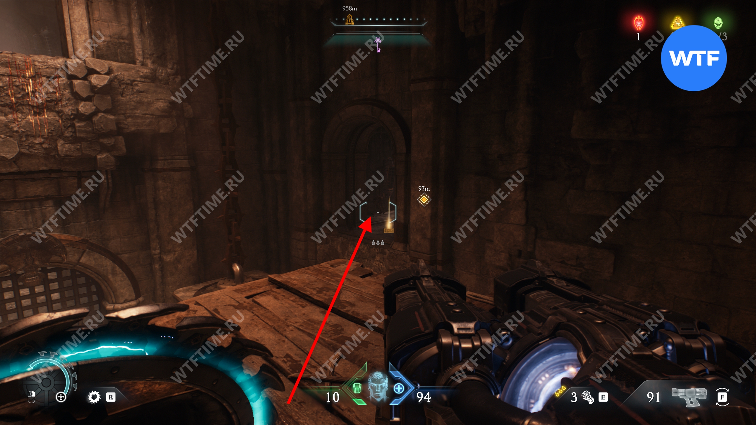 В углу комнаты с синим барьером есть несколько ящиков, по которым можно забраться наверх, а затем спрыгнуть в комнату рядом. После этого посмотрите налево, чтобы увидеть разрушаемую стену и найти за ней 8 золота.
