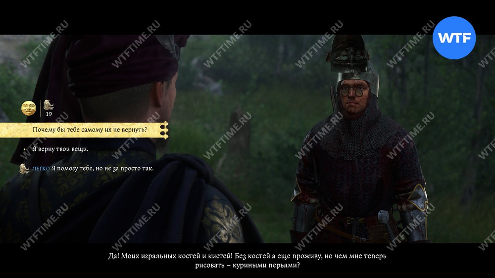 Если вы скажете, что художник цел, то сможете посоревноваться с Иржи в стрельбе и получить кисти в качестве награды за победу. Вы также всегда можете ограбить его или оглушить.