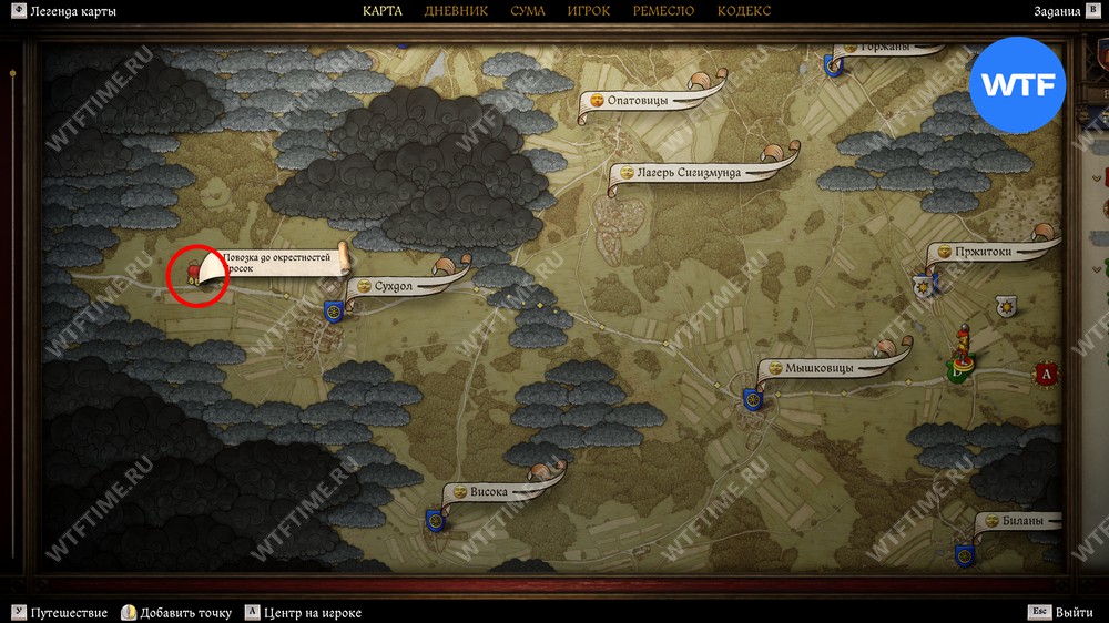 Если вы находитесь во втором игровом регионе, то нужно сначала вернуться обратно в Троски, заплатив 200 грошей вознице. Его стоянка отмечена значком красной повозки к западу от Сухдола.