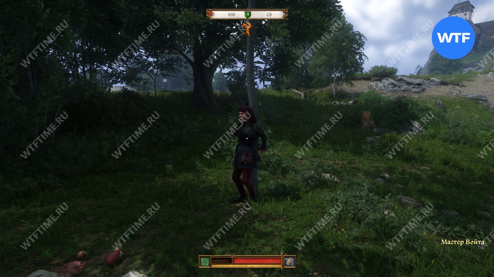 После этого вы сможете развязать его и поговорить. Художник предложит звать его мастером Войта, а также расскажет, как оказался привязанным к дереву. Он пожалуется, что двое жуликов обыграли его в кости, а когда он призвал их к ответу, то побили его и ограбили.