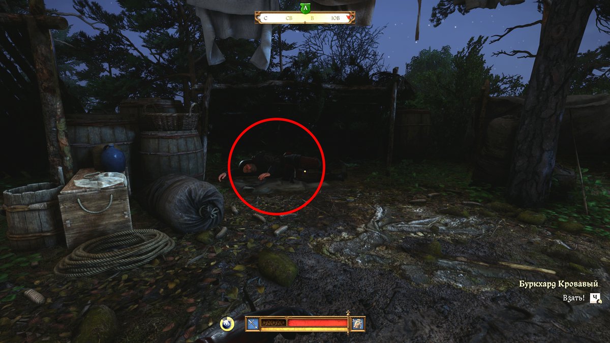 Чтобы это сделать, не трогайте Буркхарда и вместо этого вскройте сундук у палатки напротив. Он заперт на средний замок, но если ваших навыков взлома недостаточно, то ключ можно стащить у Буркхарда из кармана.