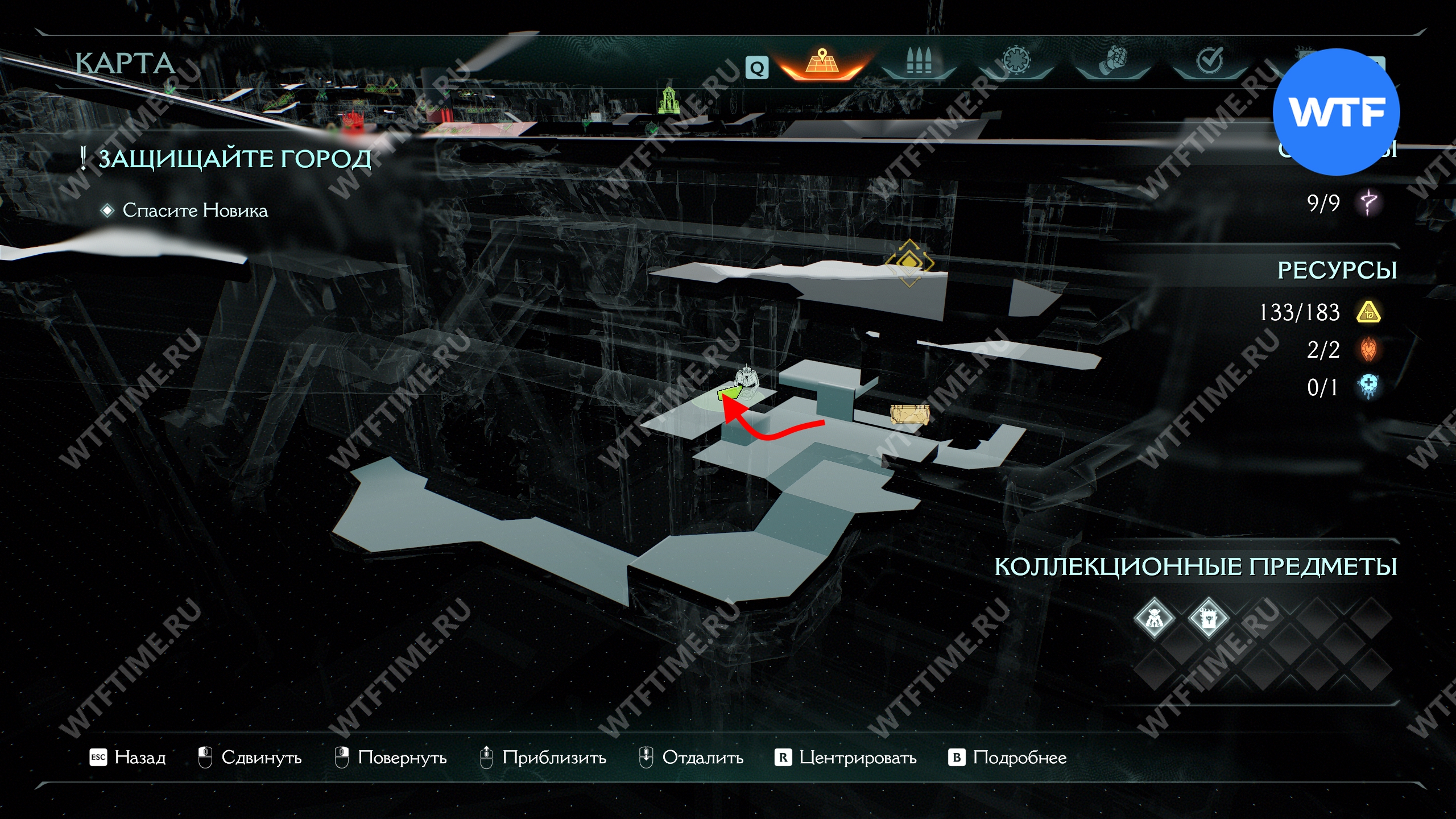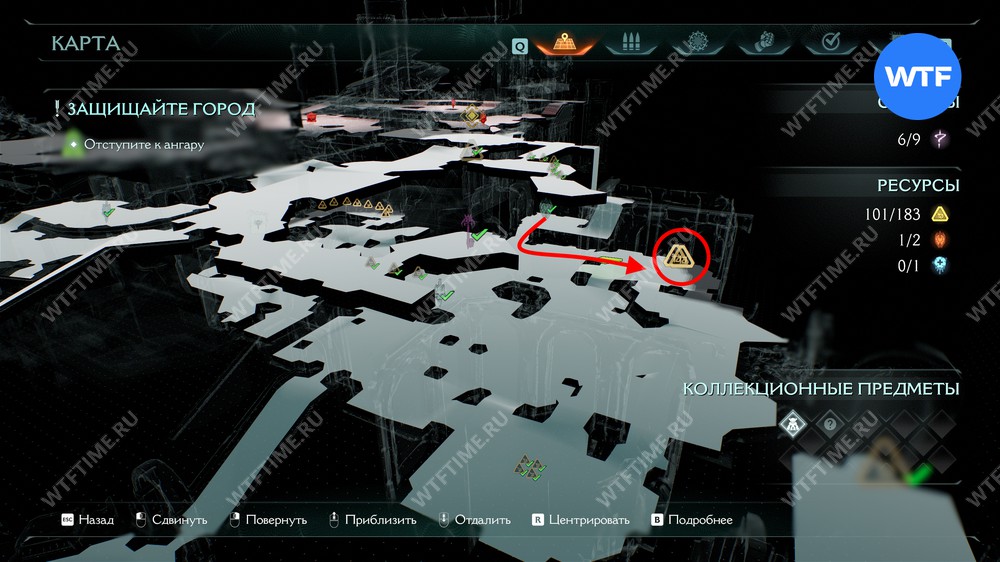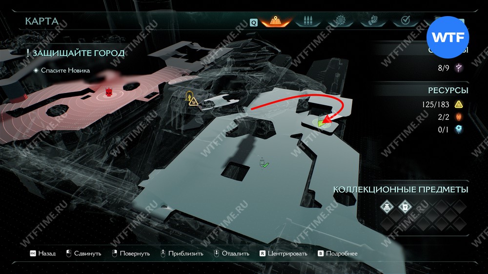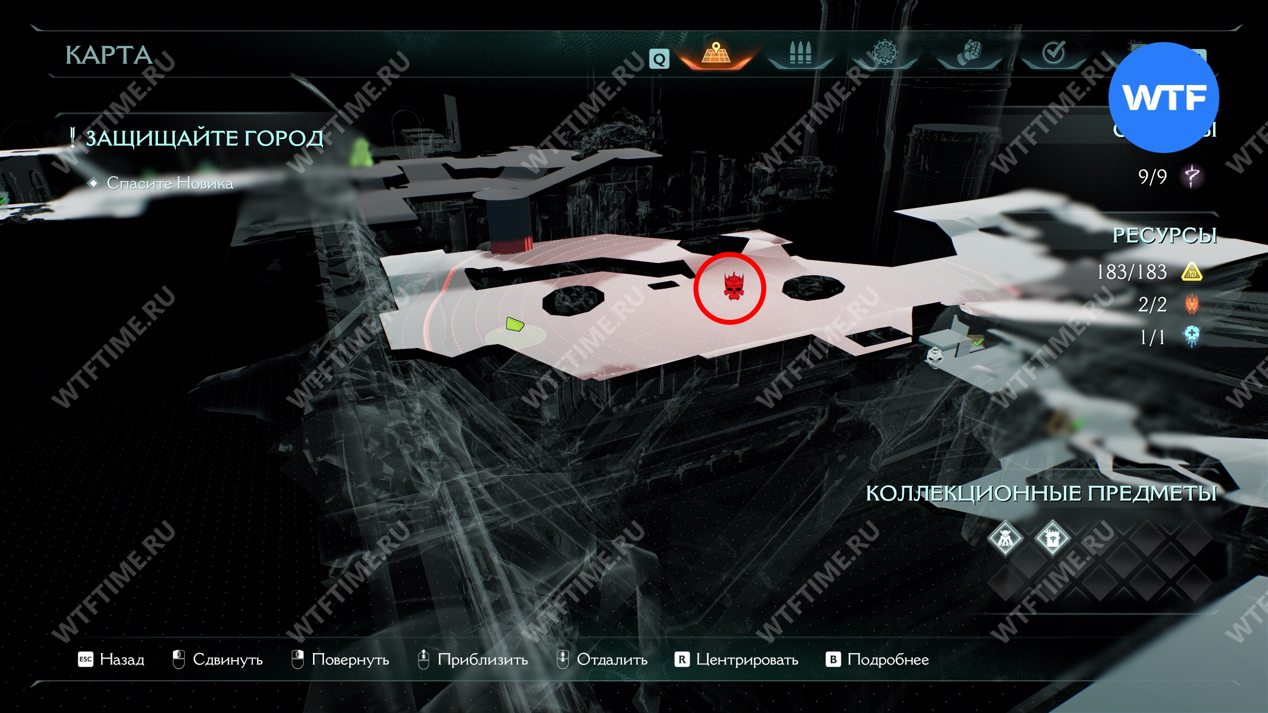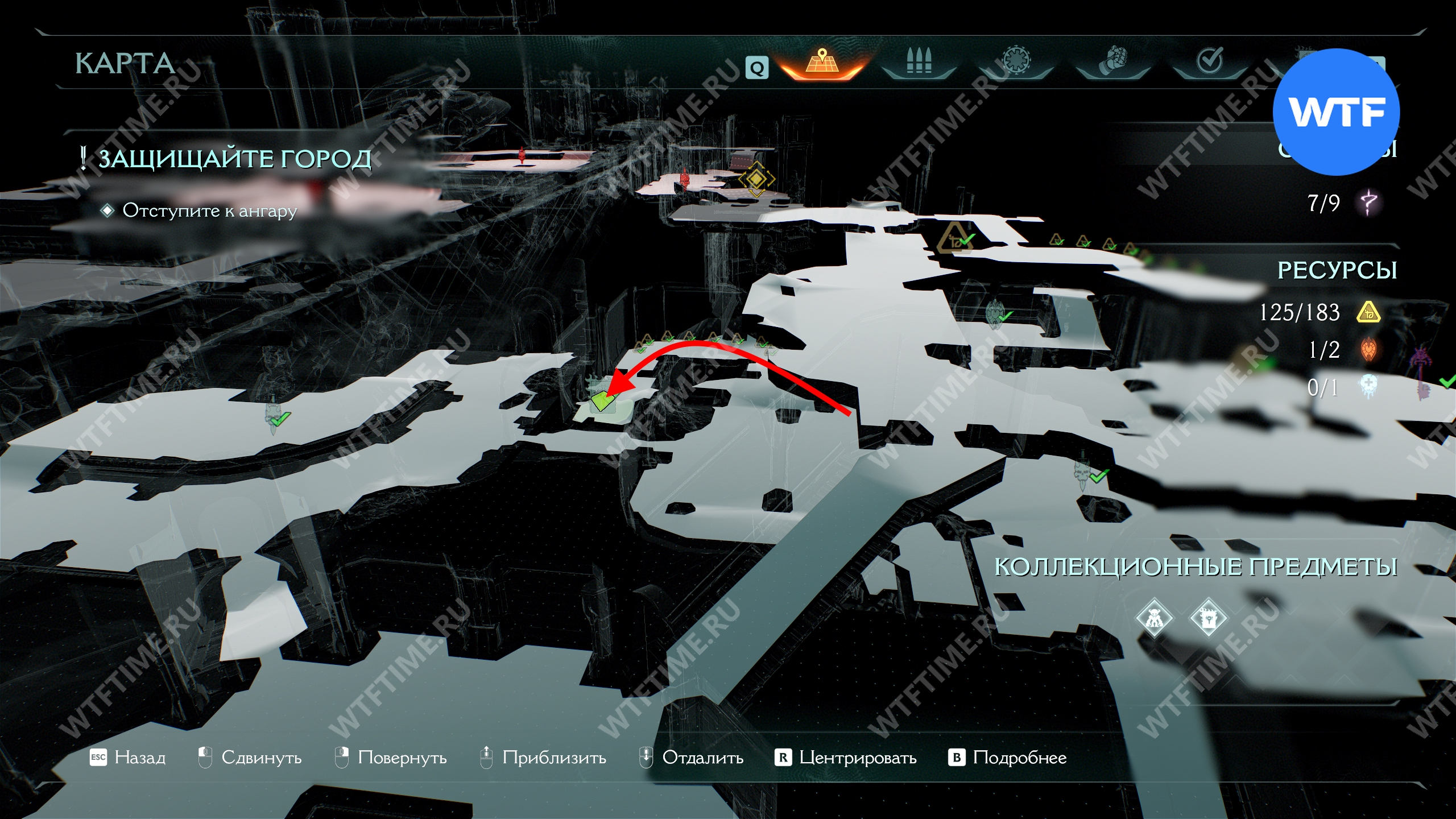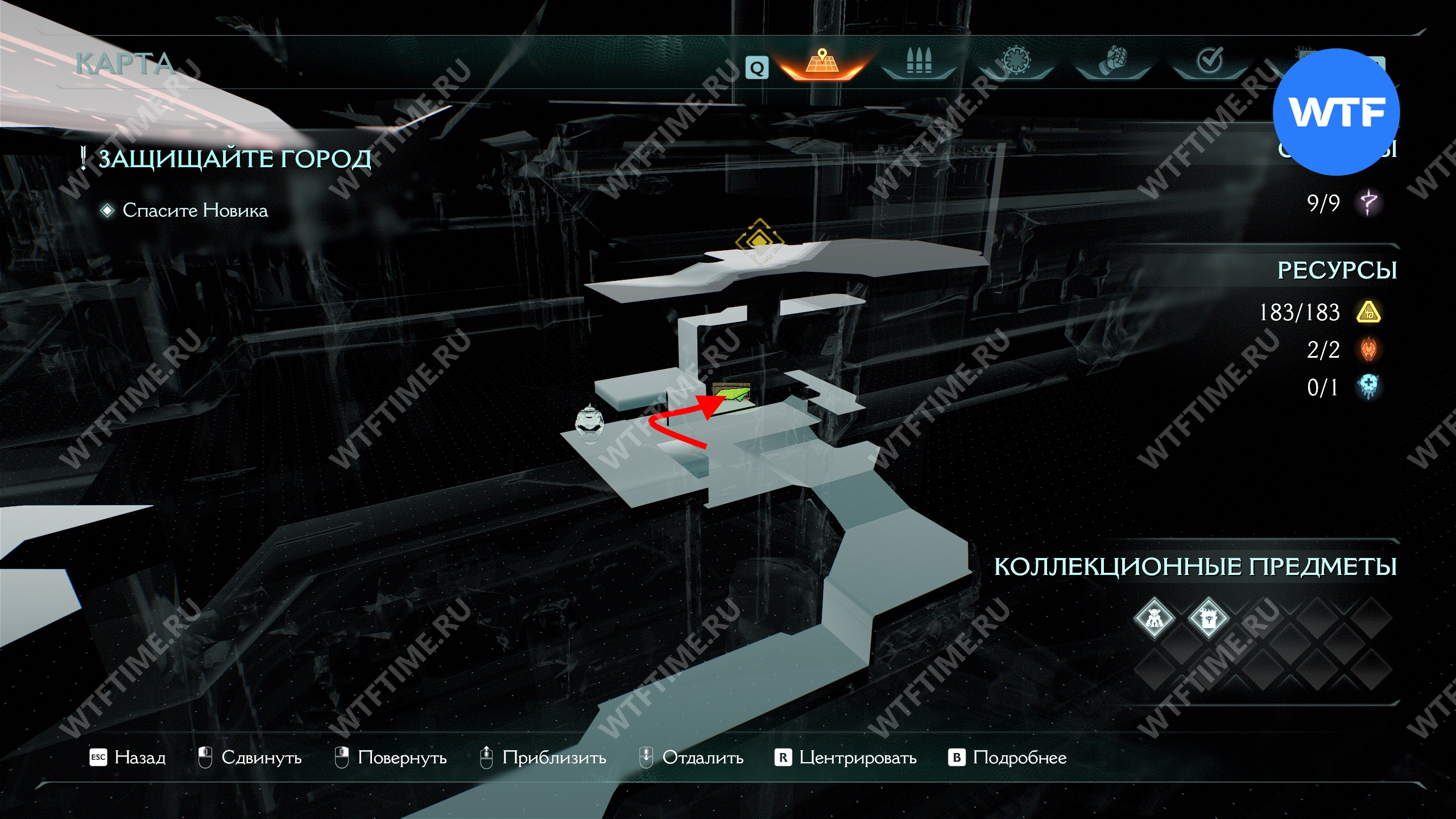 Продолжайте идти вперед, пока не доберетесь до ангара с большим летающим кораблем, где вы должны спасти Новика. В правом дальнем углу этой области есть ящик, по которому можно подняться наверх к рубину (см. карту ниже).
