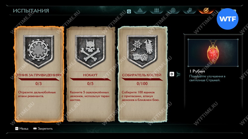 Все три испытания боевые. Ревенанты — это летающие демоны, запускающие в вас черепа. Вам нужно использовать щит, чтобы отразить 3 зеленых черепа обратно в ревенанта.