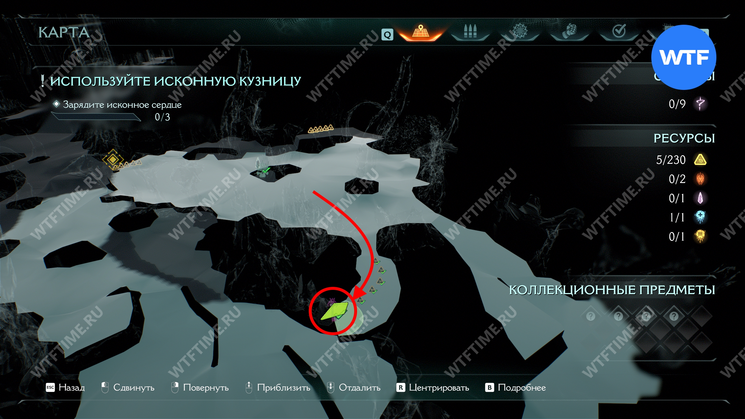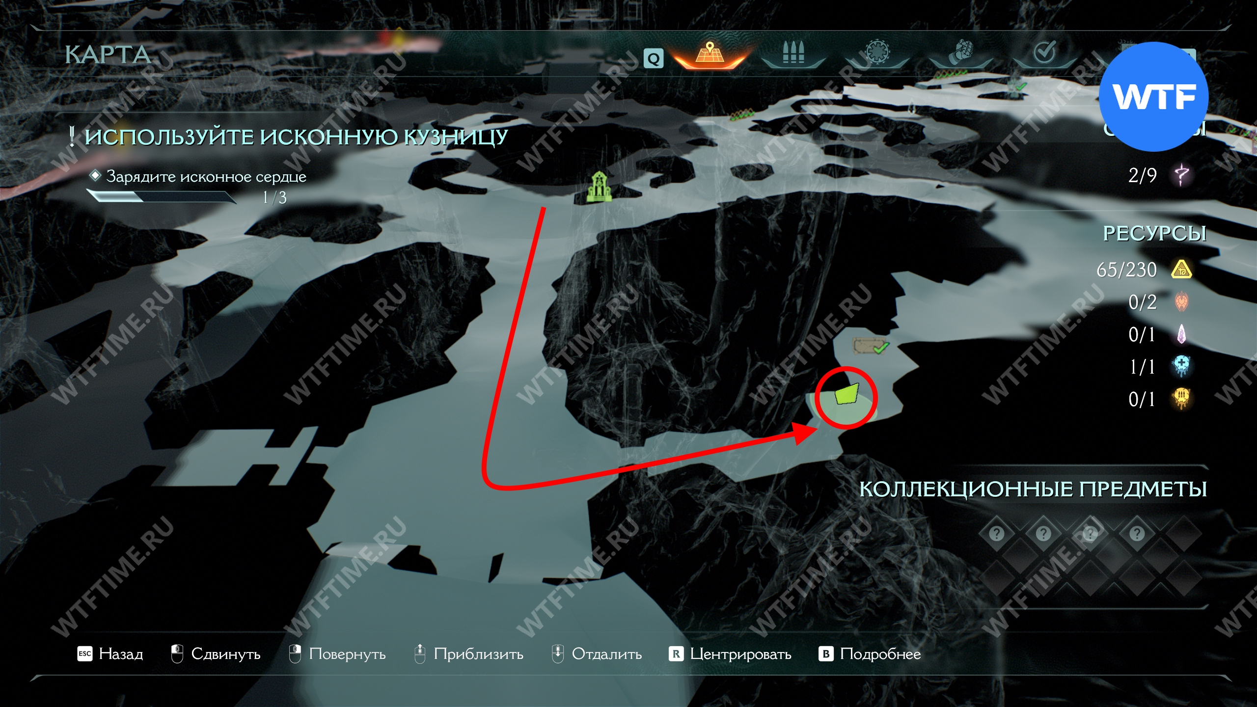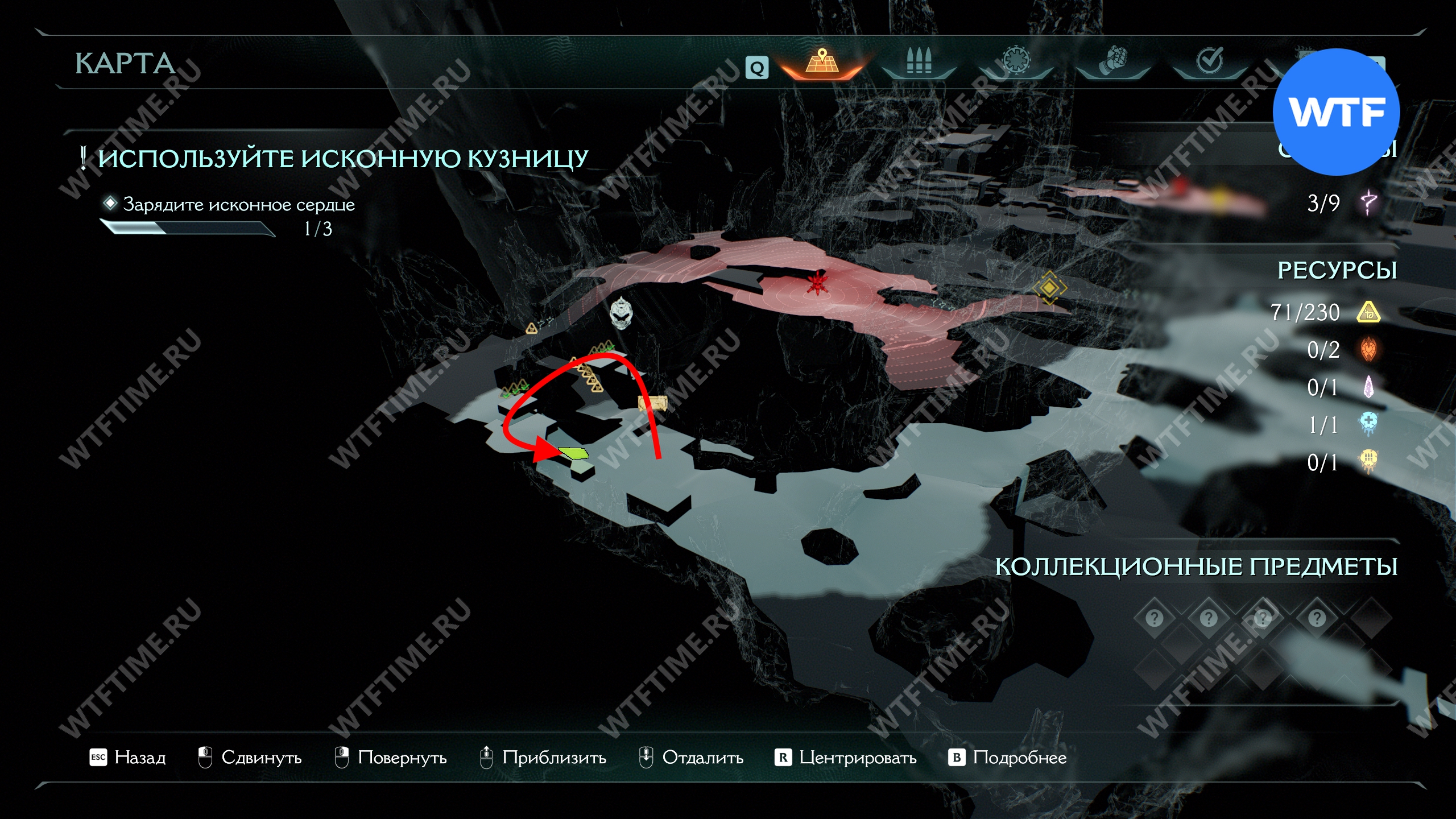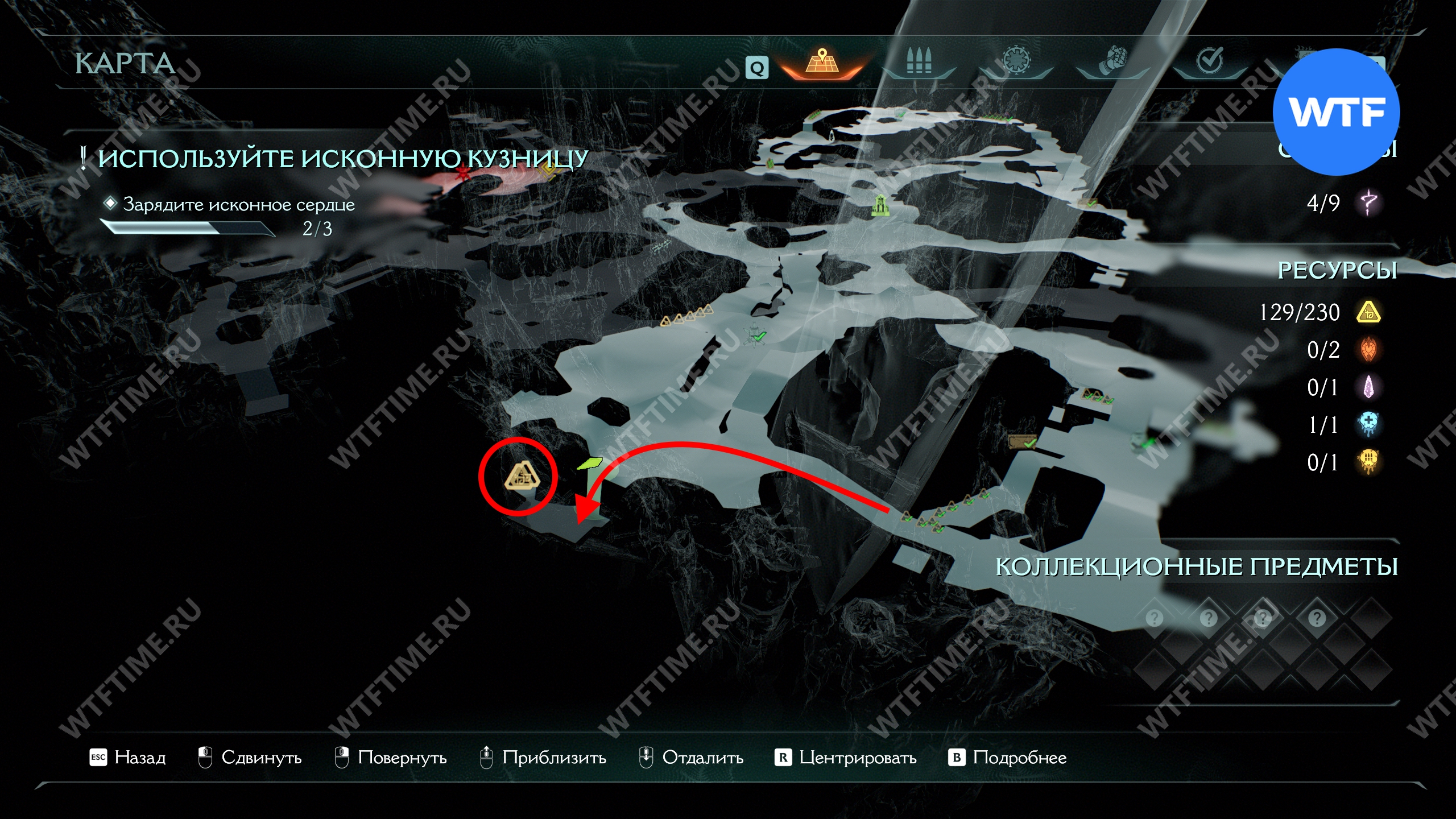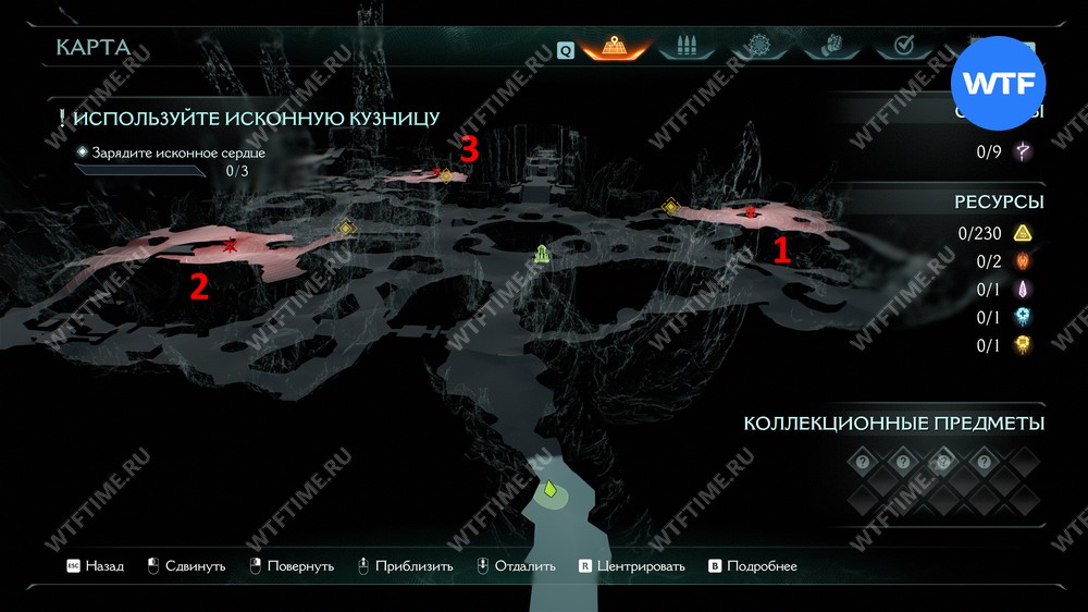 На карте ниже также пронумерованы области для зарядки исконного сердца в том порядке, в котором мы будем посещать их в гайде ниже.