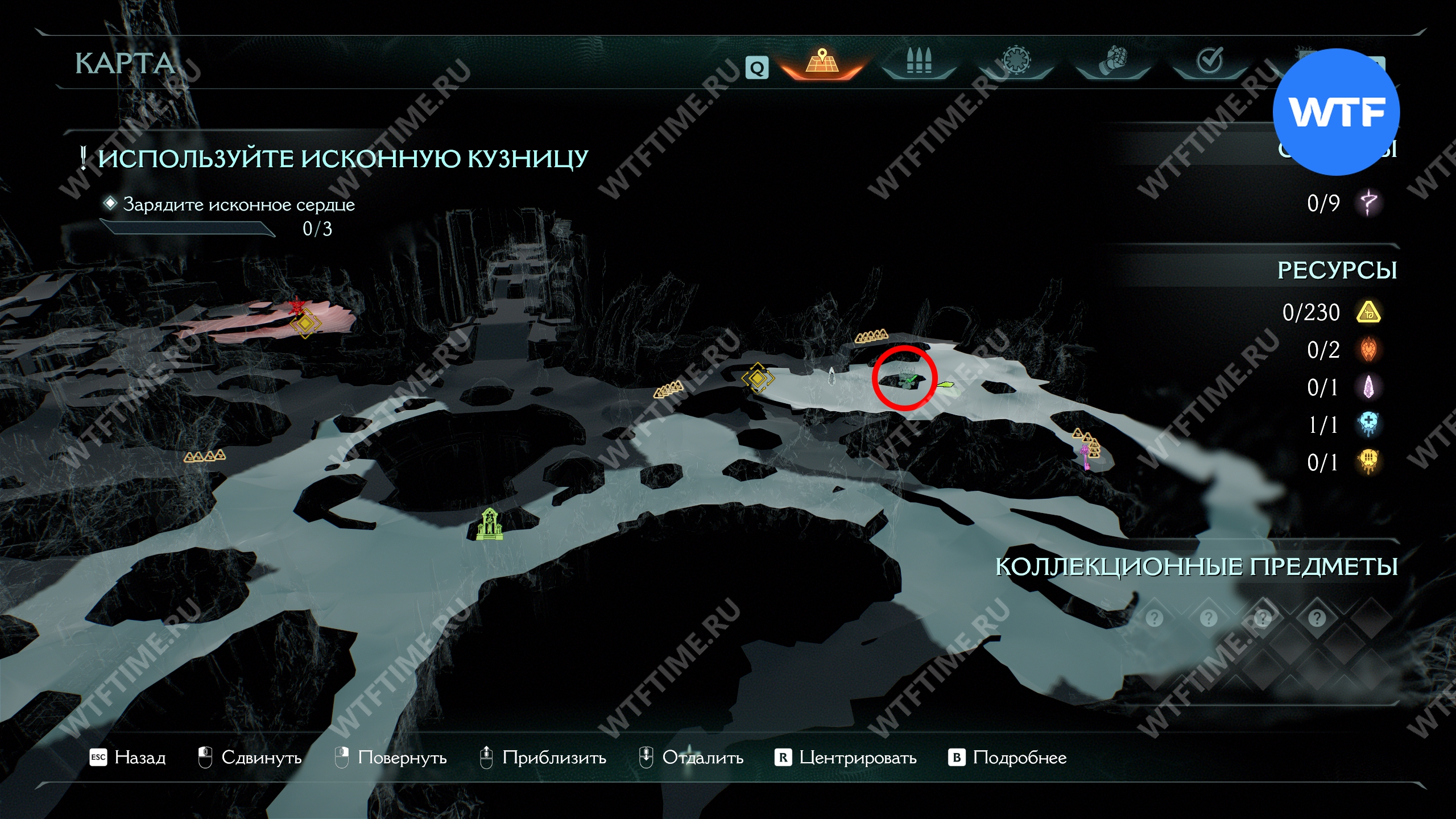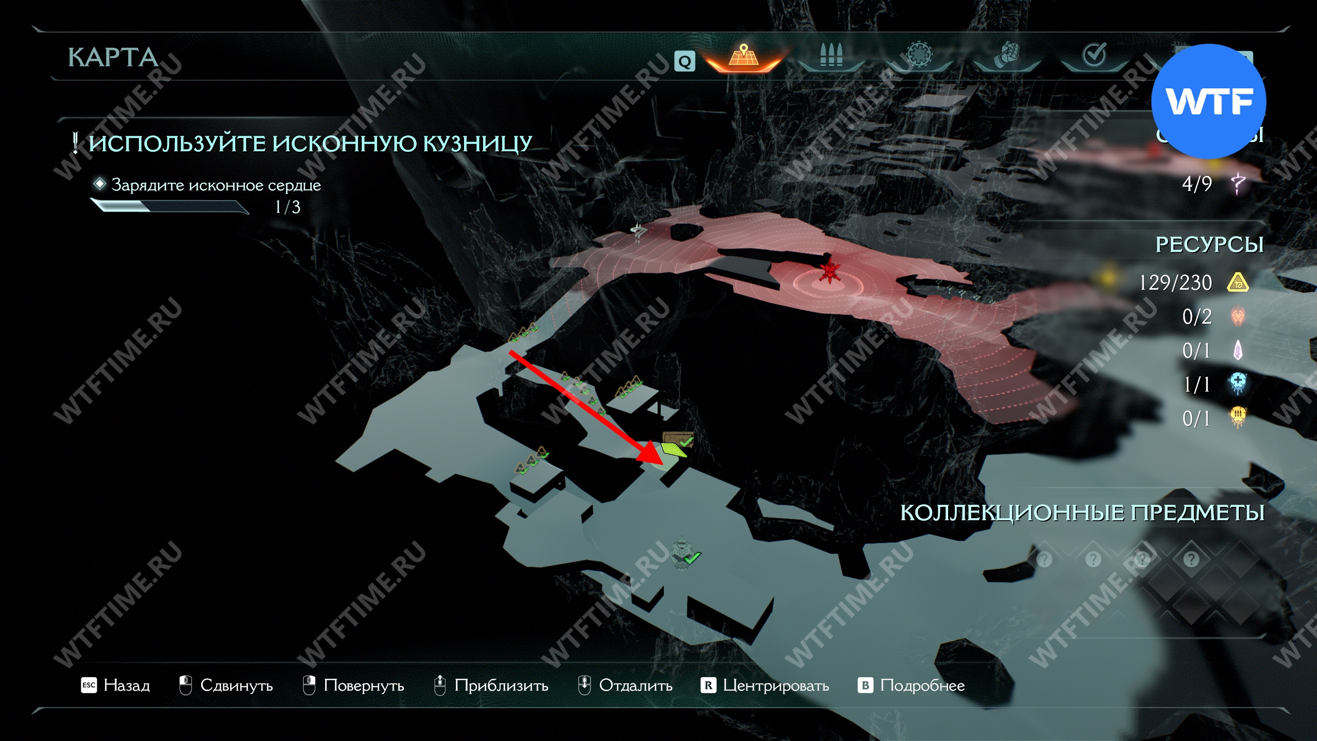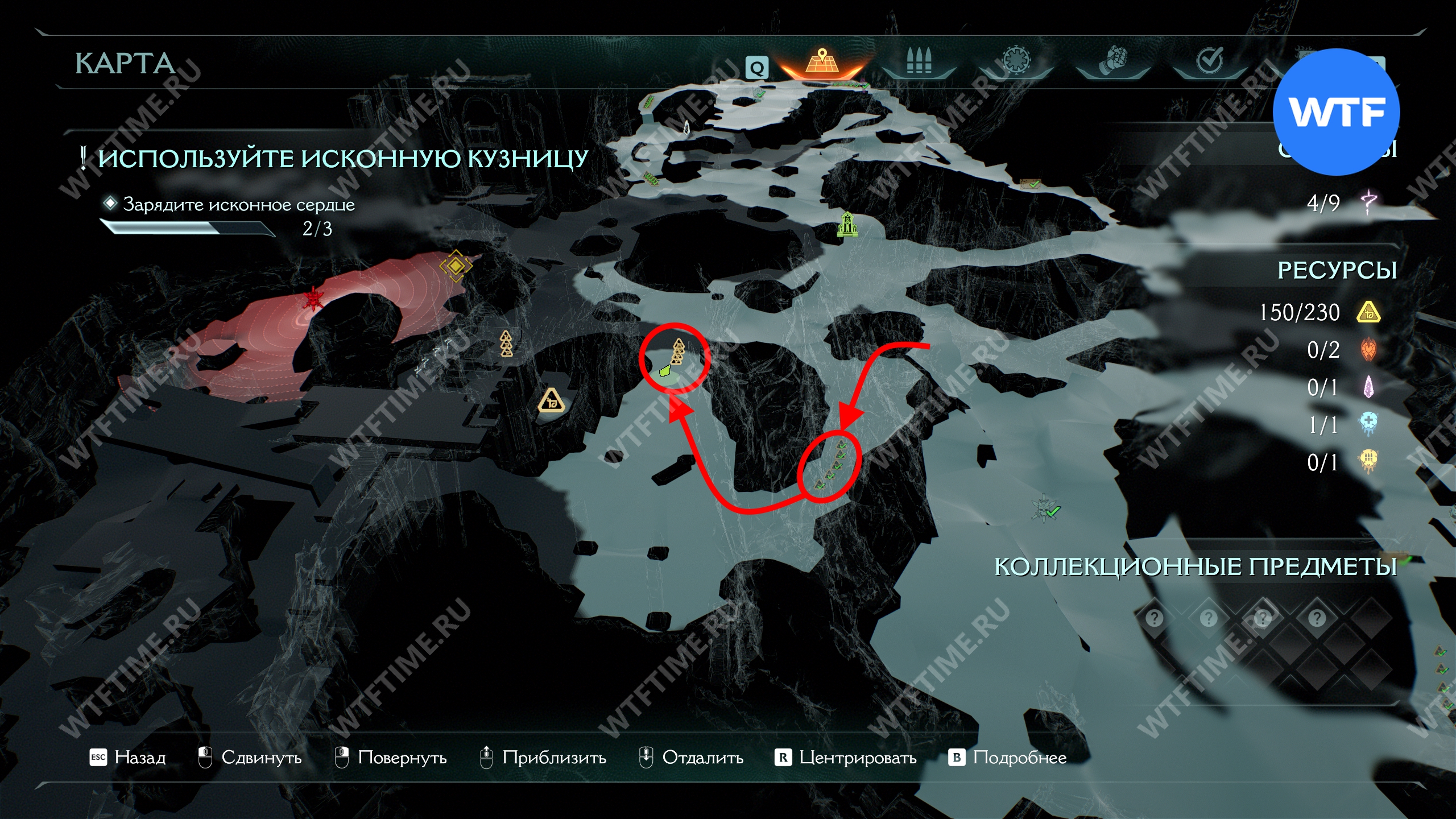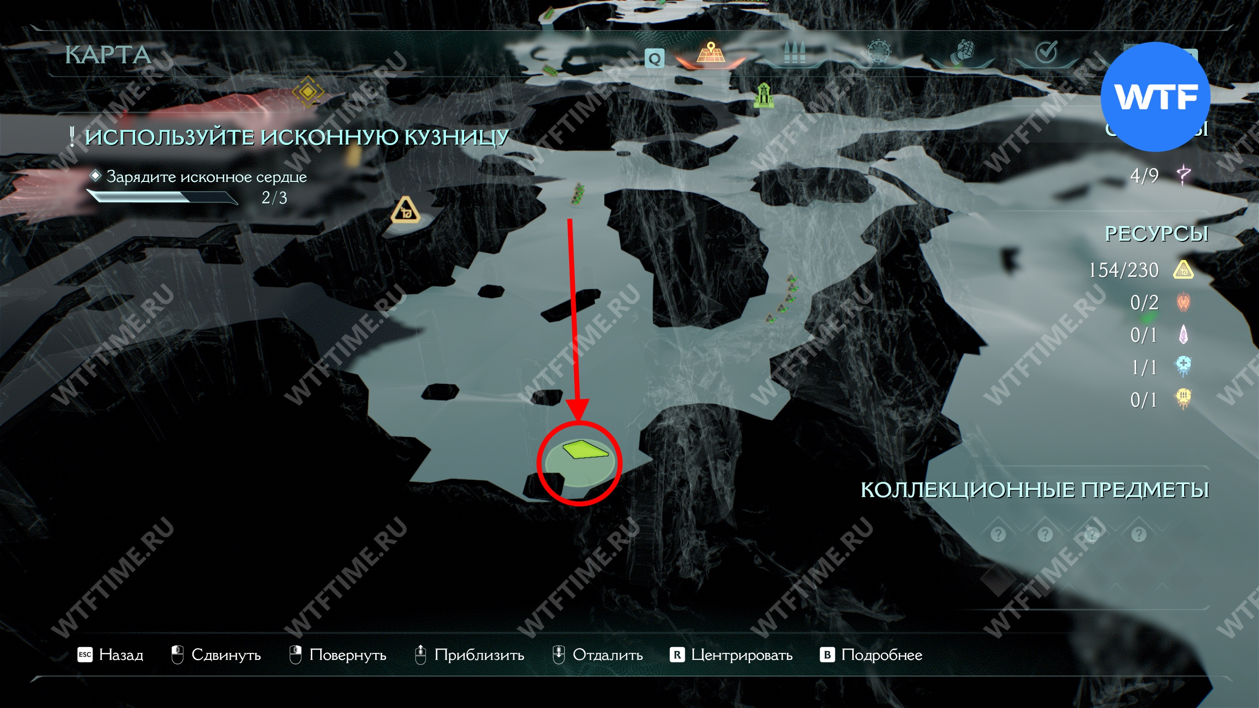 На карте ниже также пронумерованы области для зарядки исконного сердца в том порядке, в котором мы будем посещать их в гайде ниже.