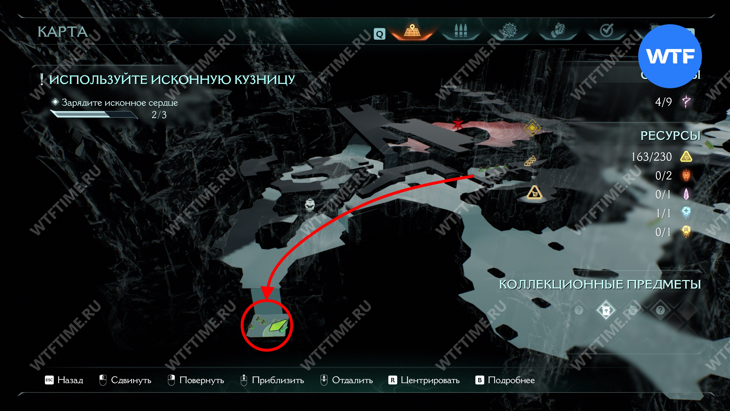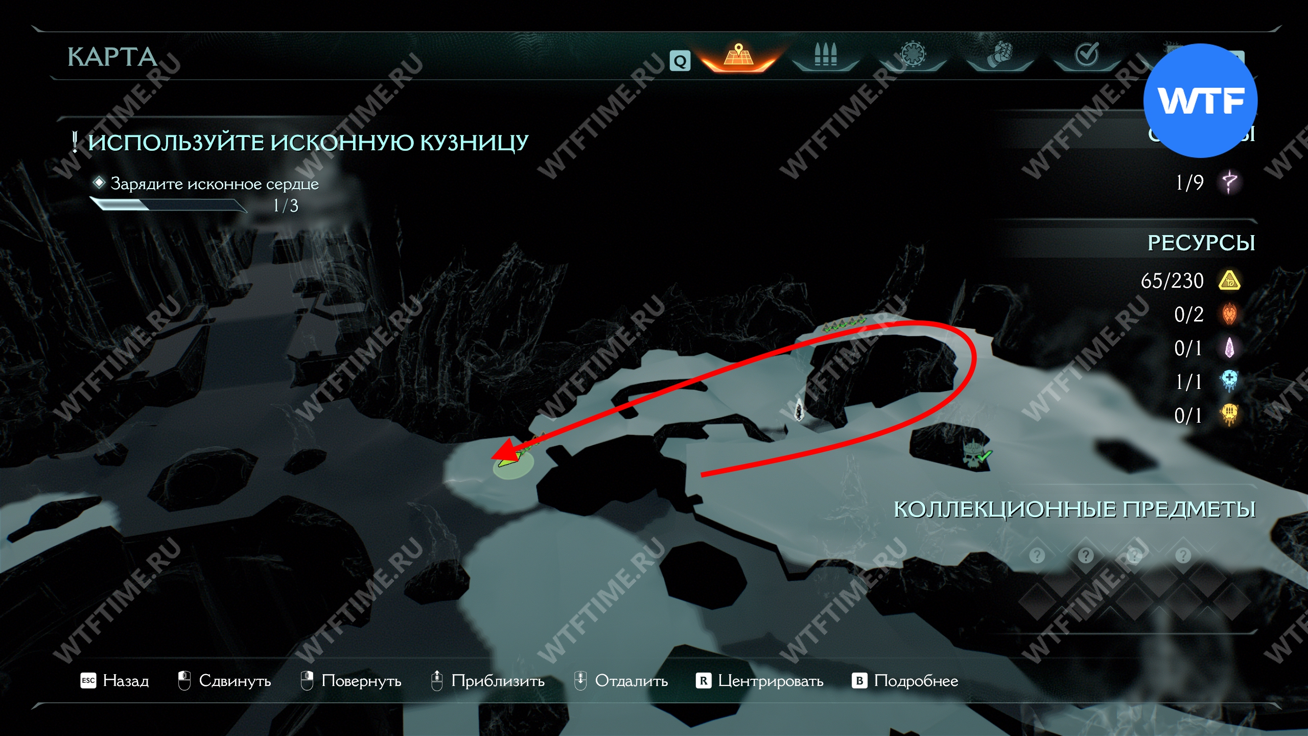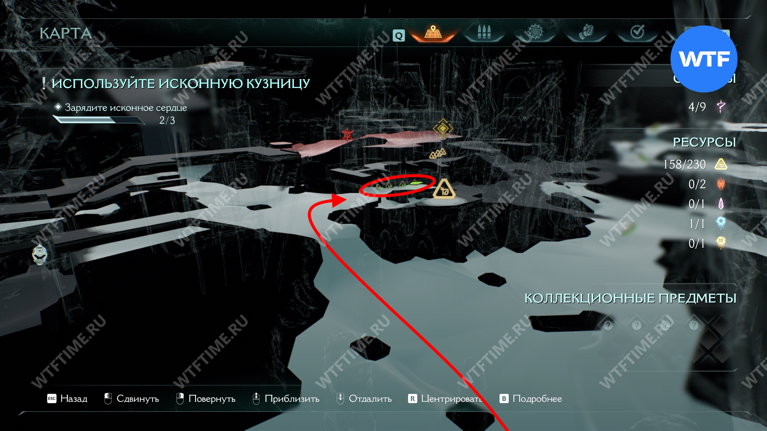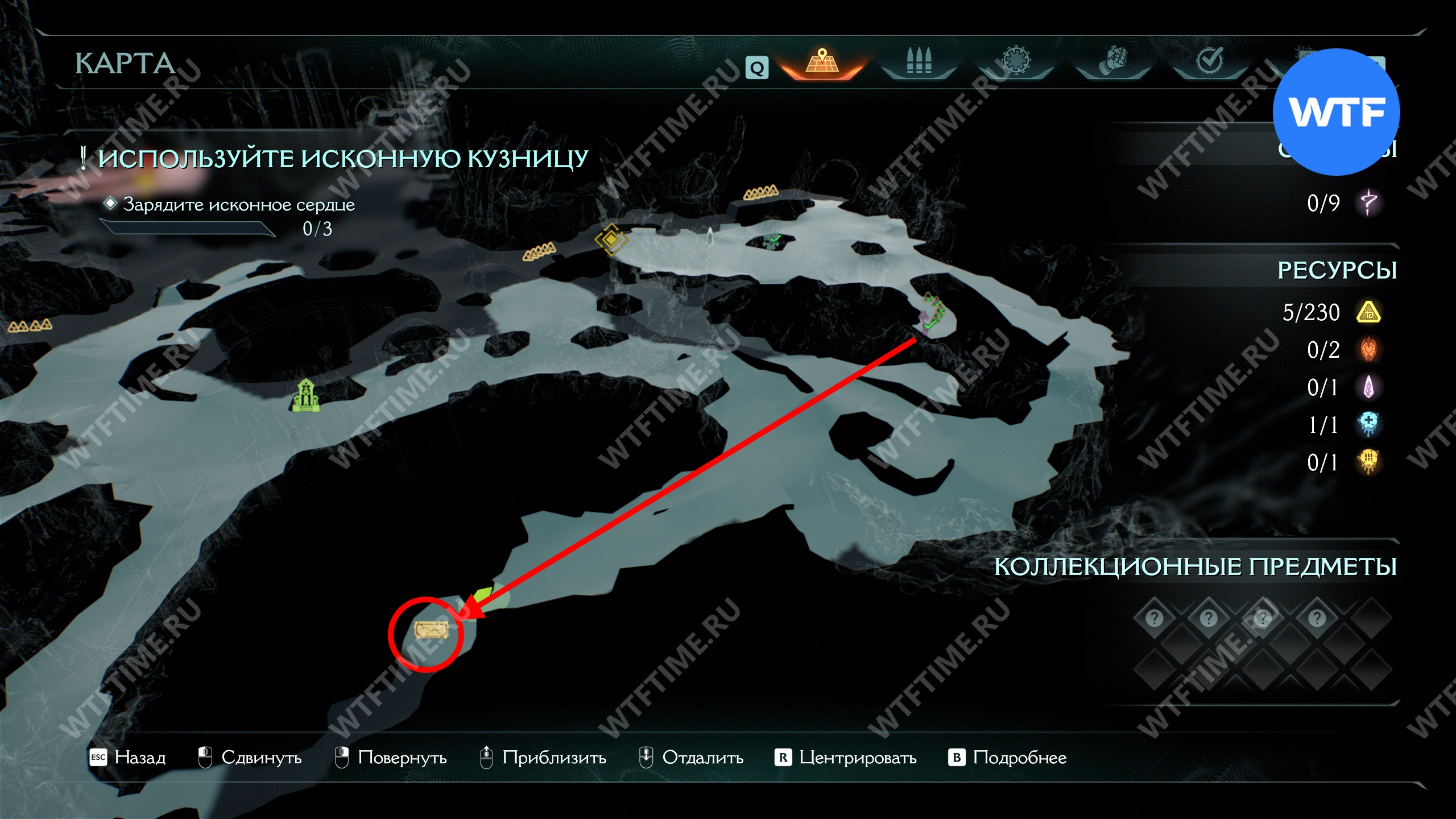 На карте ниже также пронумерованы области для зарядки исконного сердца в том порядке, в котором мы будем посещать их в гайде ниже.