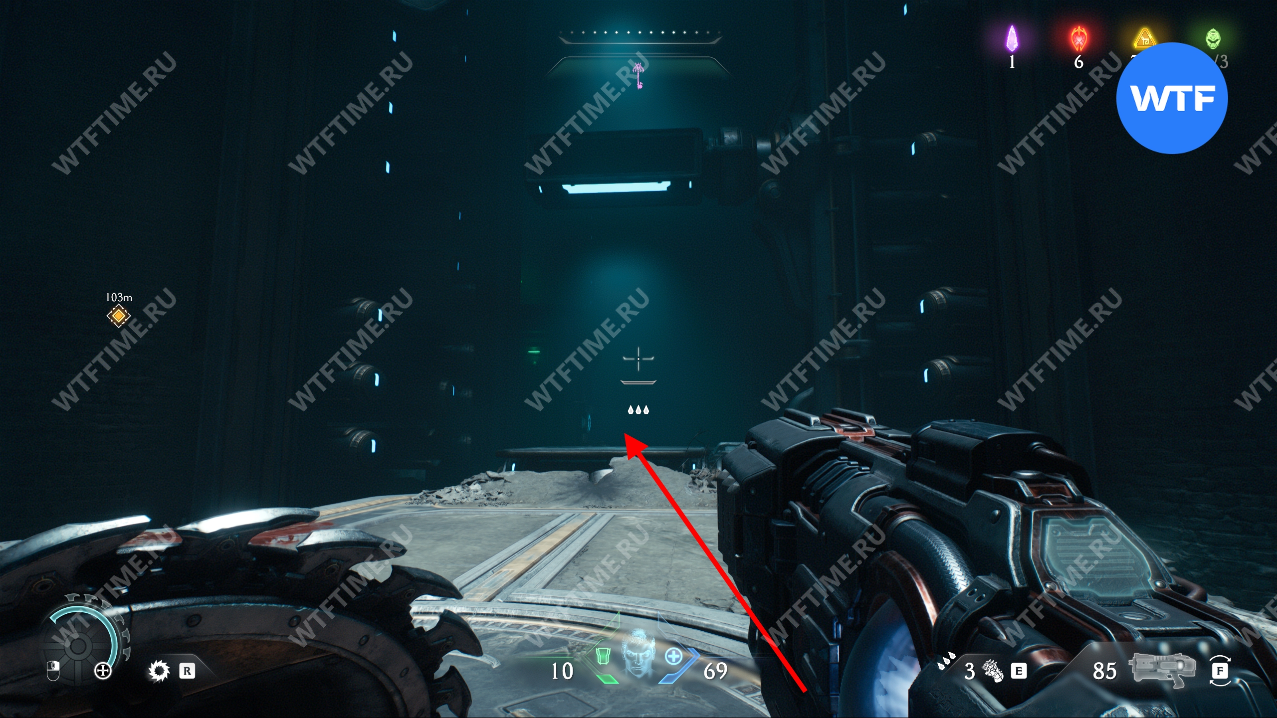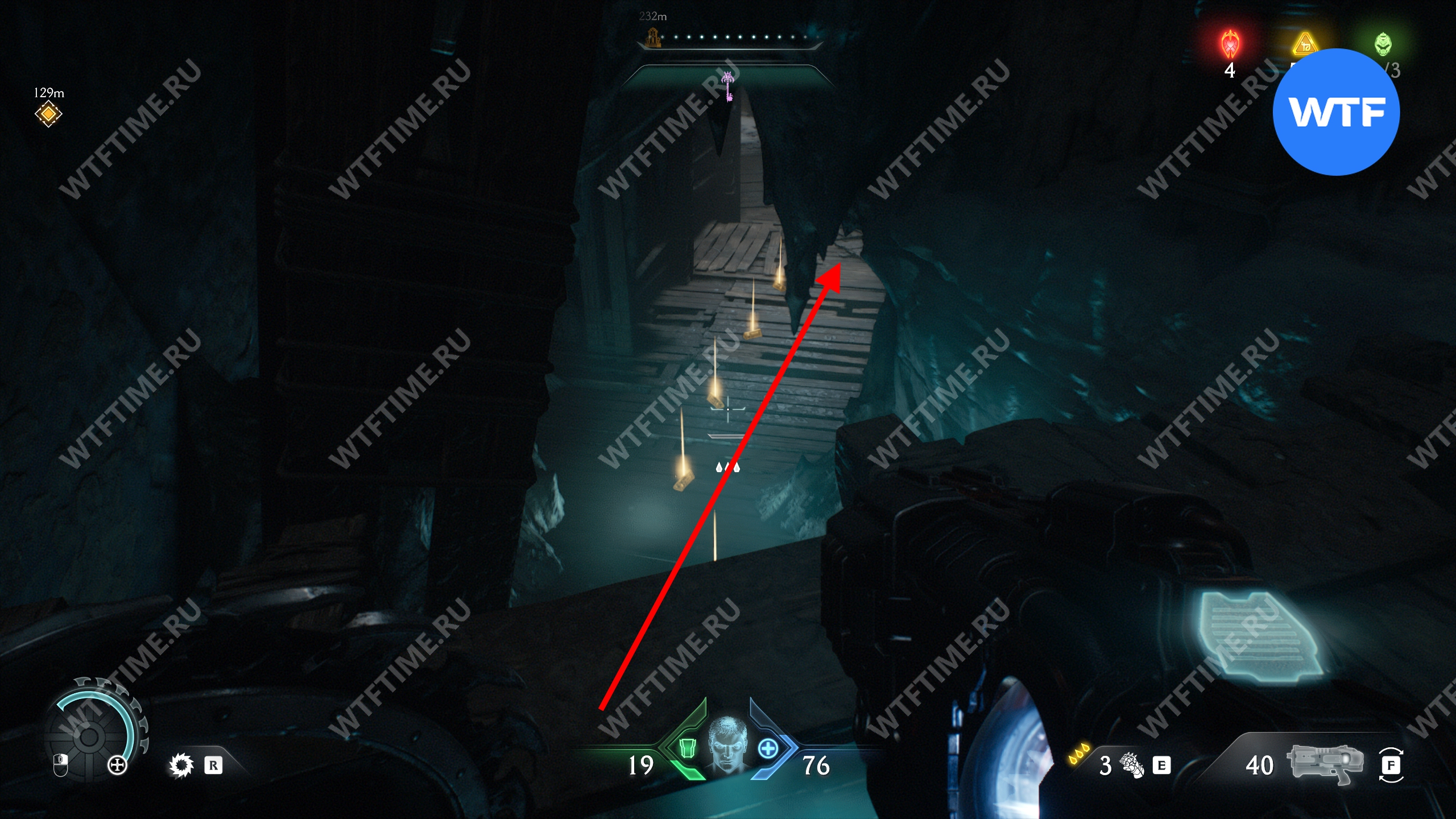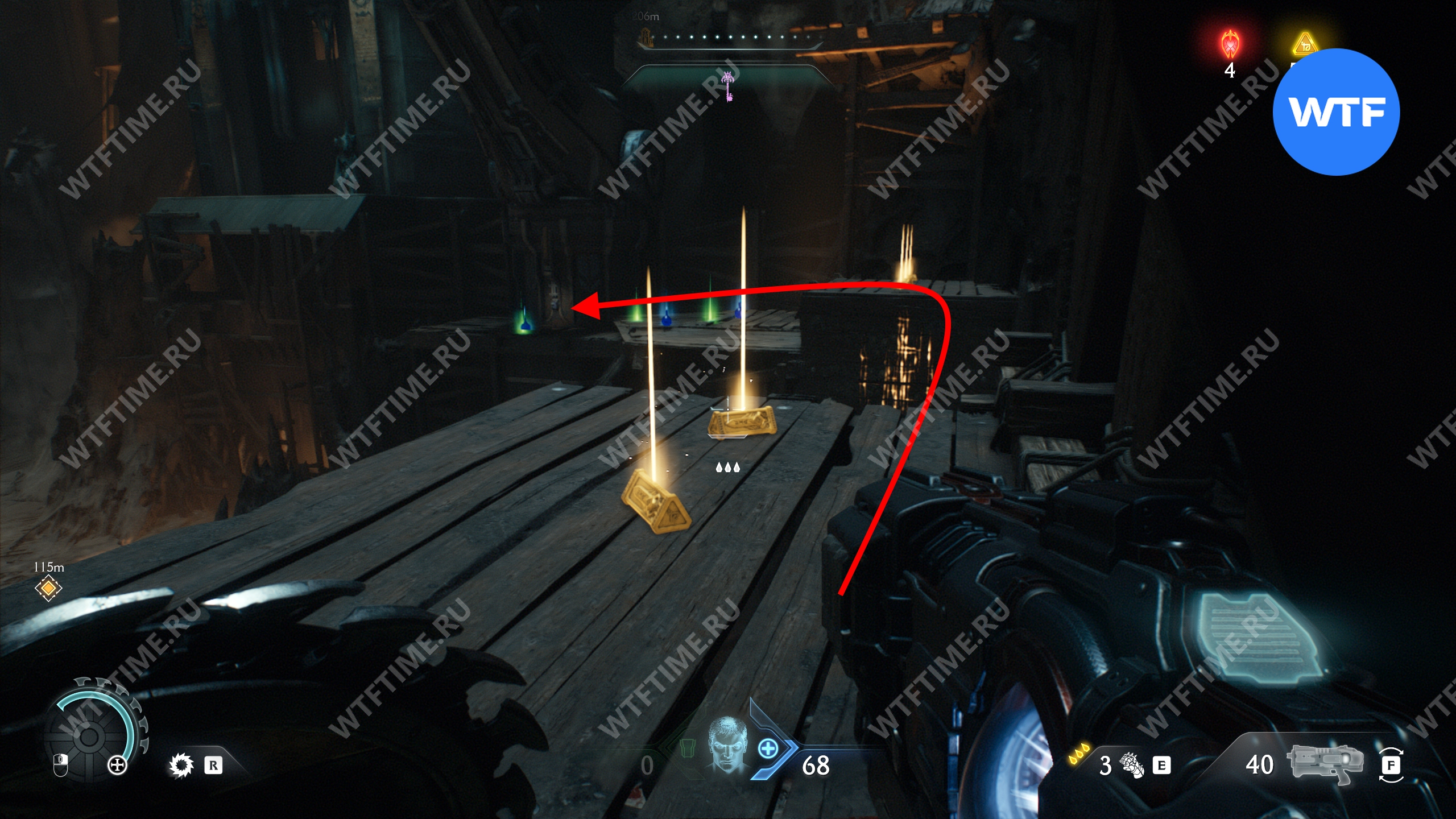 После того, как вы зарядите исконное сердце в третий раз, пройдите немного вправо и сможете допрыгнуть до мостика с золотыми слитками, ведущего к фиолетовой двери.