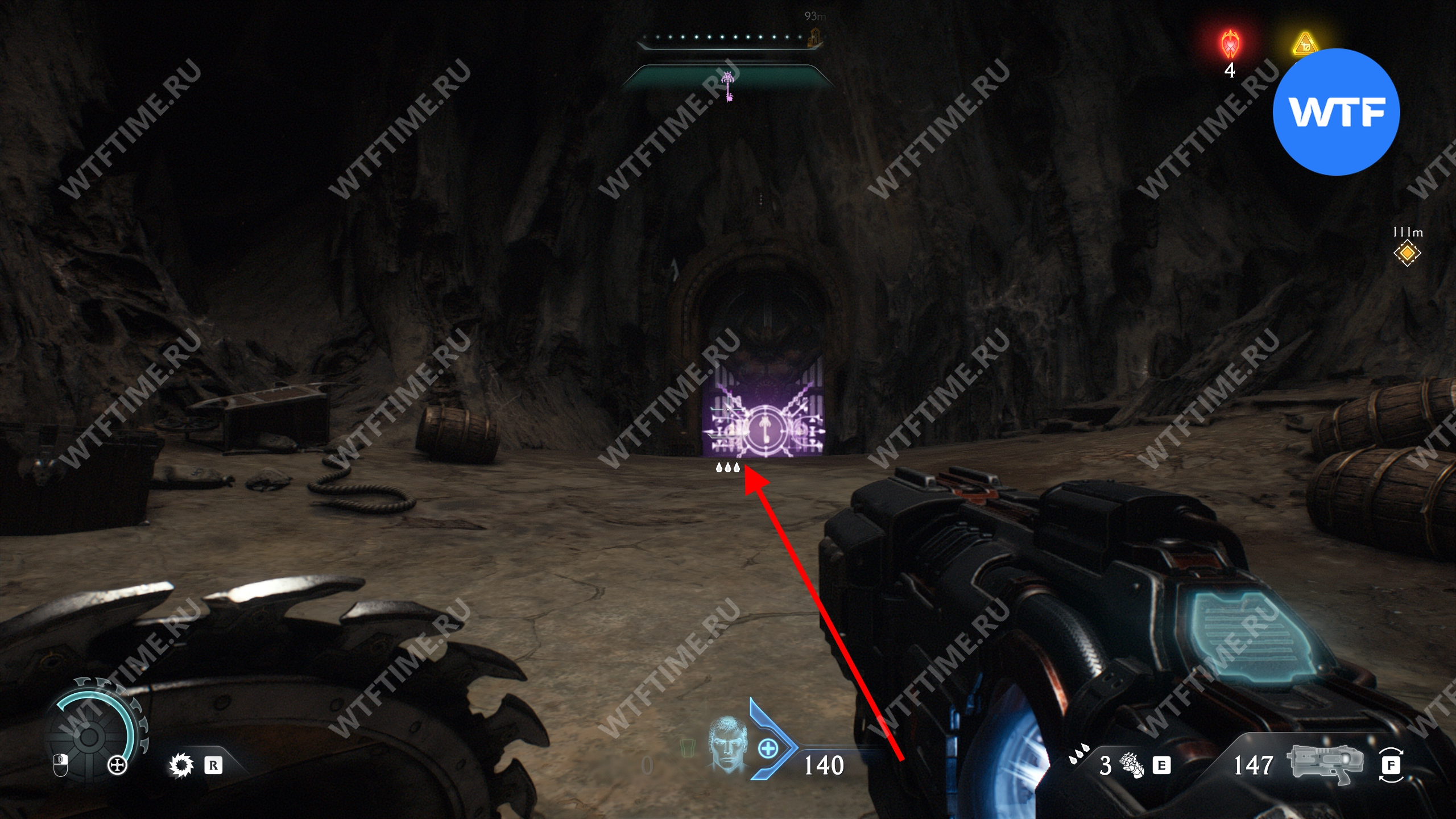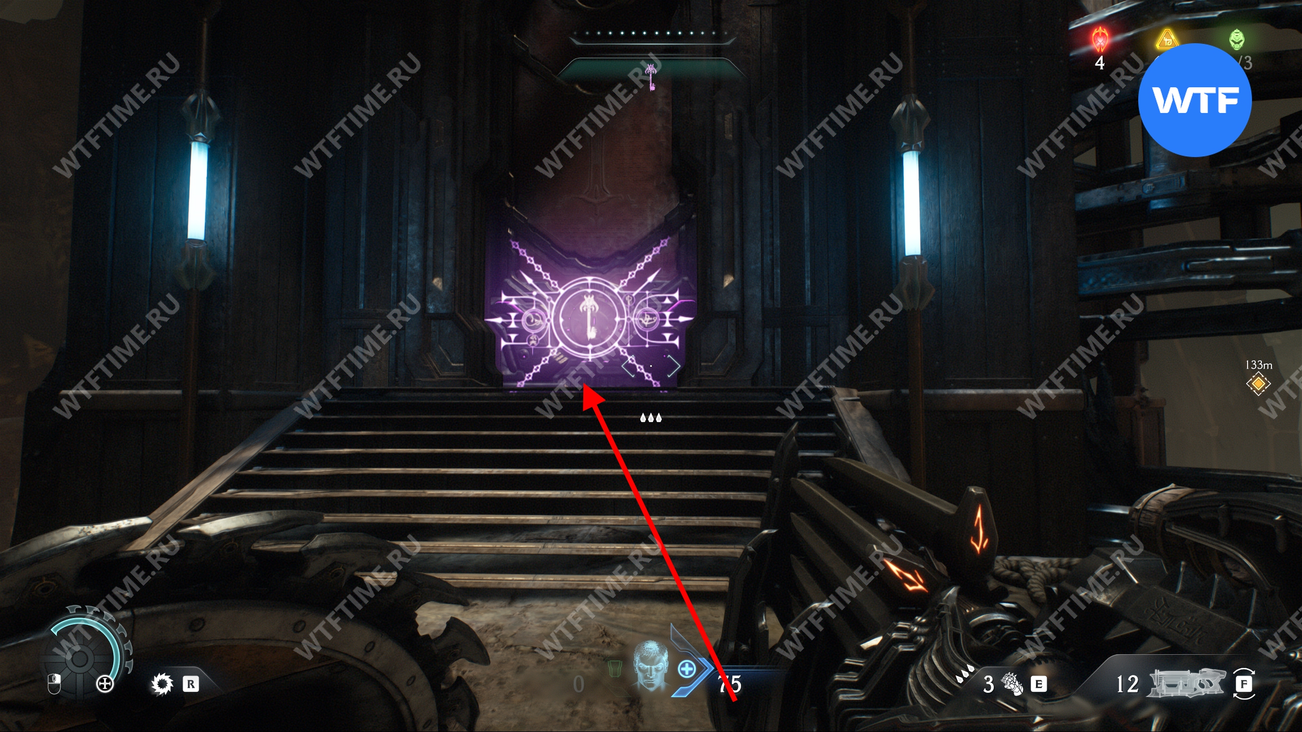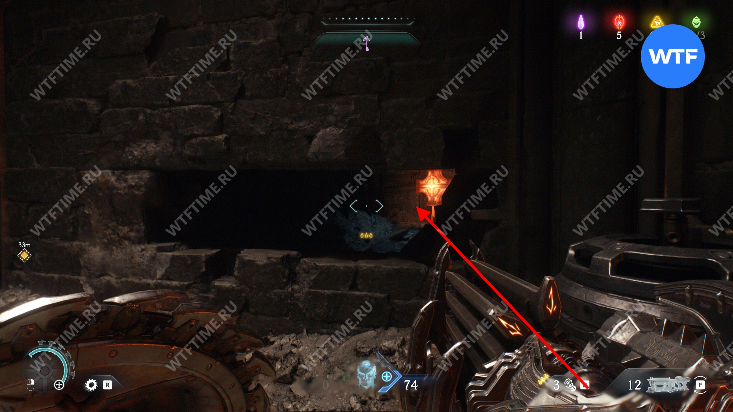 От Святилища бегите обратно на юг и откройте фиолетовые двери, мимо которых мы проходили в самом начале главы. За ними вы найдете секретную область, внутри которой спрятана статуя волка. Сломайте её при помощи своего щита.