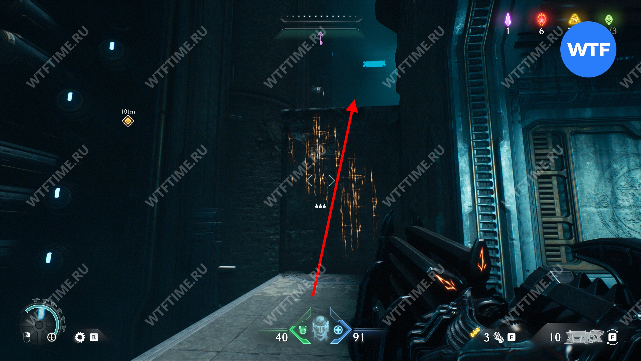 Спуститесь на лифте в исконную кузницу, а затем бегите вперед до входа в тоннель. Слева от него есть разрушаемая стена. Разбейте её, а затем киньте щит в цепь через дыру в стене, чтобы добраться до рубина.