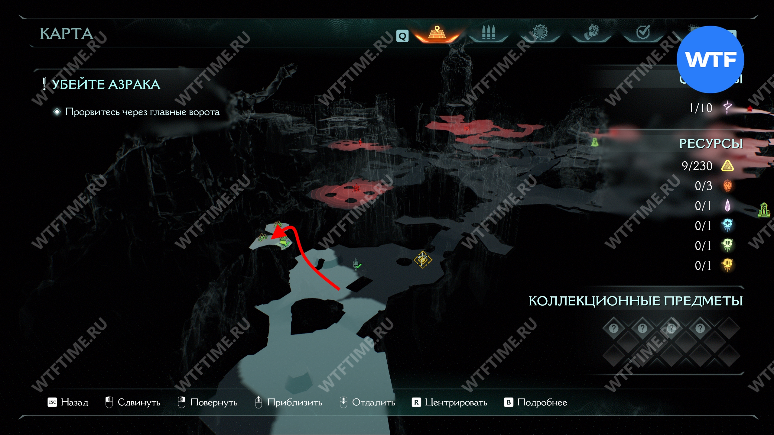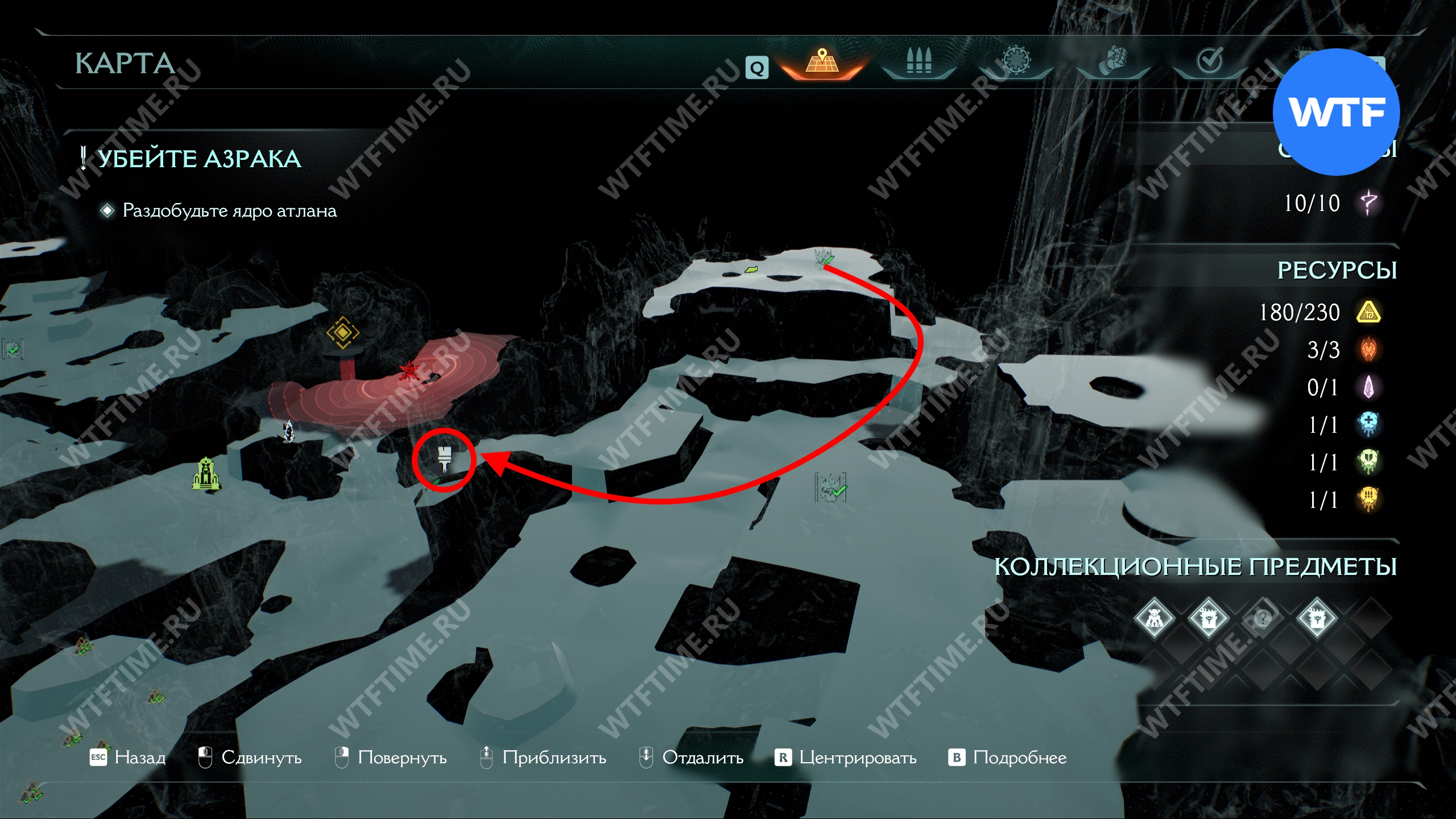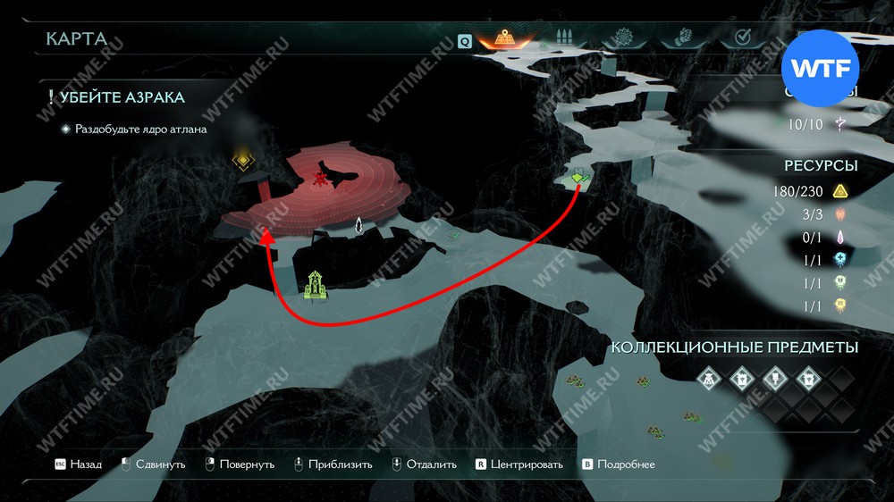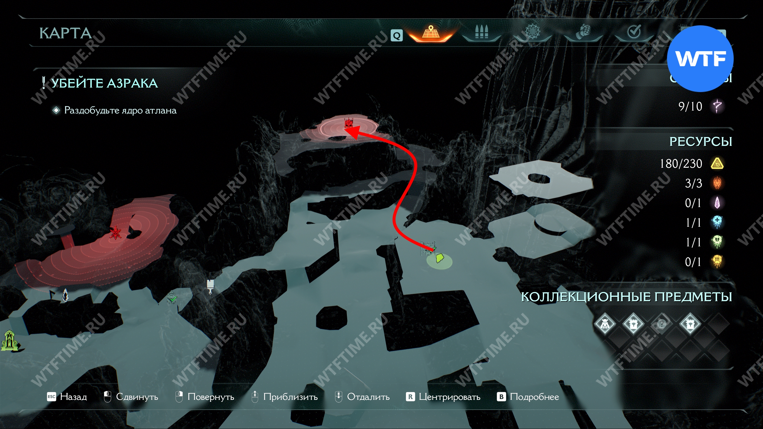 Спрыгните вниз с предыдущего уступа и вернитесь к первому Святилищу. Теперь проход в красную зону за ним будет открыт. Зачистите её от врагов и заберите ядро атлана, после чего барьер вокруг призрачного камня будет снят.