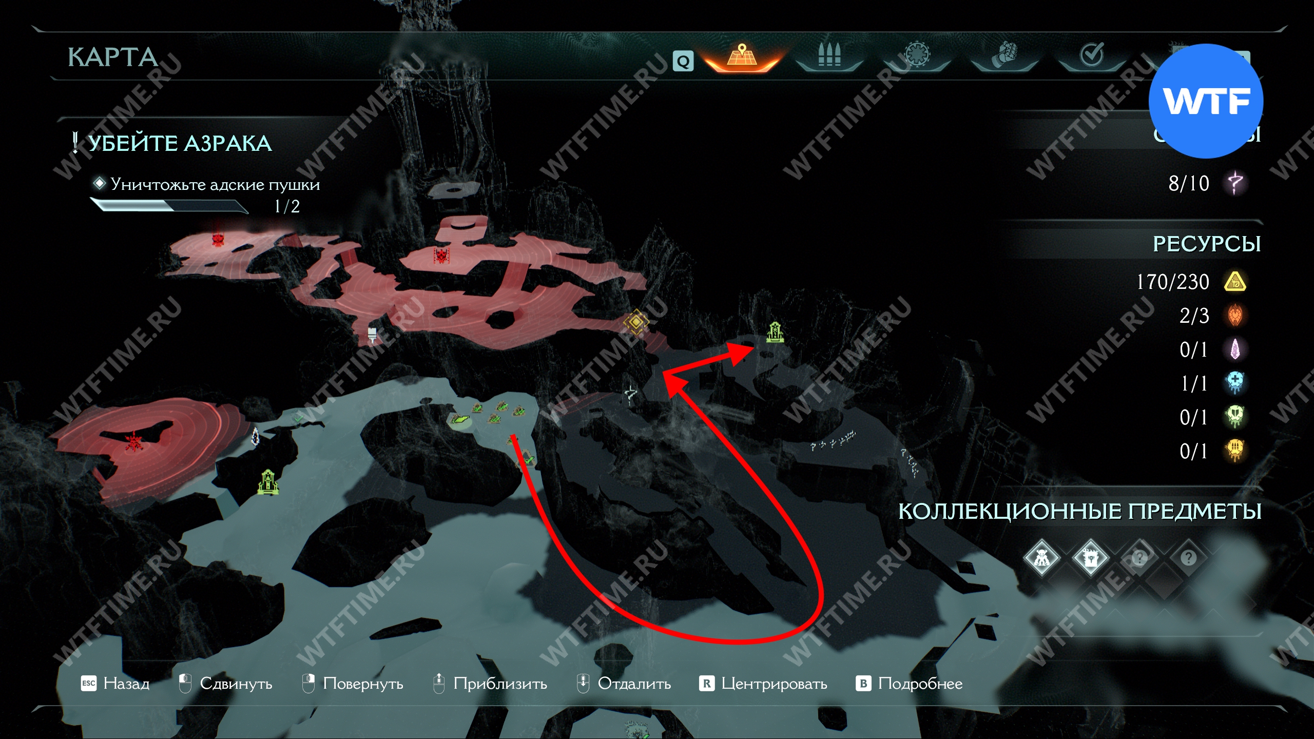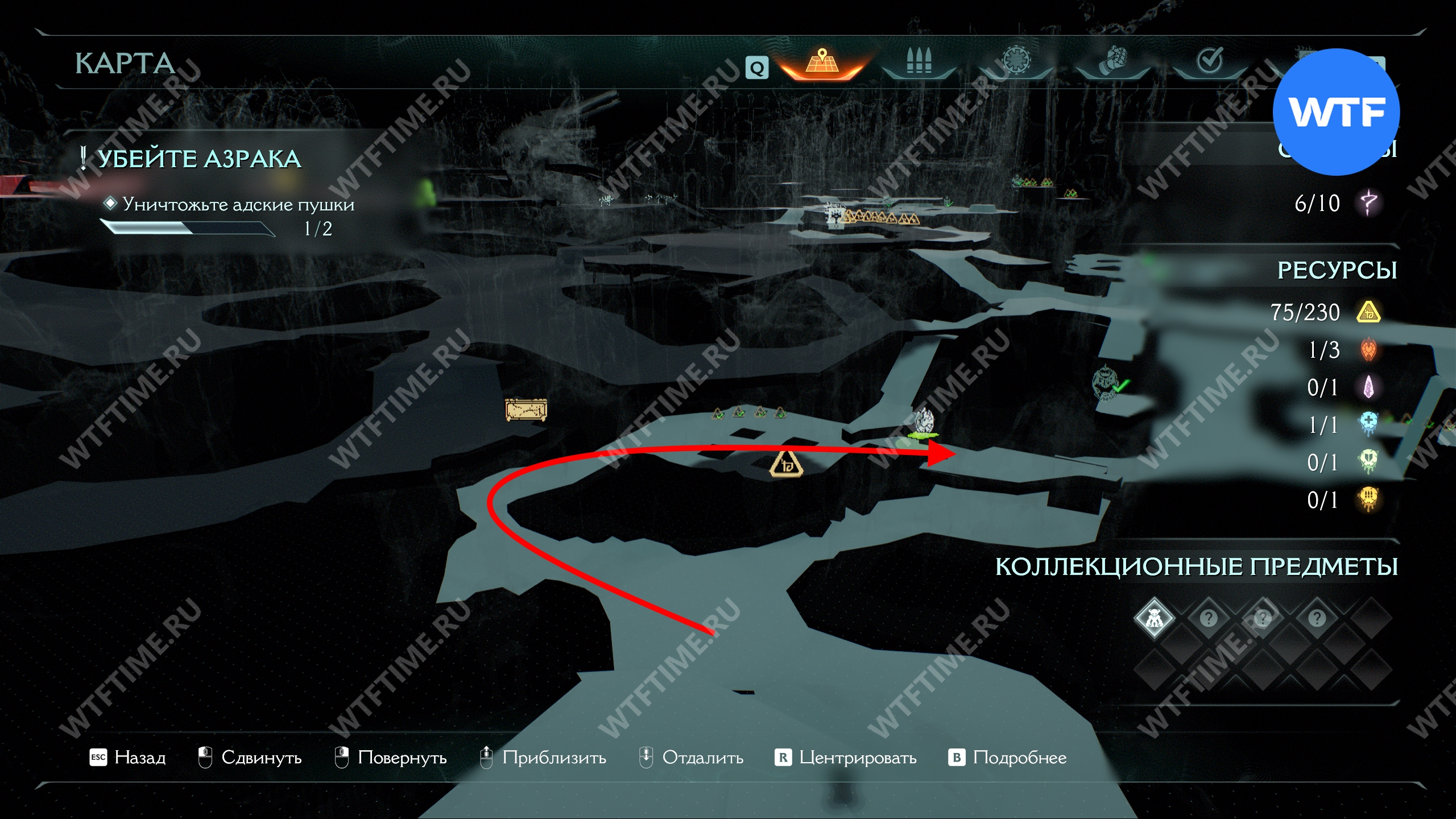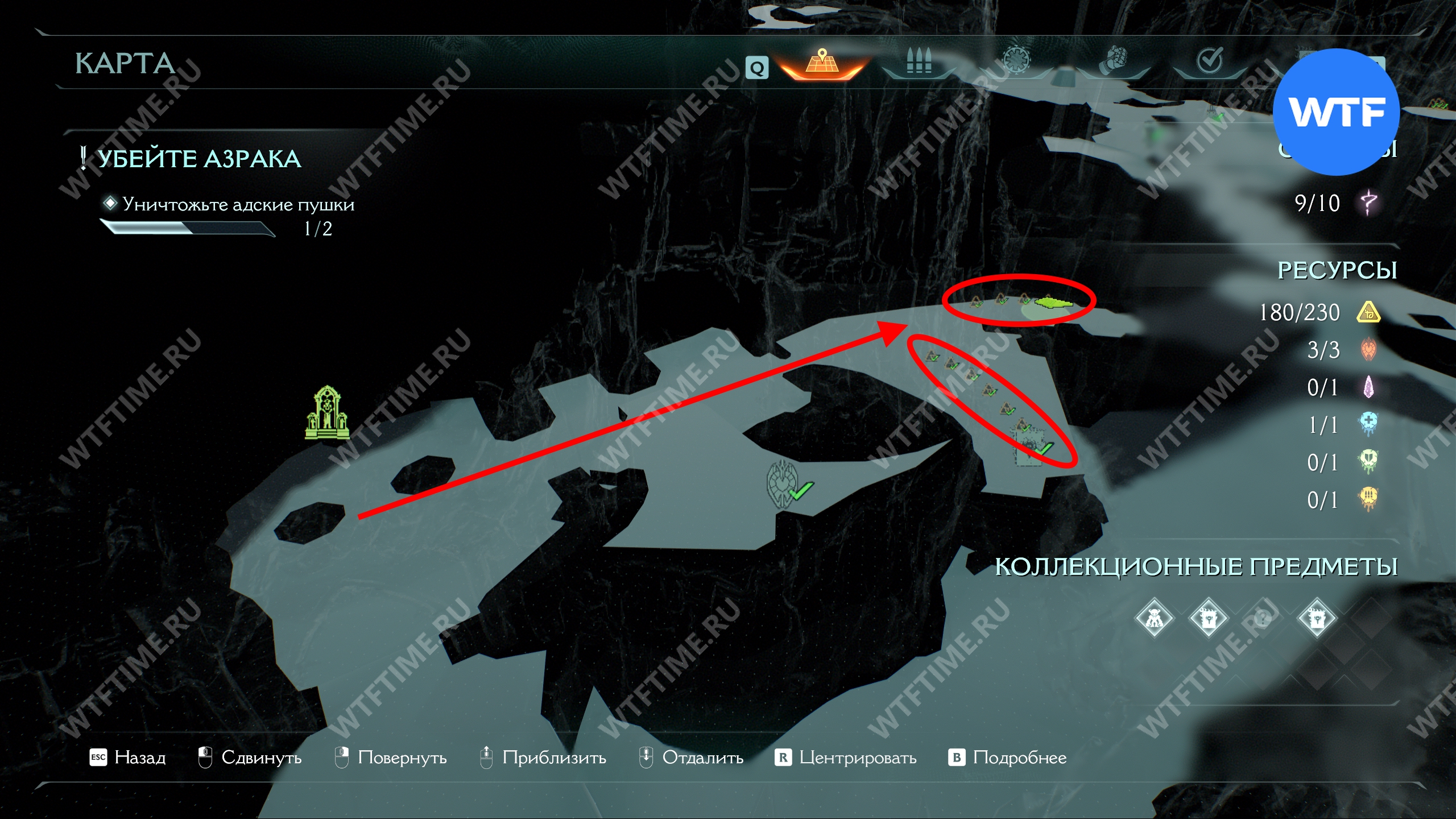 Спрыгните вниз с предыдущего уступа и вернитесь к первому Святилищу. Теперь проход в красную зону за ним будет открыт. Зачистите её от врагов и заберите ядро атлана, после чего барьер вокруг призрачного камня будет снят.