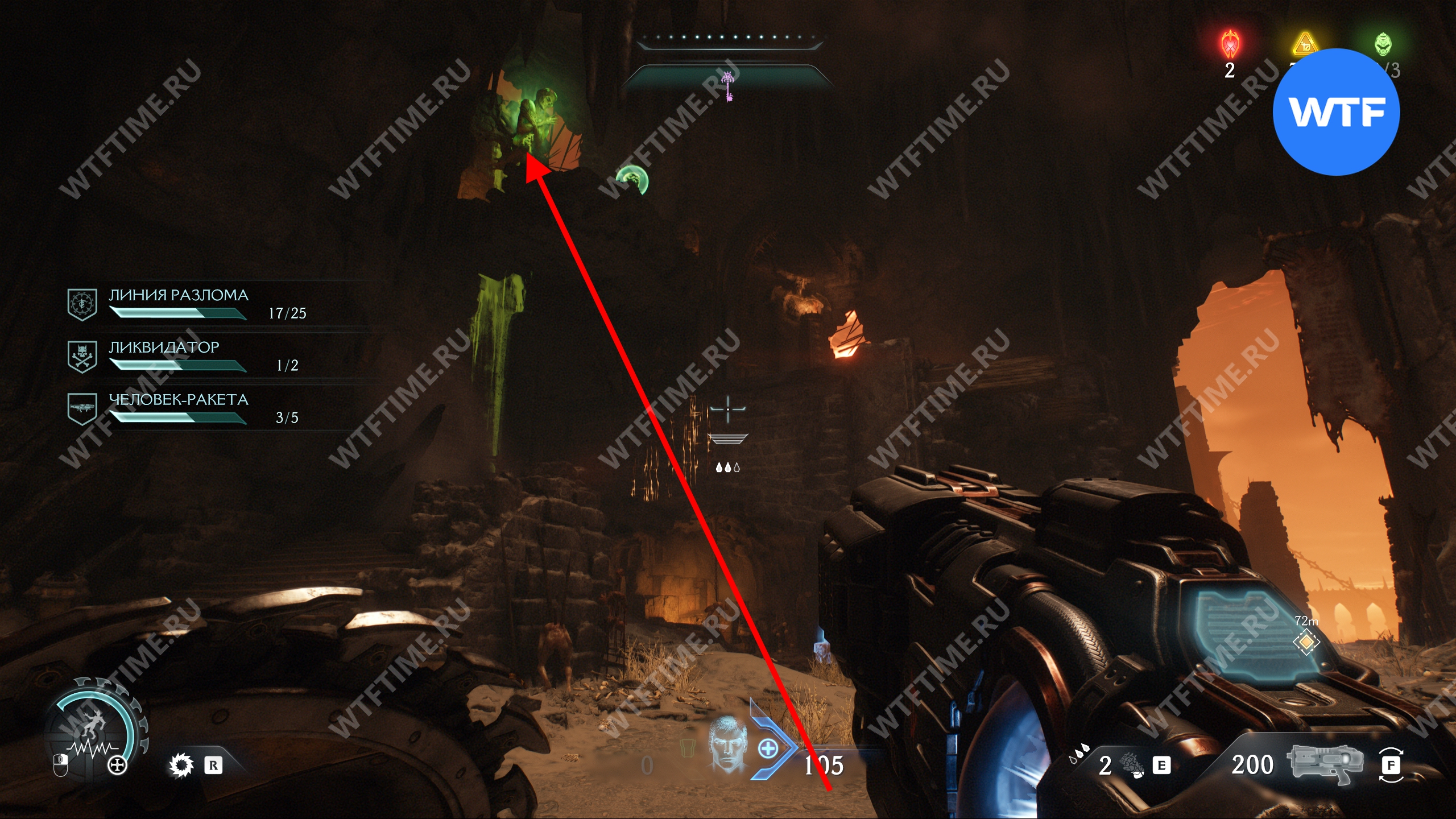 Доберитесь до места, где вы получаете ракетомет по сюжету. Затем проверьте левую сторону этой площадки, чтобы найти зеленый сгусток, к которому можно подтянуться при помощи щита.