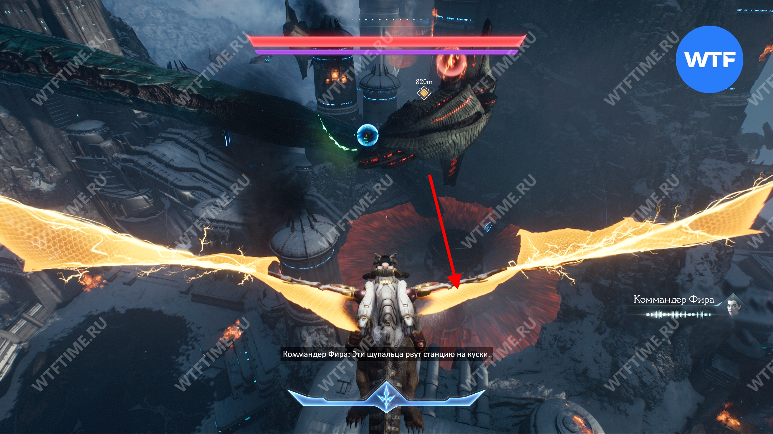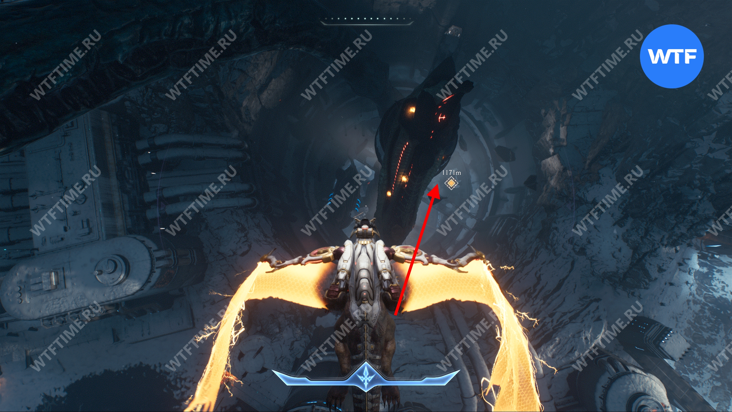 Закрыв первый демонический портал и снова сев на дракона, вы увидите еще один истребитель. Он проводит вас к следующему щупальцу. Если вы уже прошли испытание, то можете просто лететь следом.