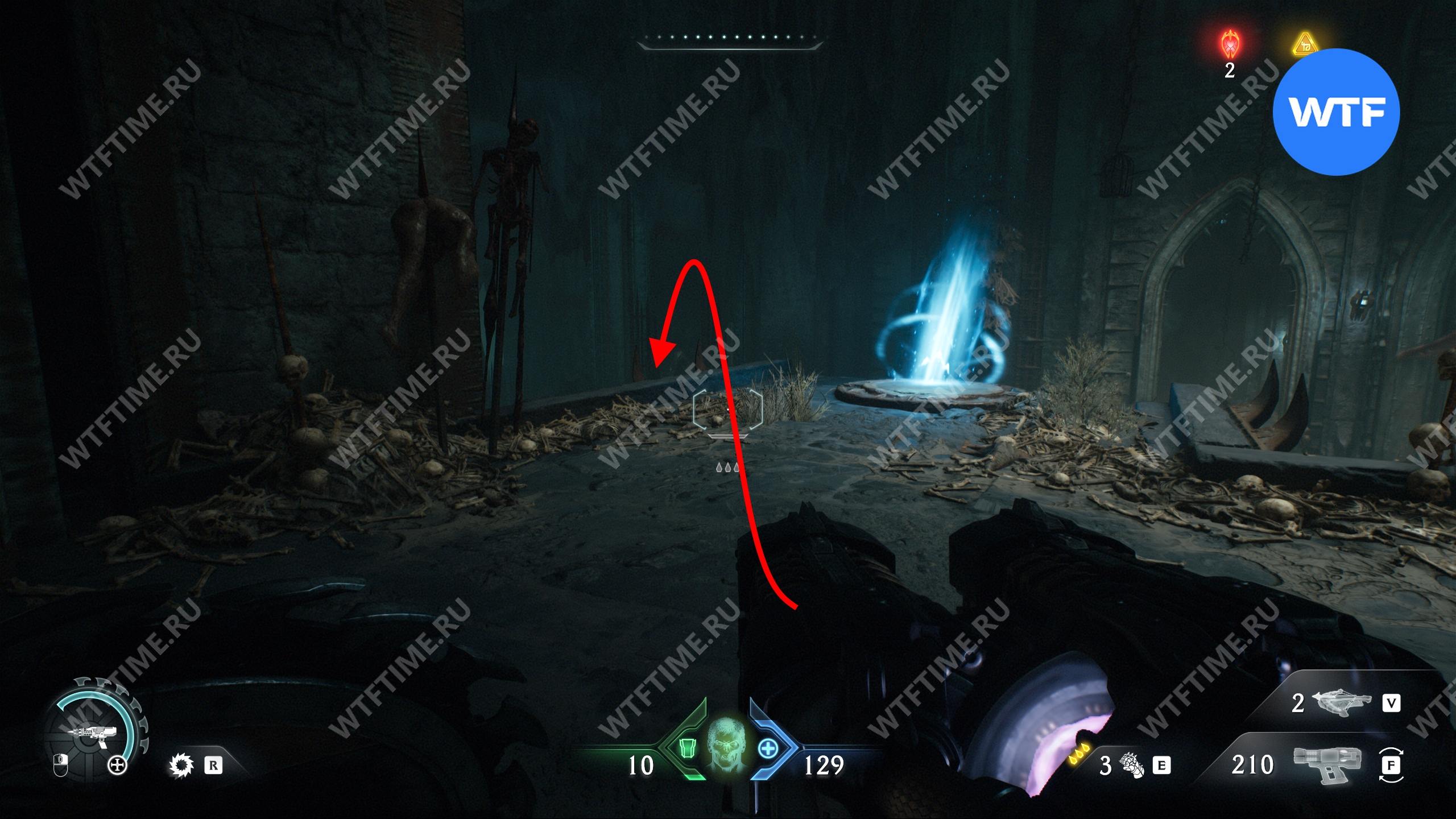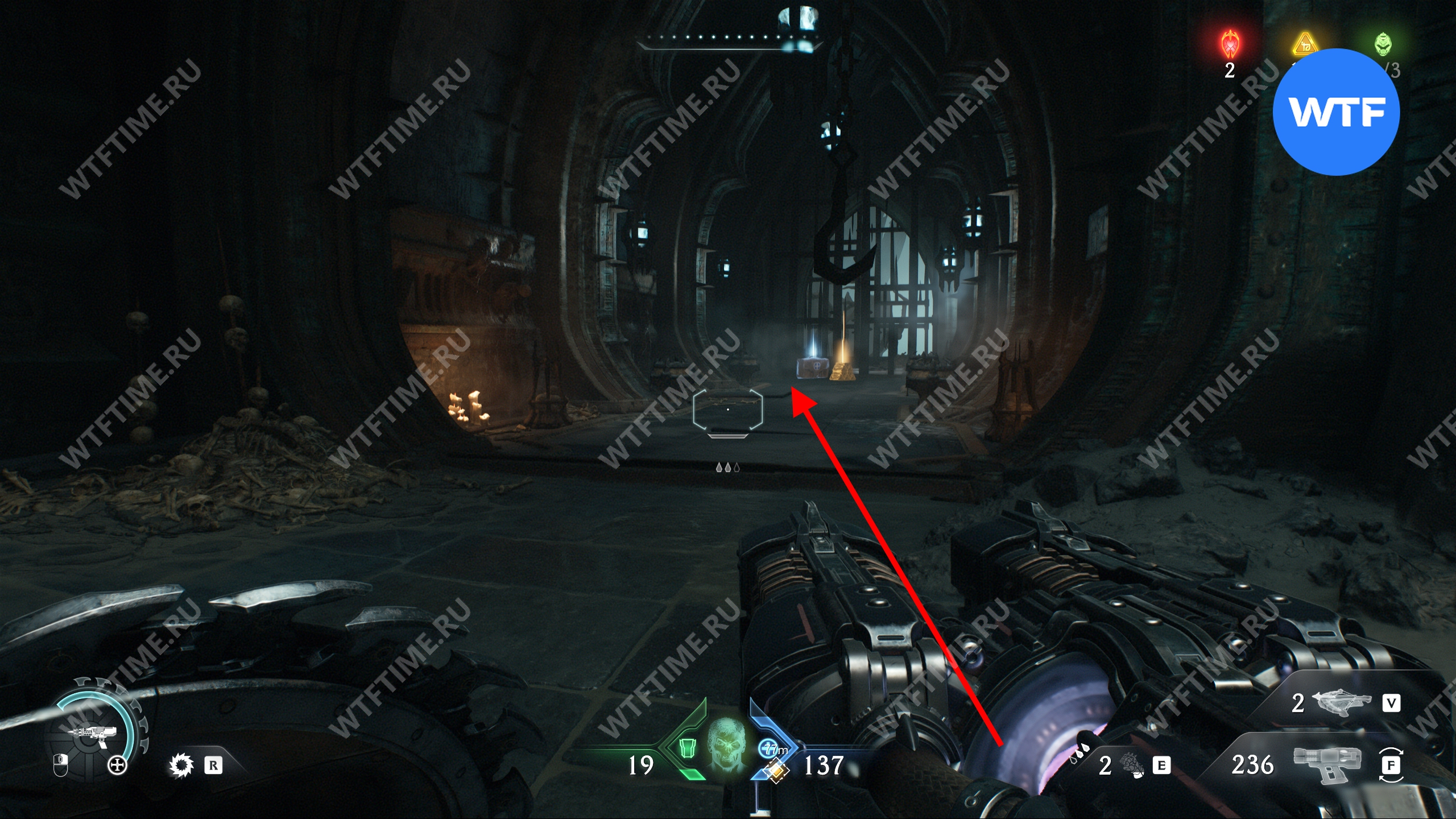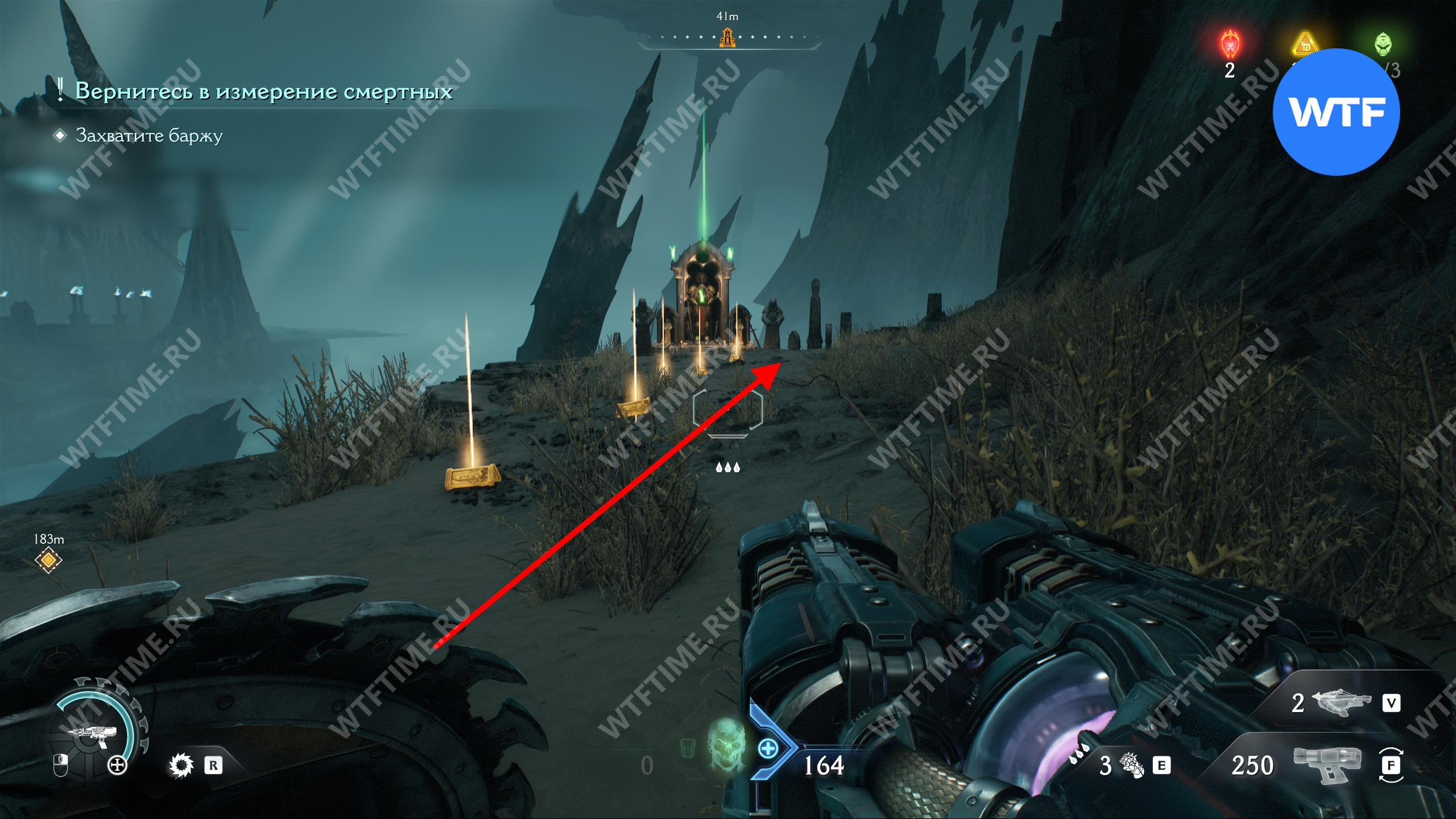 Продолжайте двигаться по сюжету, пока не пройдете через большой красный портал, который перенесет вас на баржу. После этого идите вперед и разделайтесь с главарем в ближайшей стычке, чтобы получить демоническую сущность, увеличивающую максимум черепов.