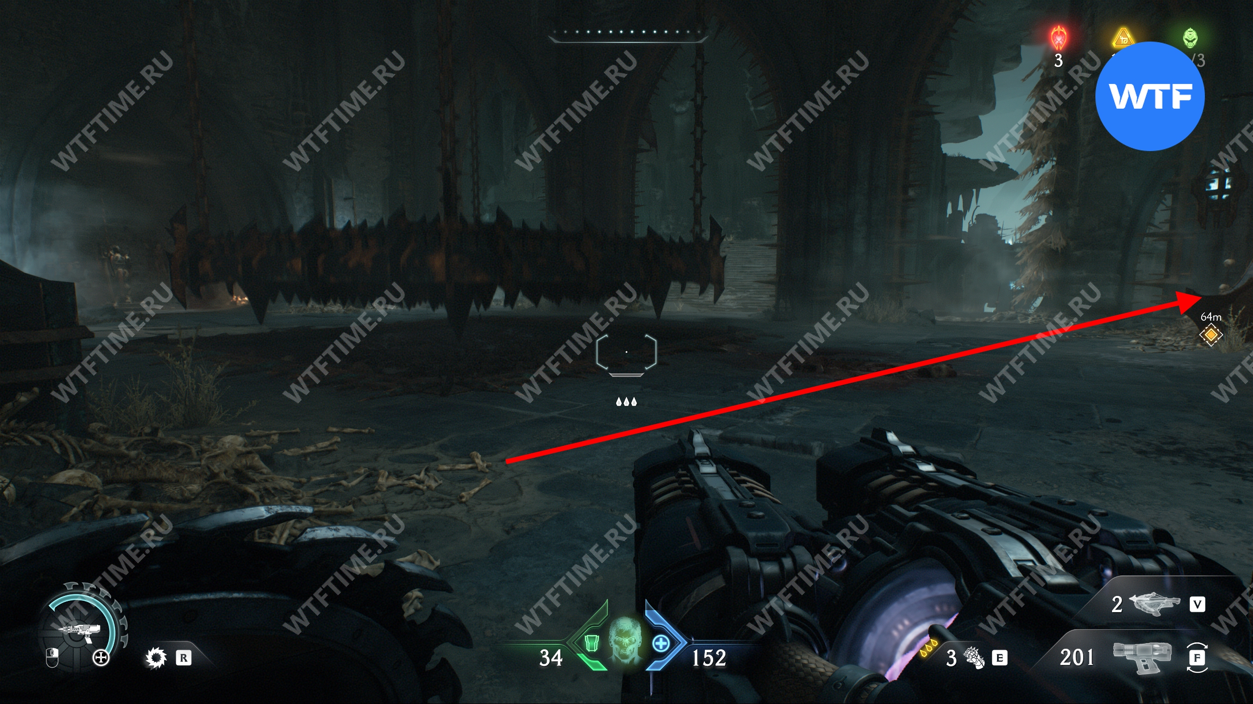 Продолжайте двигаться за квестовой меткой и очень скоро вы войдете в длинный коридор, где ваш путь снова преградят металлические шипы. После выхода из этого коридора вам нужно дважды свернуть направо, чтобы подобрать золото.