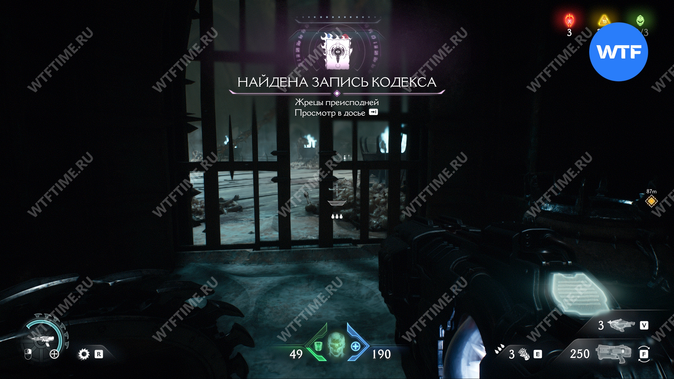 Поднявшись по ящикам наверх к штурвалу, вы увидите запись кодекса «Жрецы преисподней» за решеткой справа от себя. Сделайте небольшой крюк, чтобы добраться до него с обратной стороны.