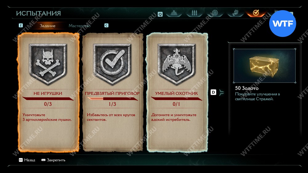 Во время прохождения Воскрешения в Doom The Dark Ages можно выполнить три дополнительных испытания, которые принесут вам 100 золота и облик для оружия «Трепет» в награду: