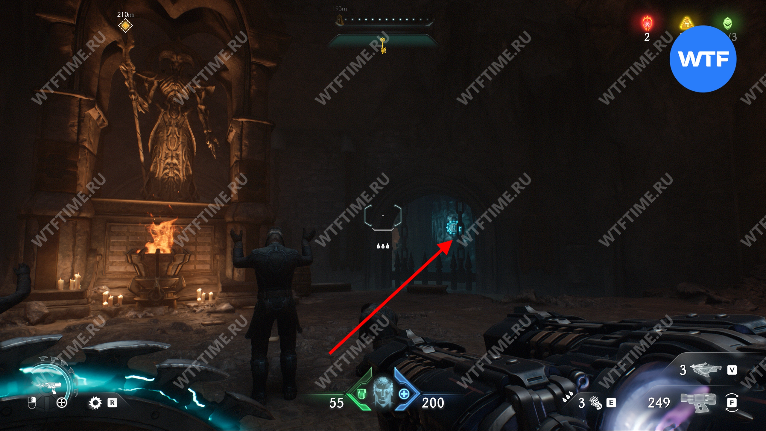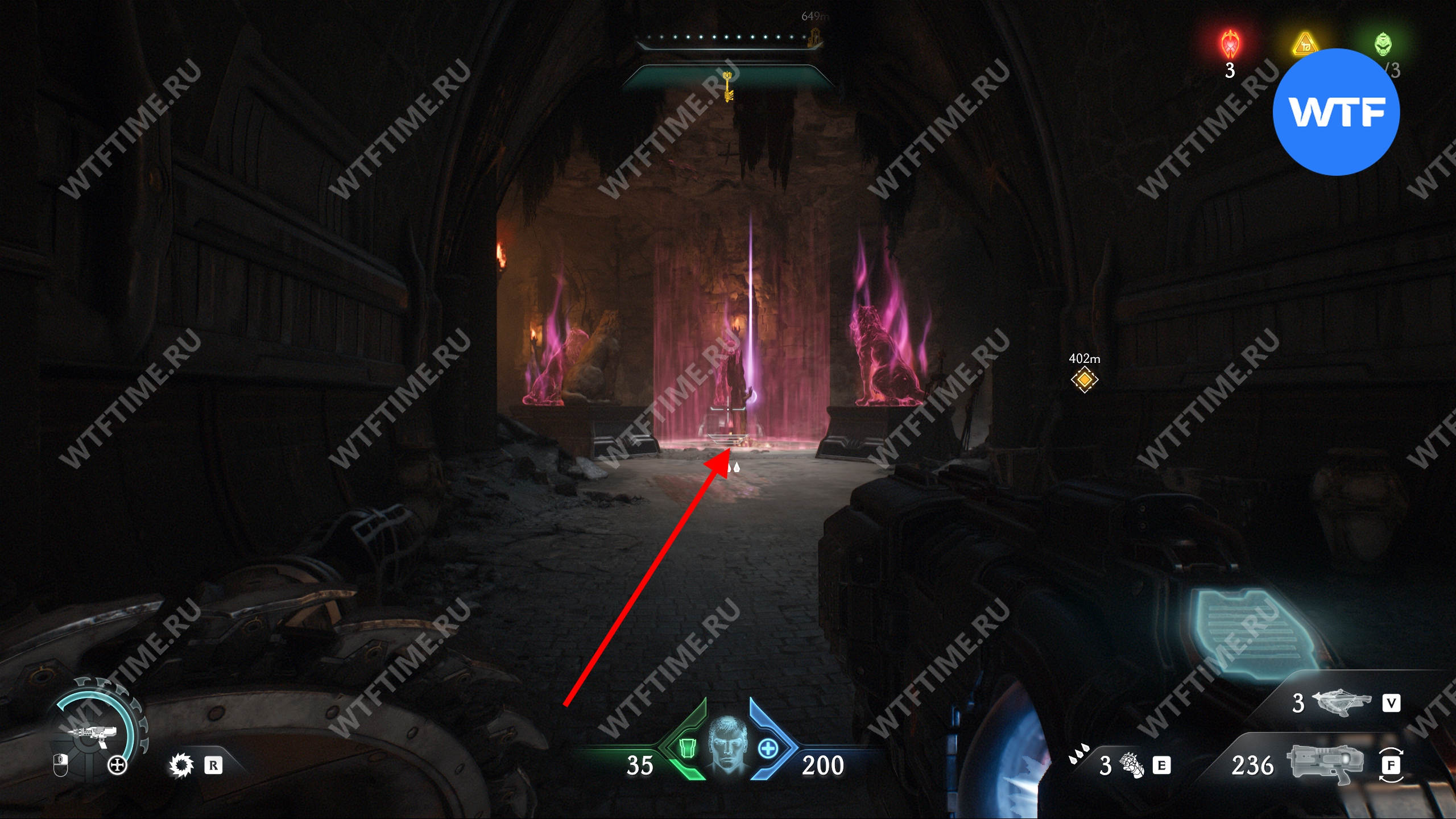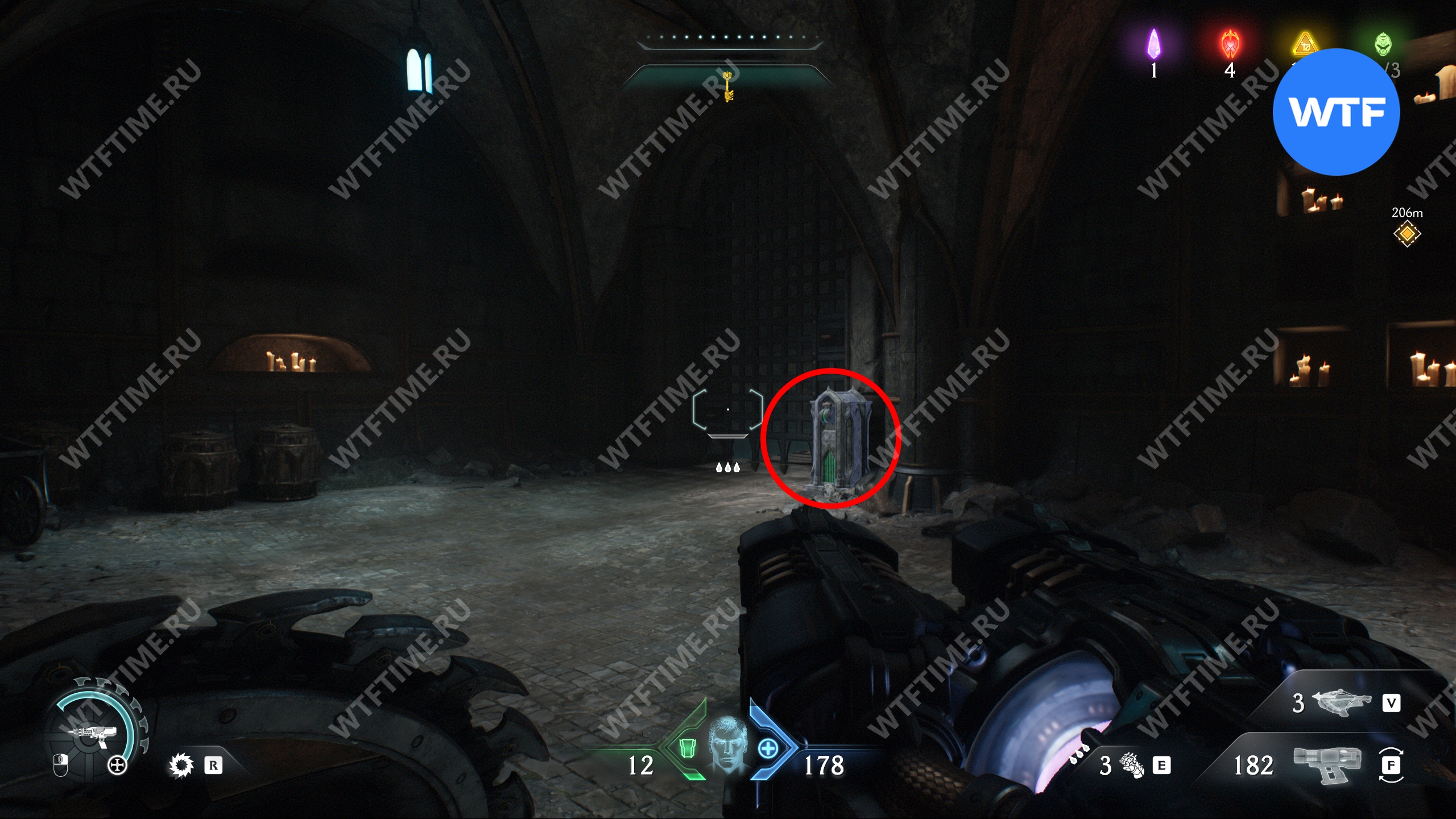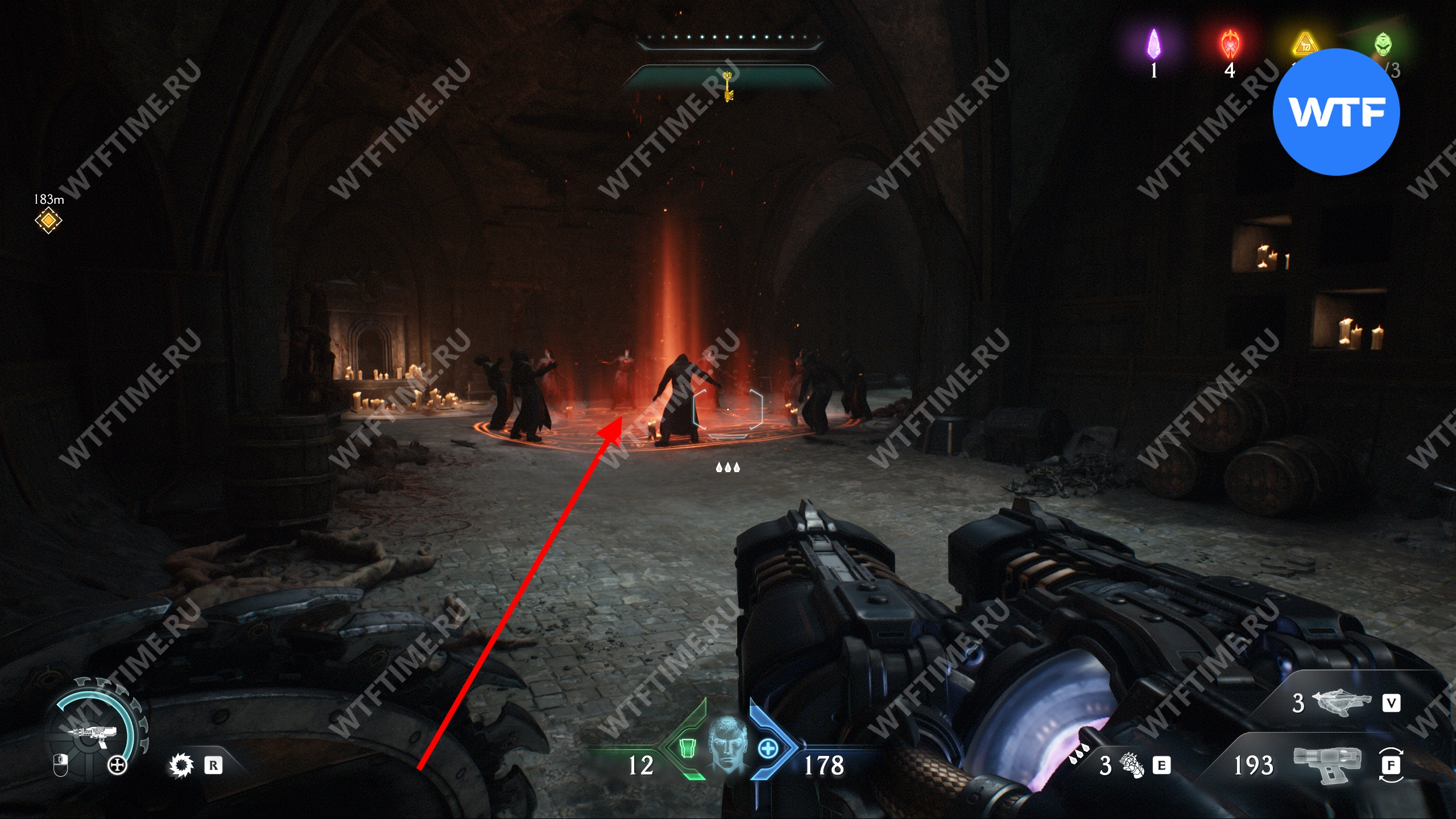 Перебейте культистов и разрушьте статую щитом, а затем идите в комнату справа. Там вы увидите призрачный камень, который пока защищен барьером. Запомните это место, мы вернемся сюда после того, как разрушим остальные статуи волков.