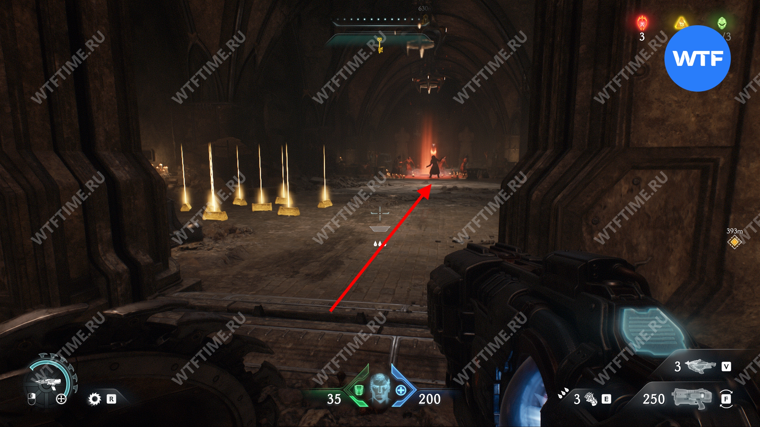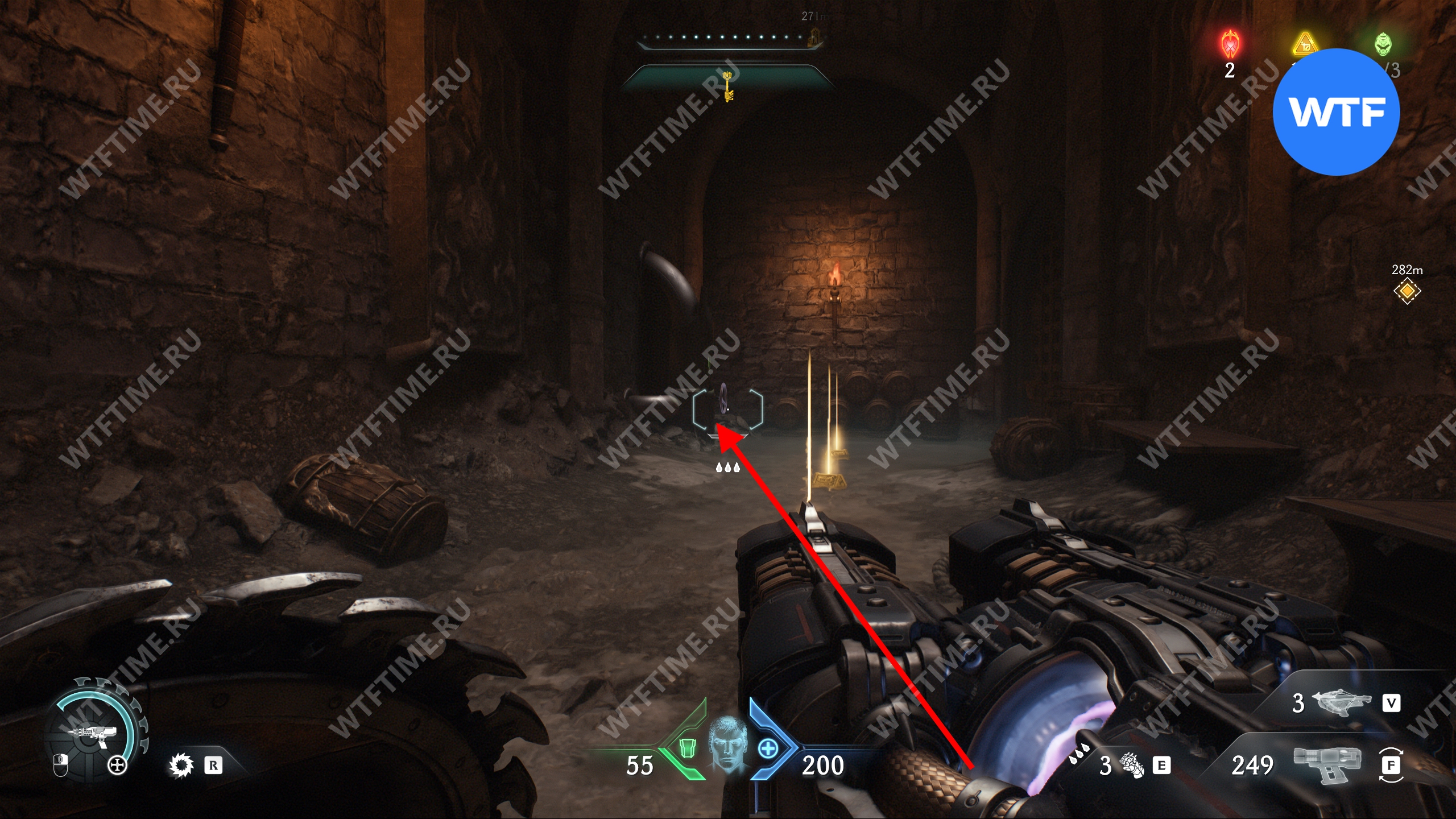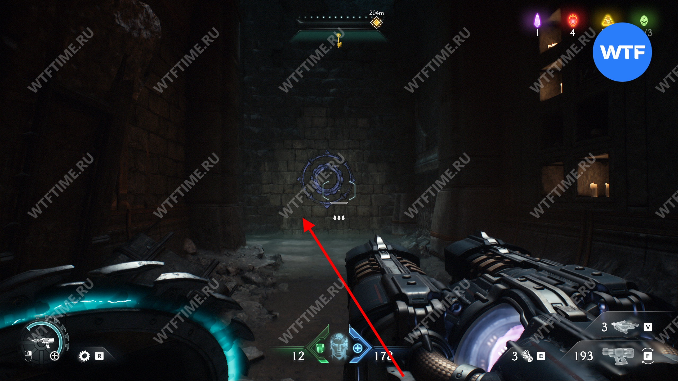 Перебейте культистов и разрушьте статую щитом, а затем идите в комнату справа. Там вы увидите призрачный камень, который пока защищен барьером. Запомните это место, мы вернемся сюда после того, как разрушим остальные статуи волков.