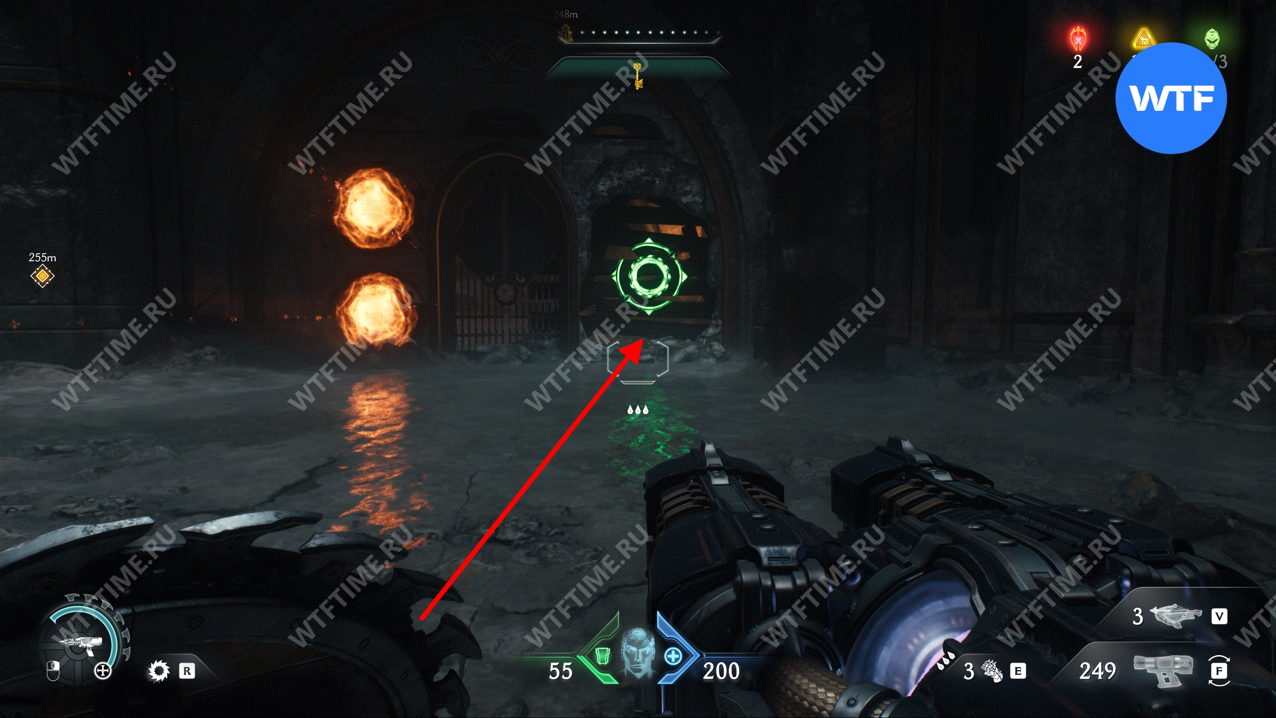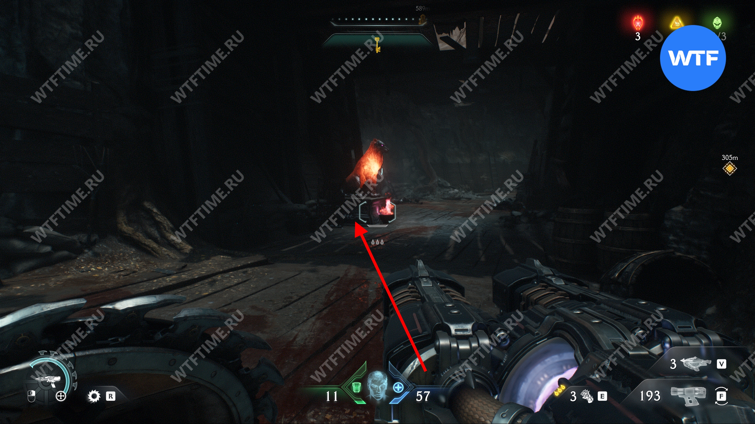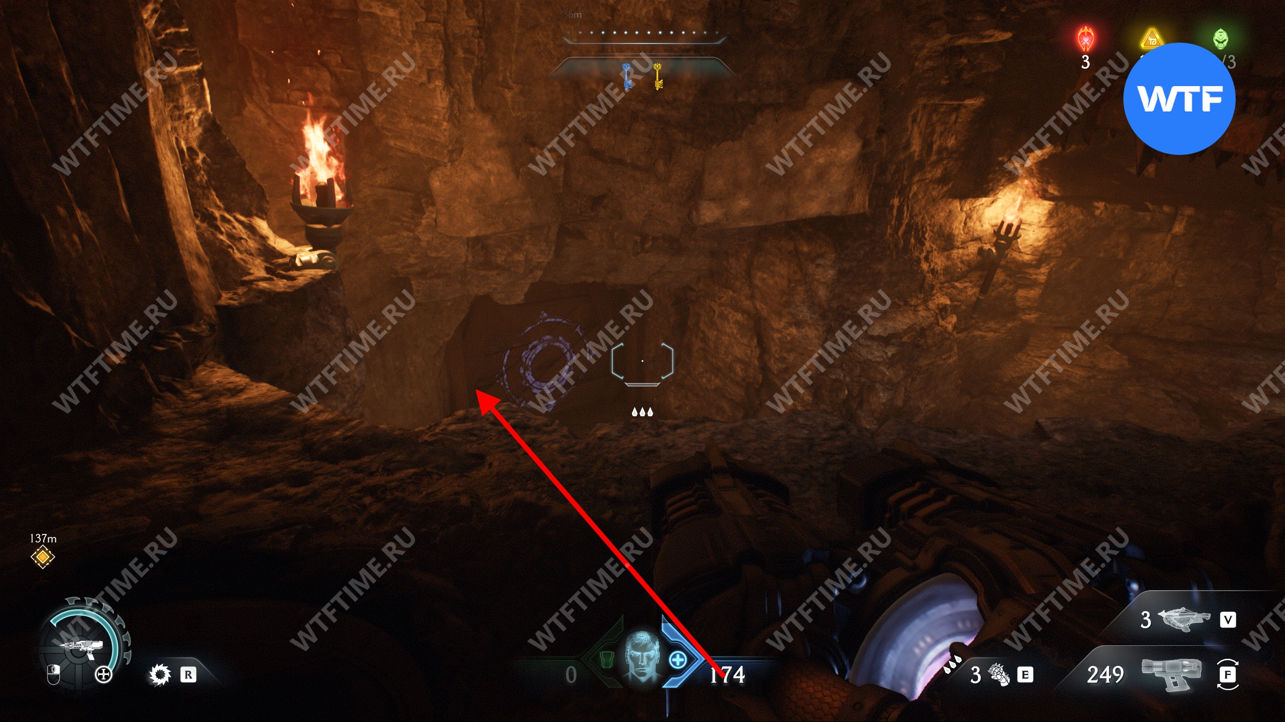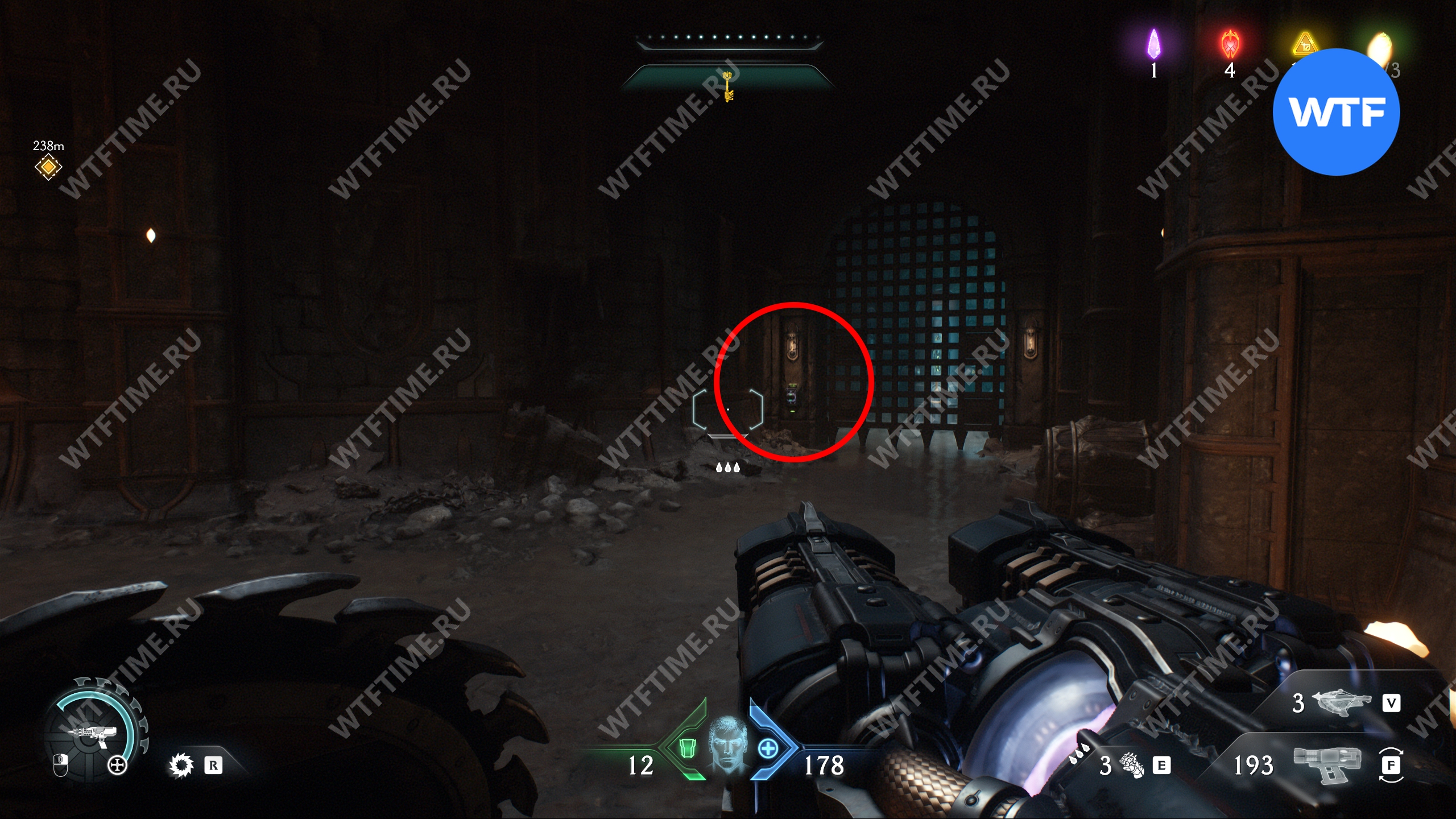Перебейте культистов и разрушьте статую щитом, а затем идите в комнату справа. Там вы увидите призрачный камень, который пока защищен барьером. Запомните это место, мы вернемся сюда после того, как разрушим остальные статуи волков.