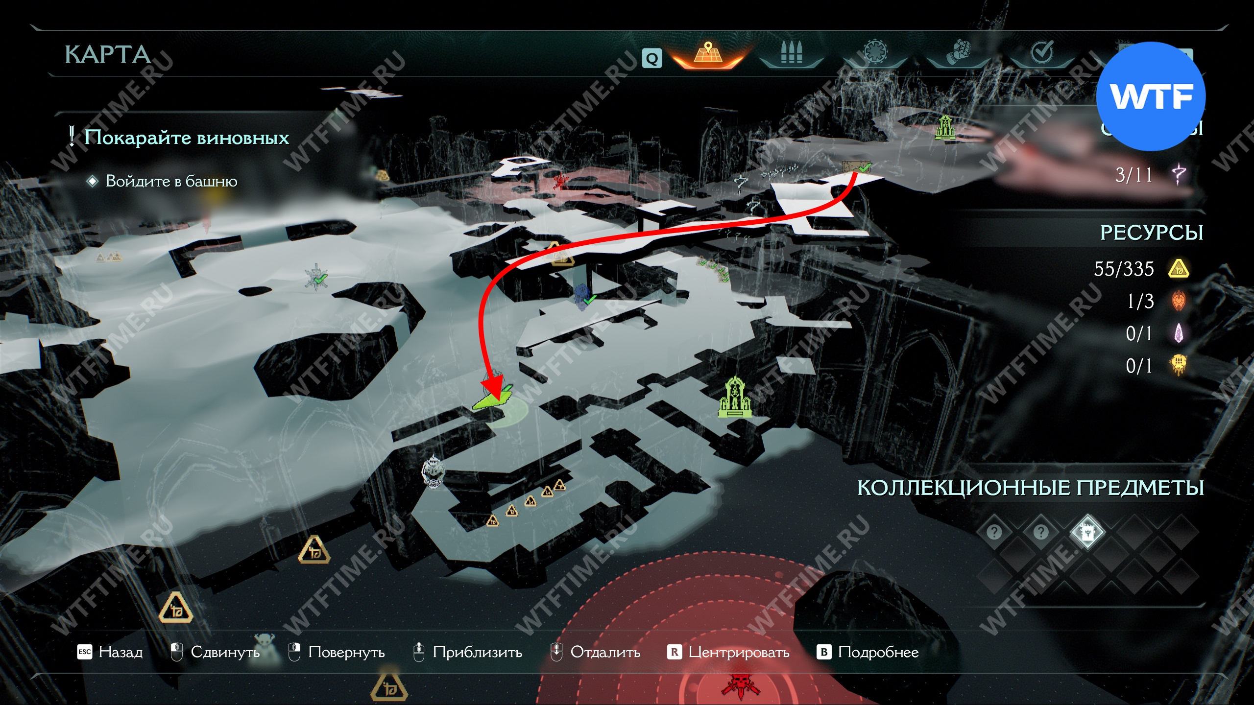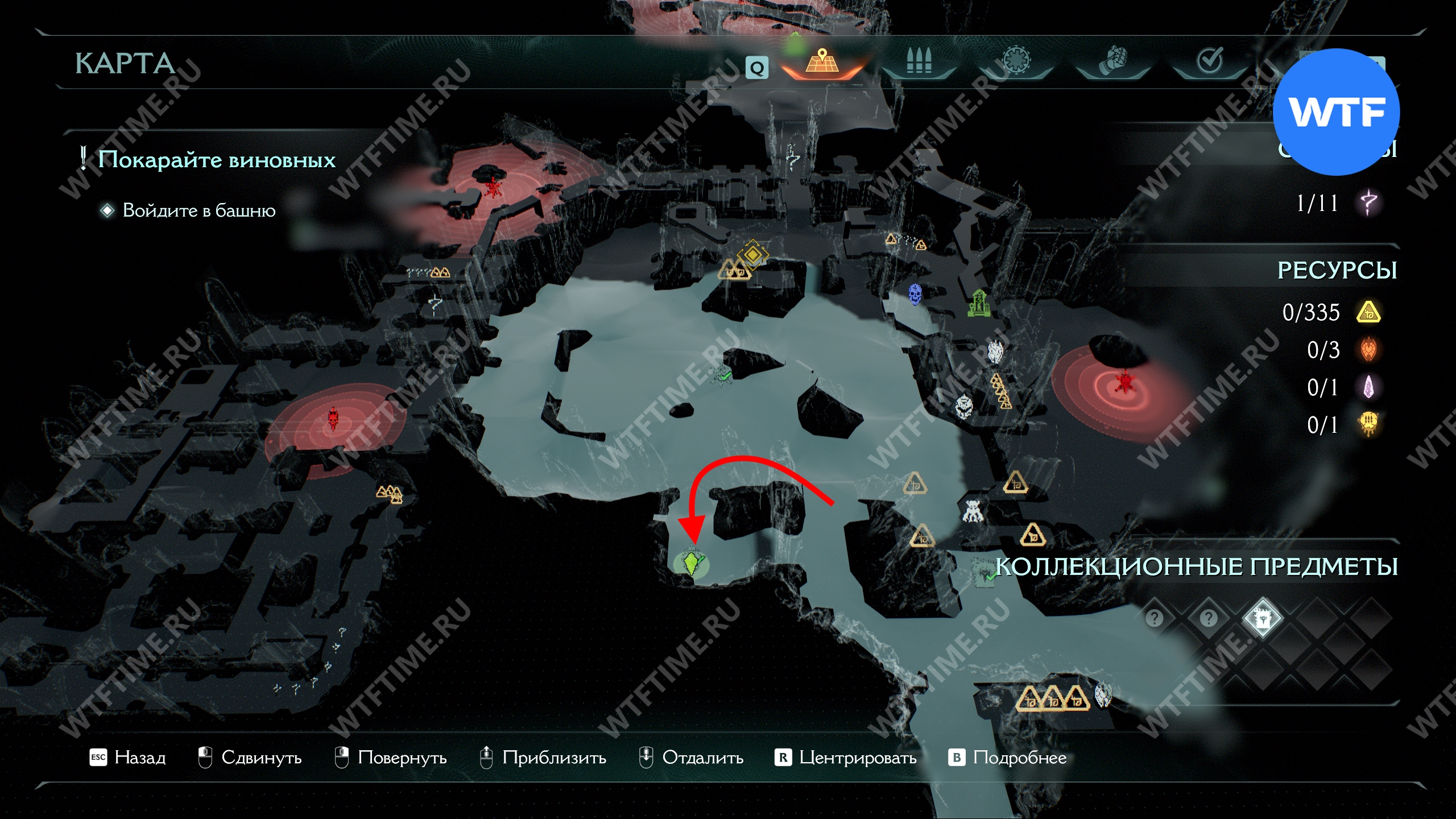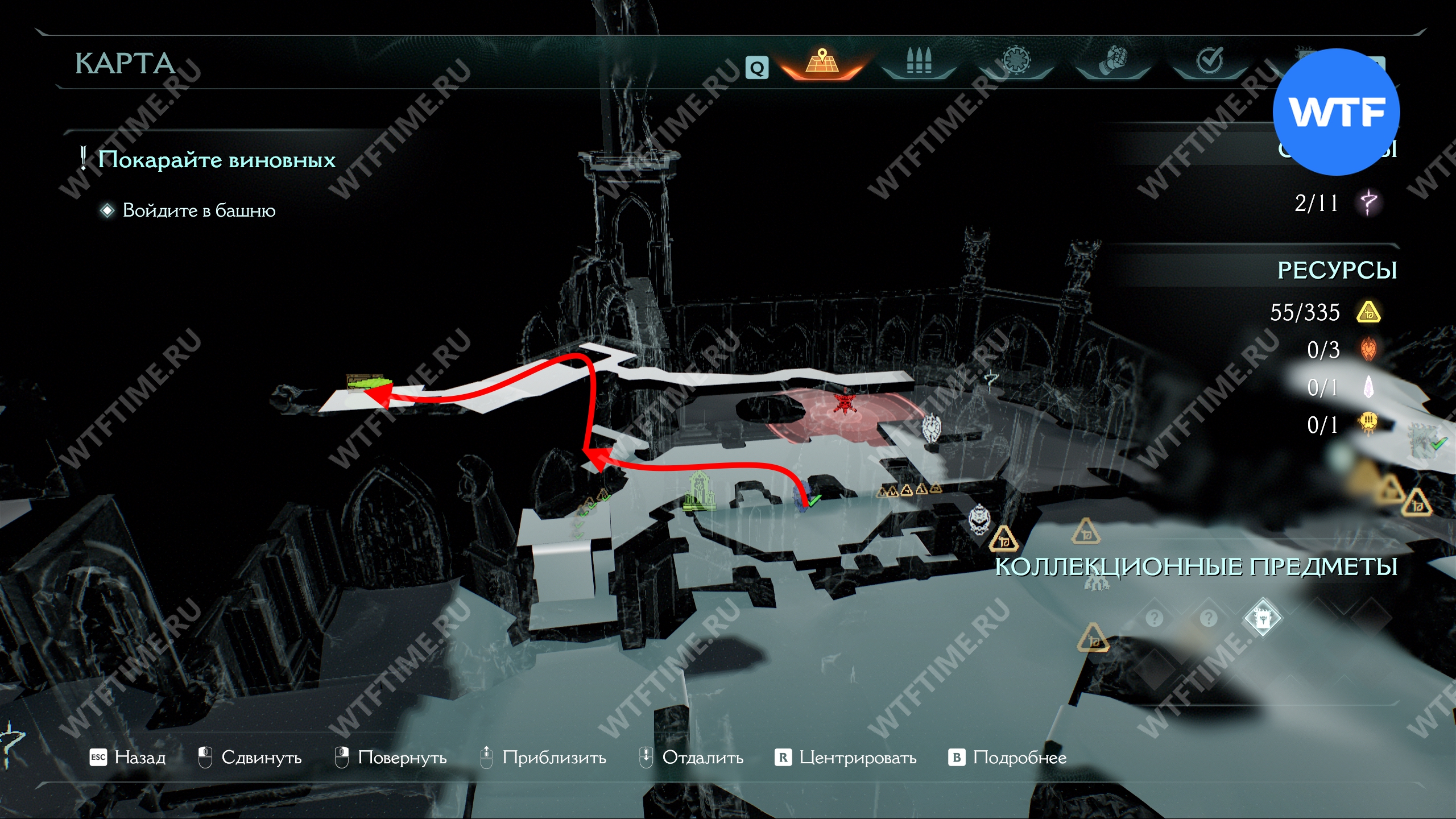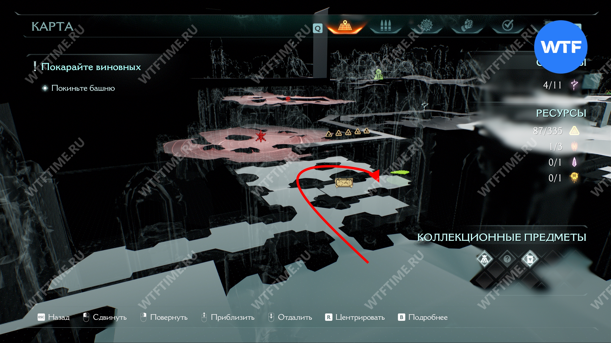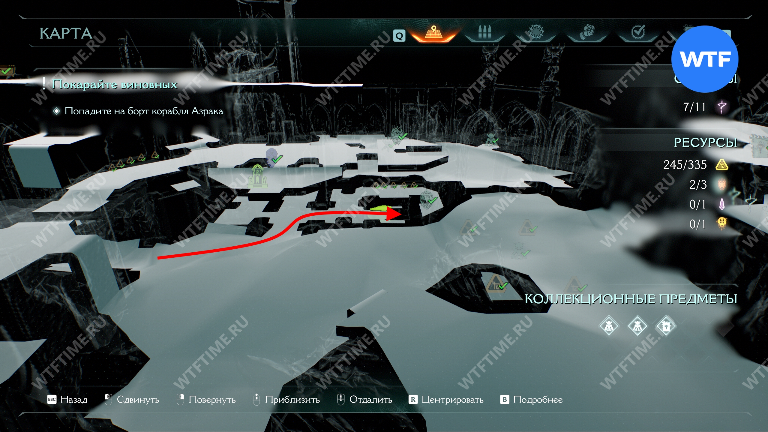 От предыдущего призрачного камня следуйте маршруту, показанному на карте ниже, чтобы добраться до последнего несобранного сундука в этой области.