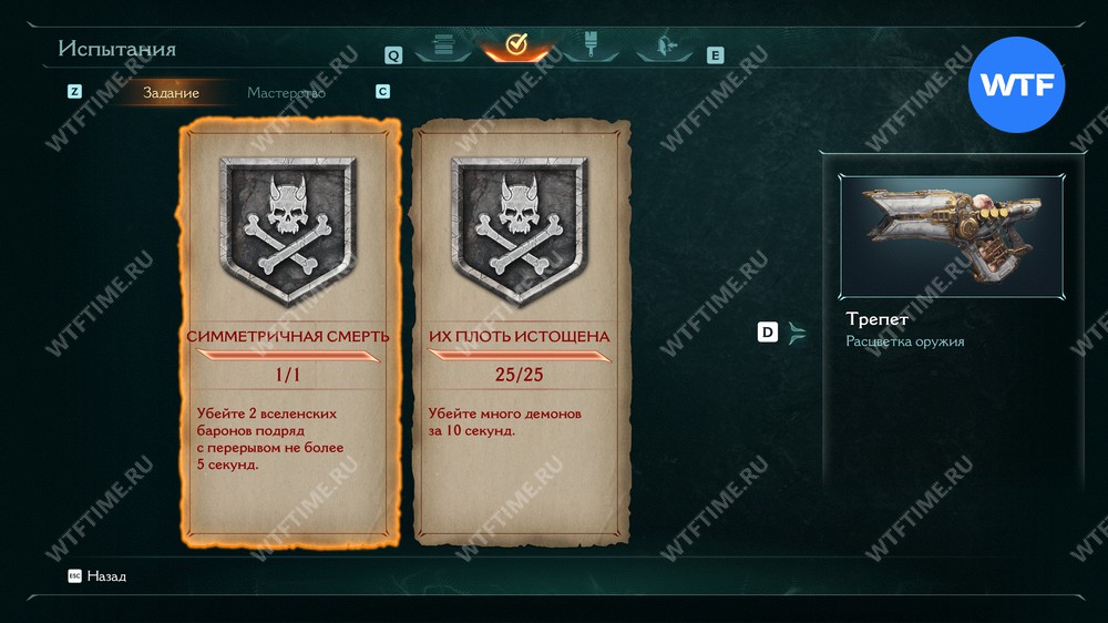 Во время прохождения Возмездия в Doom The Dark Ages можно выполнить два дополнительных испытания, которые принесут вам 100 золота и облик для оружия «Трепет» в награду:
