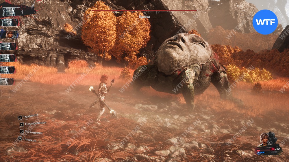 Обратите внимание. Башка наносит удары с разной скоростью, поэтому чтобы вовремя прожимать кнопку уклонения — сделайте звук погромче и ориентируйтесь на характерный «Вжух», который раздается, когда босс находится в прыжке.