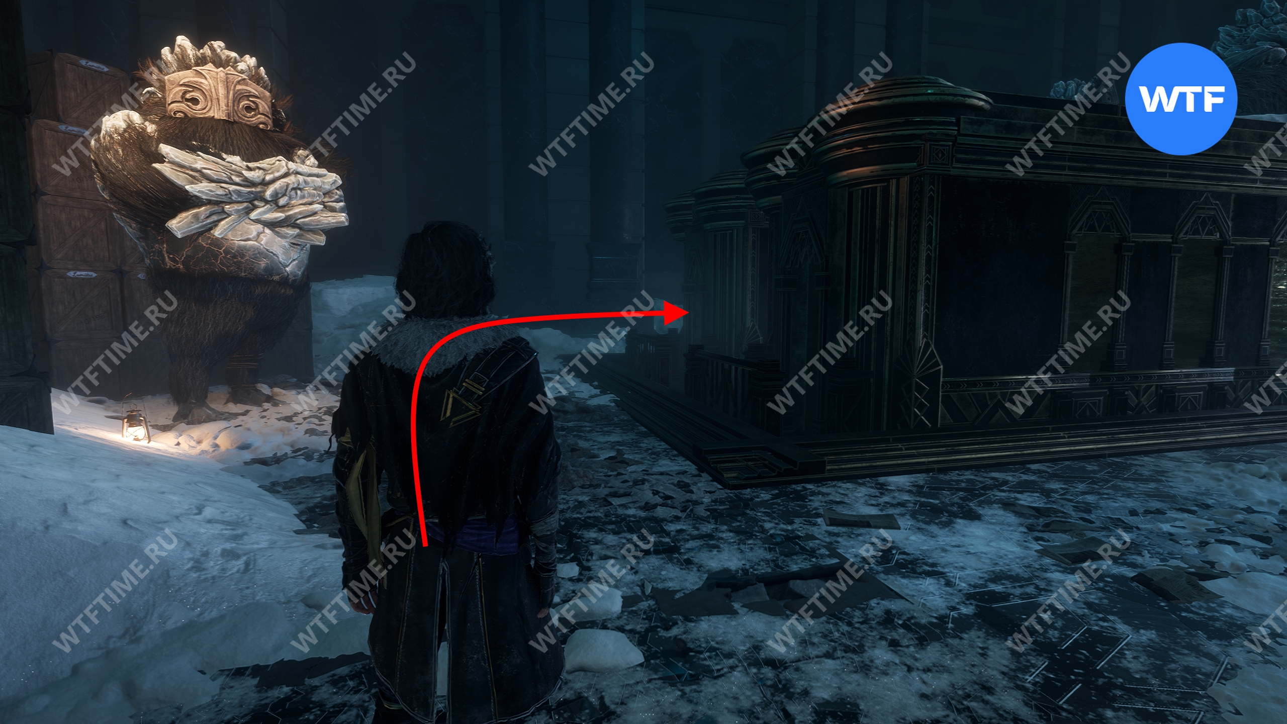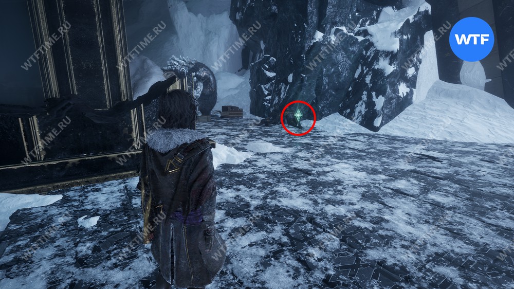 После обучения развернитесь и зайдите обратно в здание станции. Слева от входа вы найдете торговца Грандиса, который попросит принести ему Замерзший лед в обмен на редкие товары.