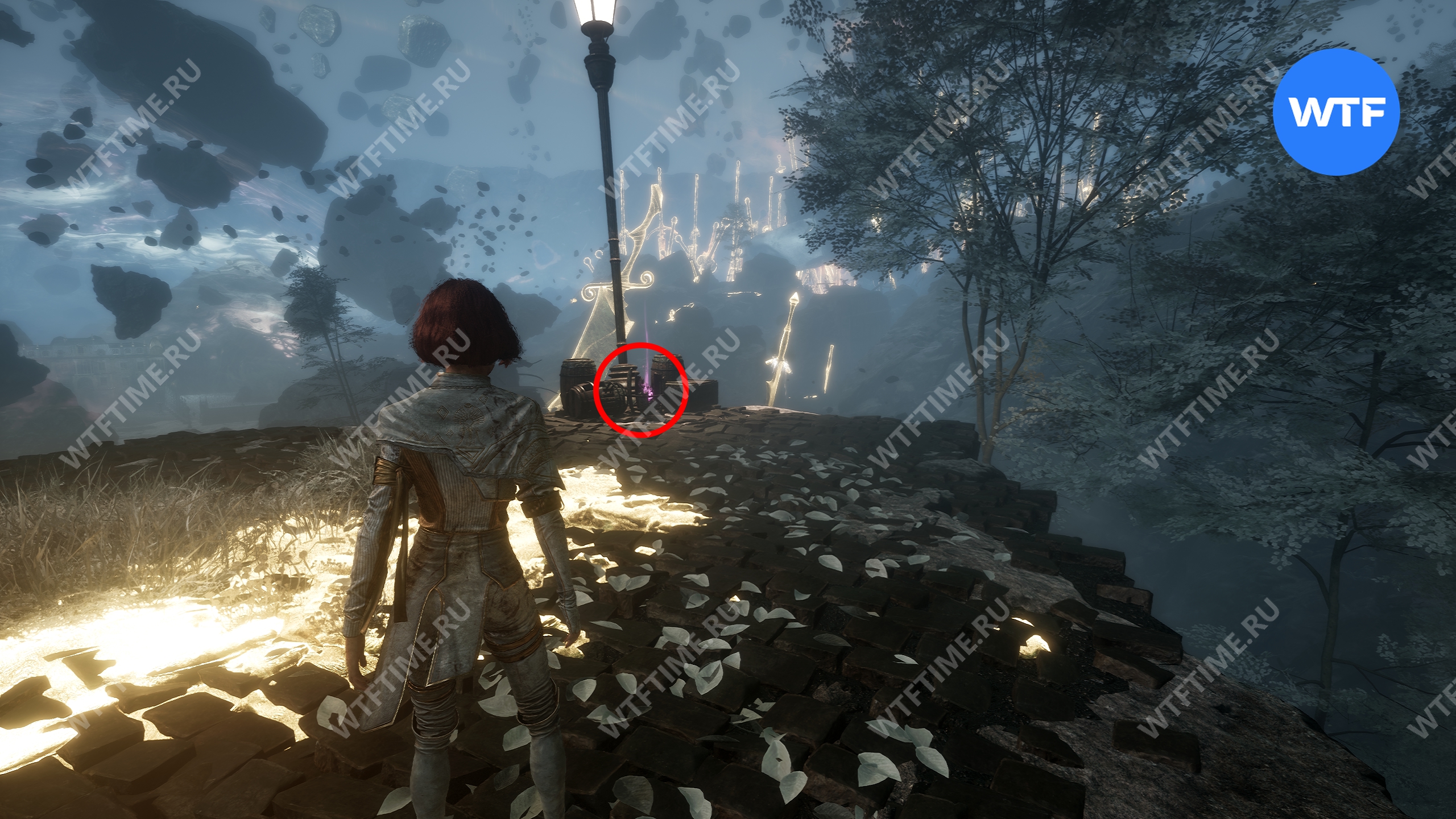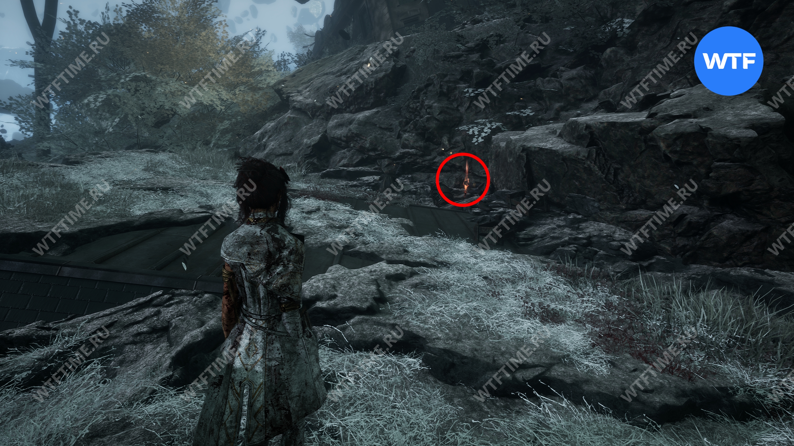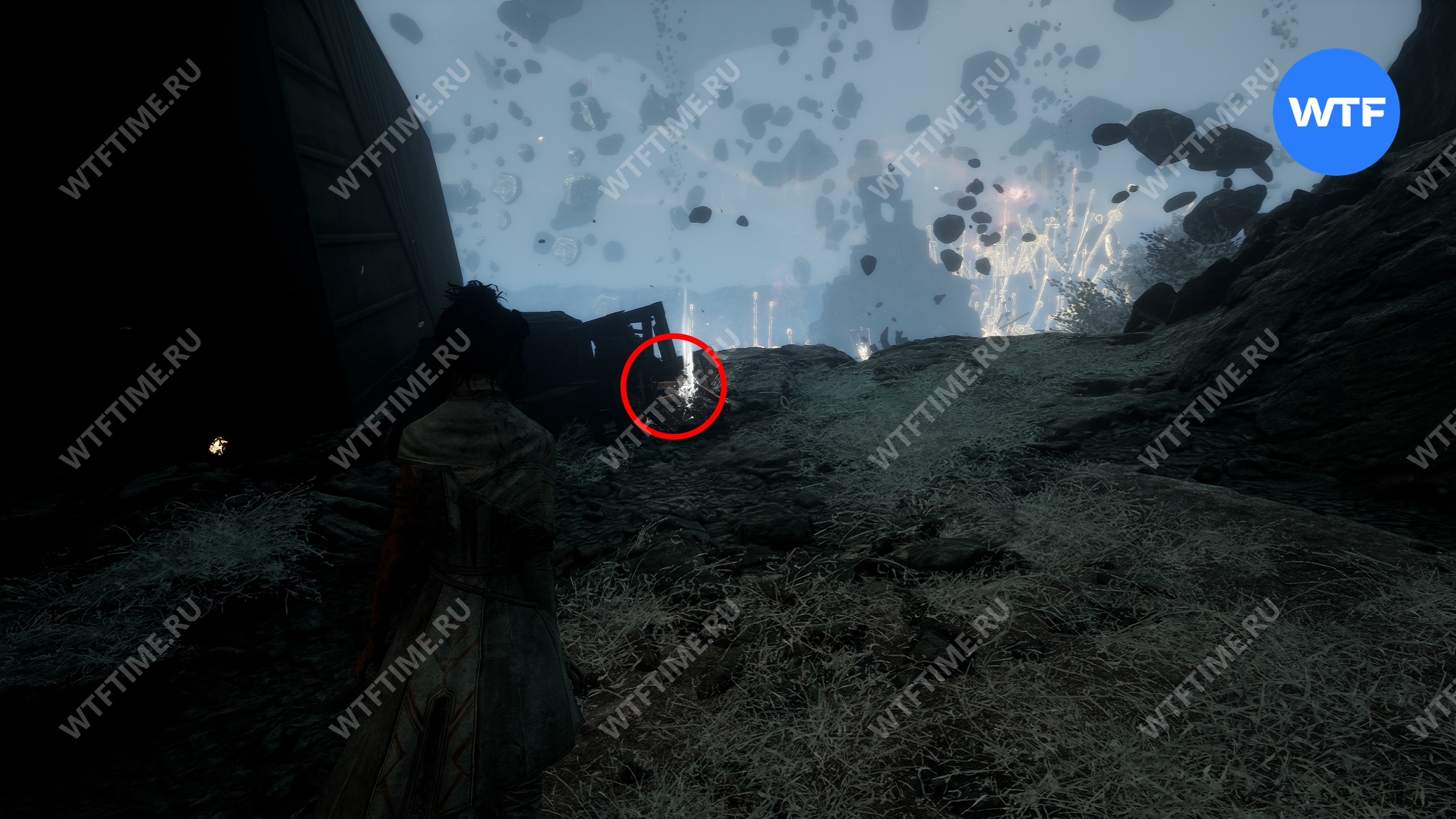 Затем вернитесь обратно к арке и от неё идите по тропе налево. На первой же развилке снова сверните налево, чтобы подобрать 2495 хромы у ящиков.