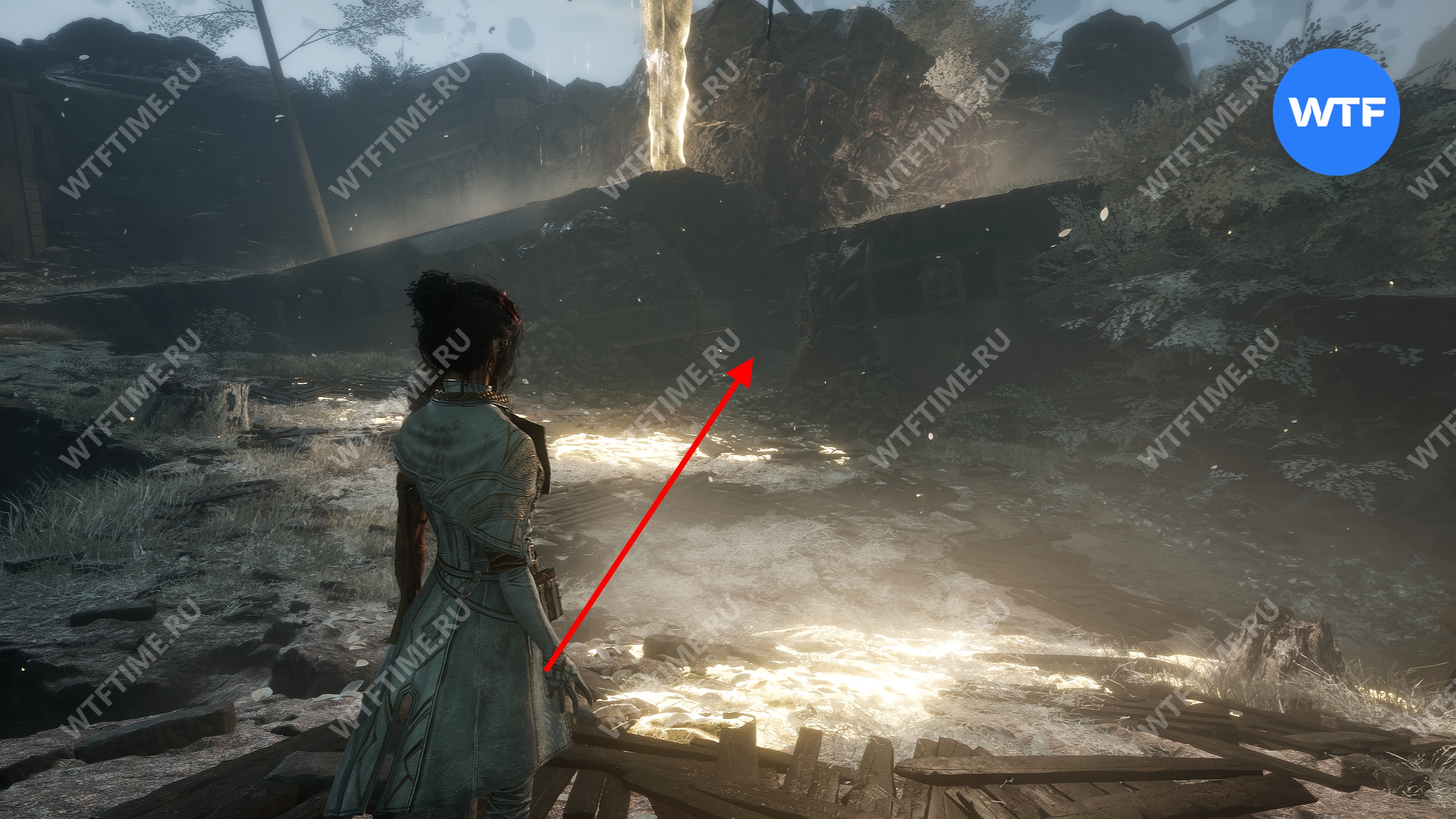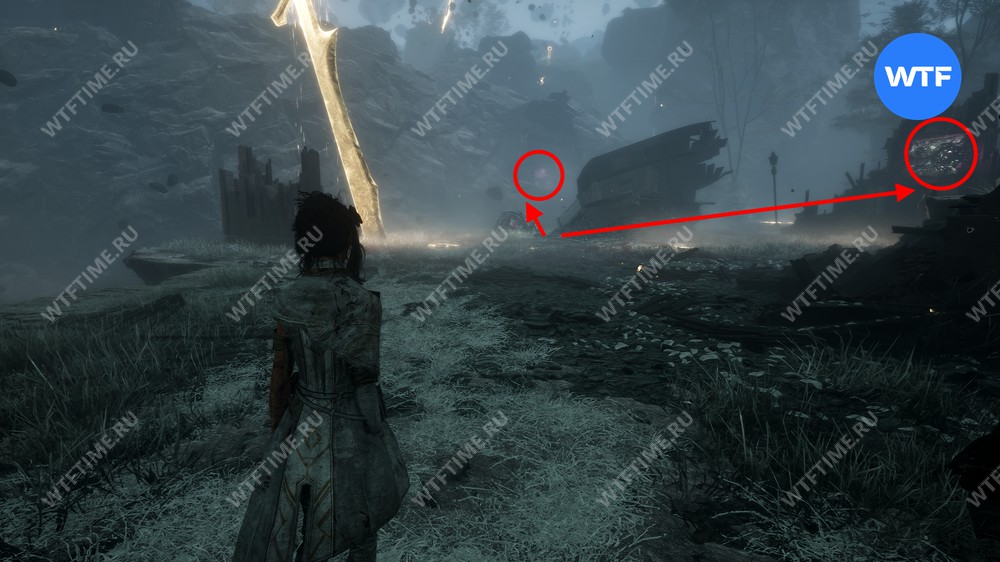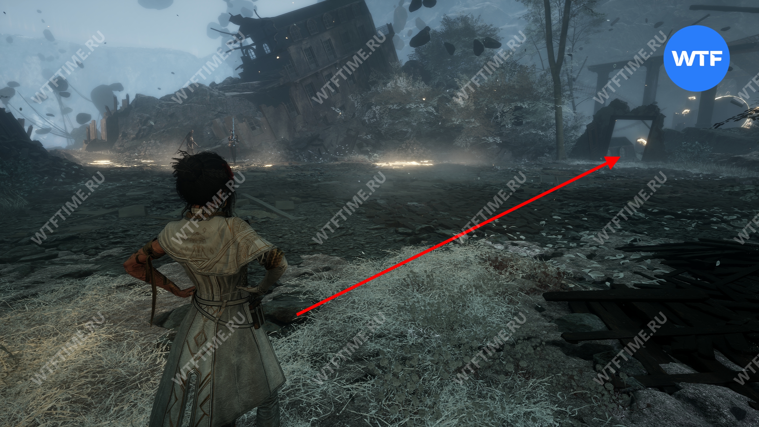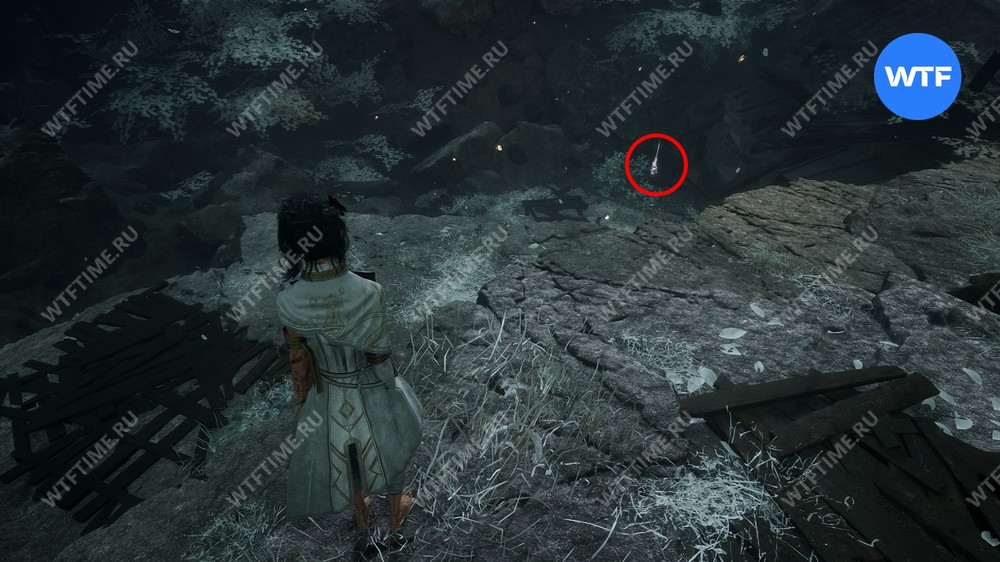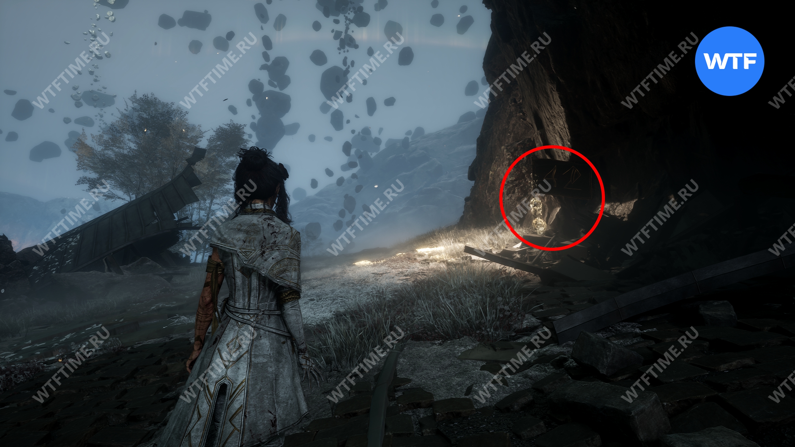 Затем вернитесь обратно к арке и от неё идите по тропе налево. На первой же развилке снова сверните налево, чтобы подобрать 2495 хромы у ящиков.