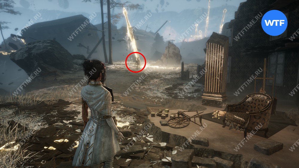 После завершения кат сцены вы переключитесь на управление второй группой, состоящей из Маэль и Версо. Прежде чем идти вперед по дороге, загляните за полуразрушенную стену справа от вас, чтобы найти цвет люмины.