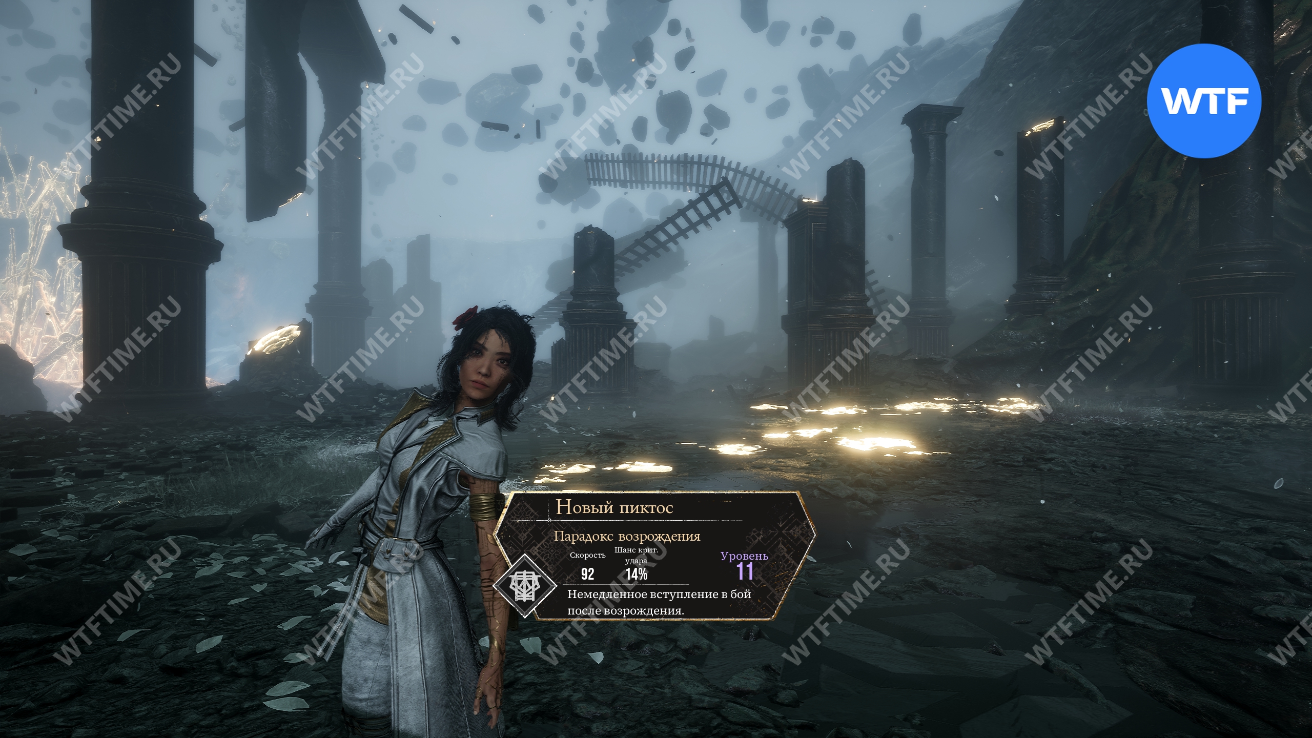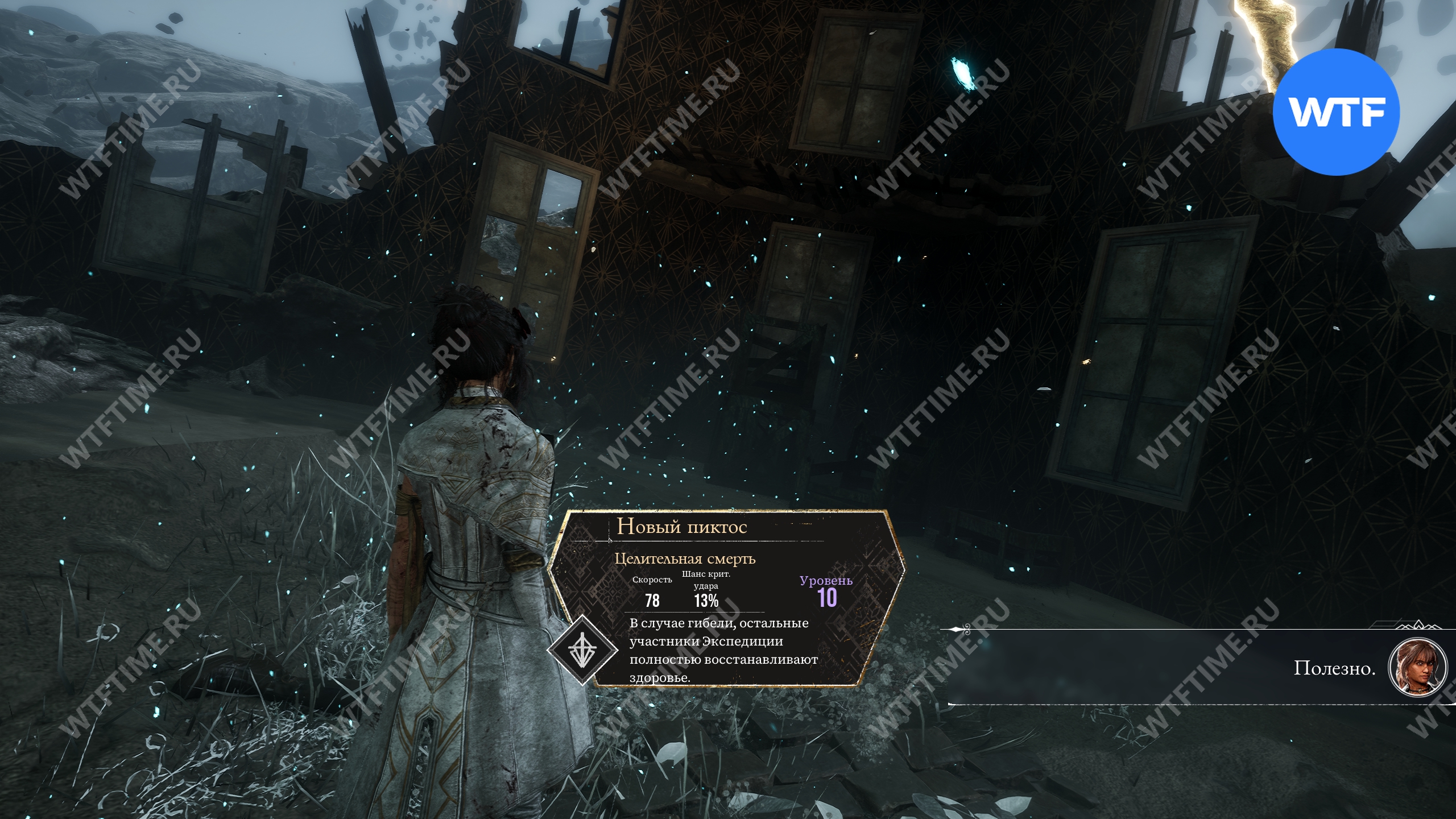 Пройдите по дорожке за предыдущим врагом до самого конца и сможете подобрать пиктос «Целительная смерть» (уровень 10, скорость 78, шанс крит. удара 13%), полностью восстанавливающий здоровье остальных членов отряда в случае гибели персонажа.