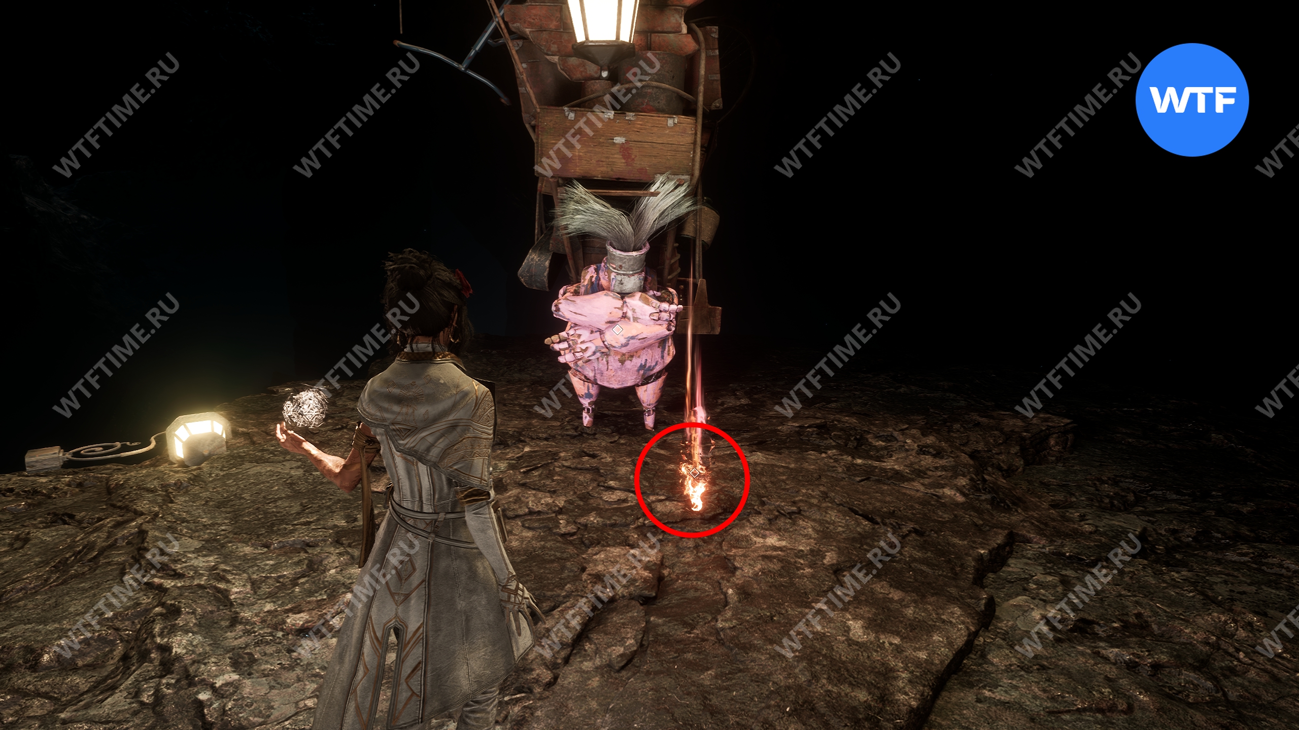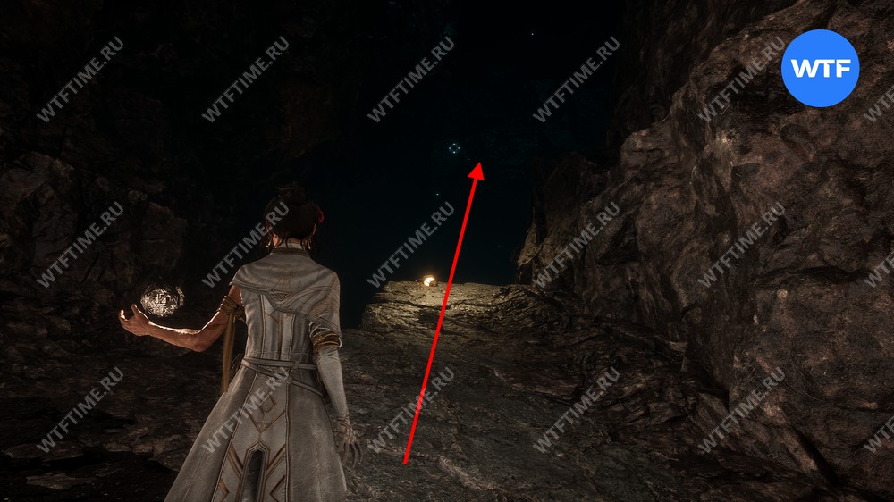 Вернитесь обратно в основную область тем же путем, что пришли ранее. Затем прижмитесь к правой стене и идите вдоль неё до тех пор, пока не увидите на земле фонарь, от которого можно добраться до точки захвата.